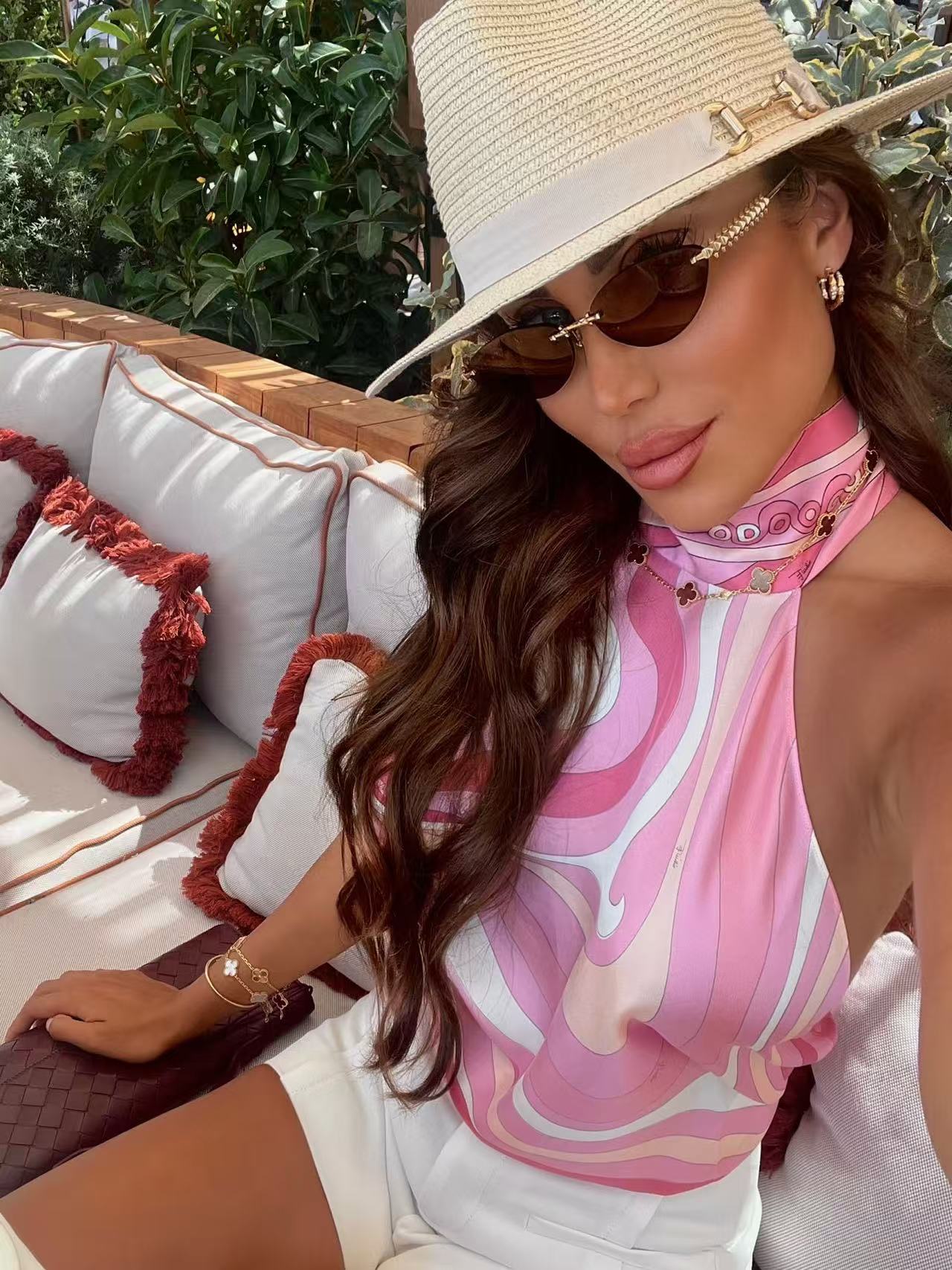 2026早春 P家 幾何漩渦掛脖美背真絲上衣