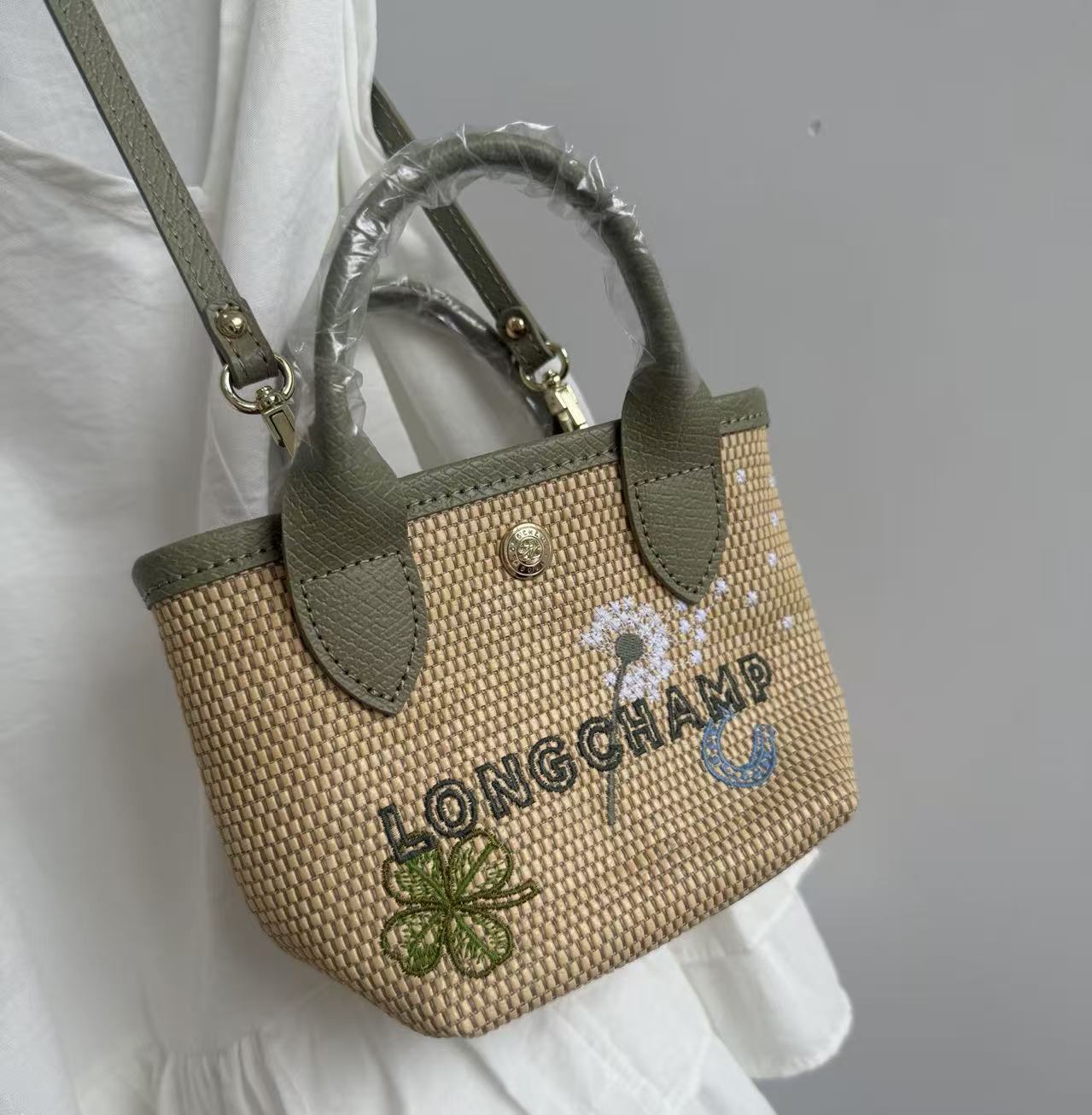 四葉草與蒲公英限定圖騰: 結合了寓意幸運與自由的自然元素,為草編包注入了浪漫且具備故事感的視覺靈魂。