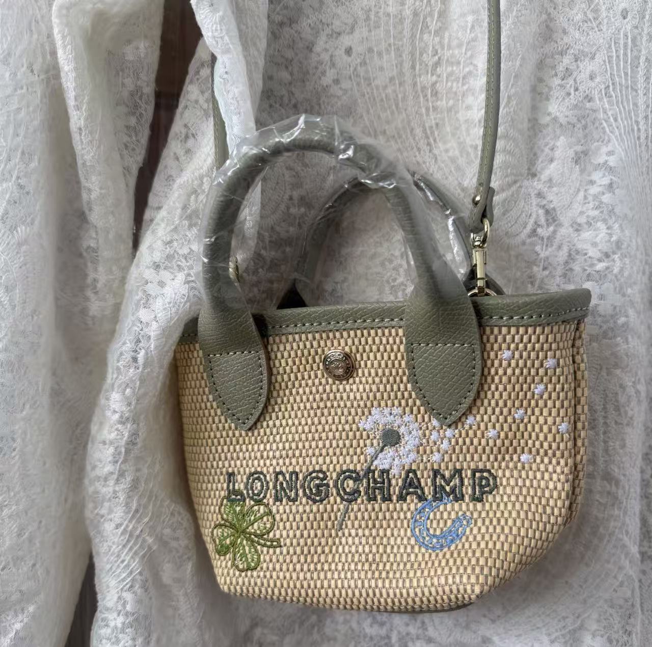 設計核心聚焦於「自然與工藝的平衡」,將經典的托特包廓形以天然編織材料呈現,並別出心裁地加入了四葉草與蒲公英的限定刺繡圖騰。這不僅是一只適合野餐或度假的提袋,更是能為都市日常注入清新森系氣息的亮點選品。