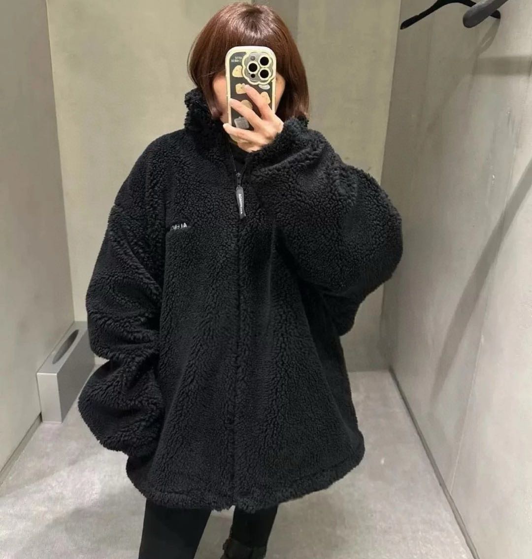 這款泰迪外套將實用性與設計感完美結合,簡約的黑色調搭配前後背藝術刺繡,展現出濃厚的時尚氣息。