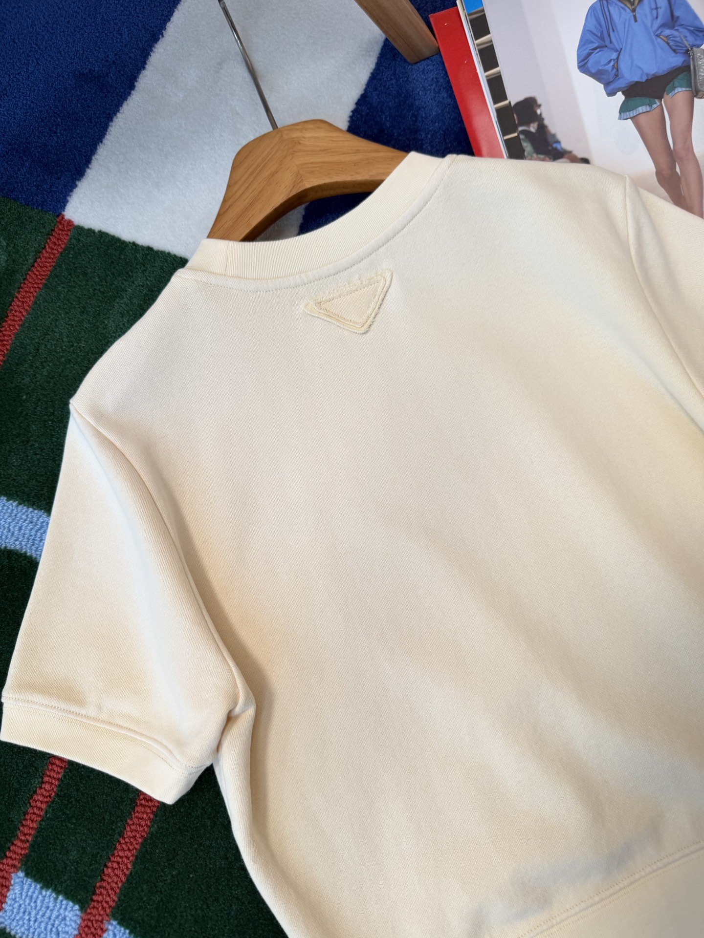 顏色是很加分的小雞黃,帶一點奶感的柔和色調,不太挑膚色,反而有種自然提亮的效果。版型做成短版設計,默默把腰線往上拉,整體比例看起來更修長。