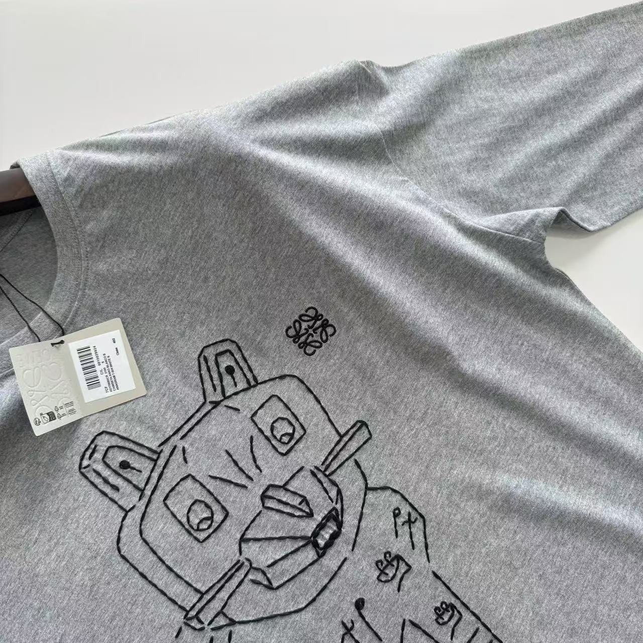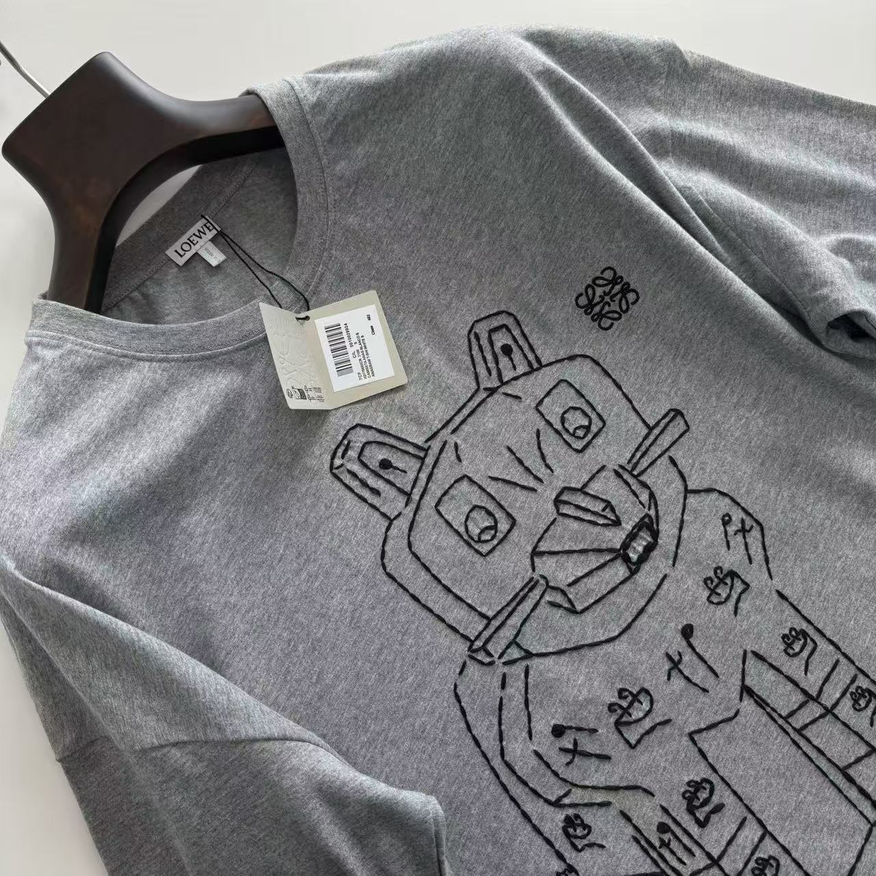 這件 T 恤將不同的刺繡技術應用在不同的圖案上,讓整體視覺效果豐富且充滿層次: