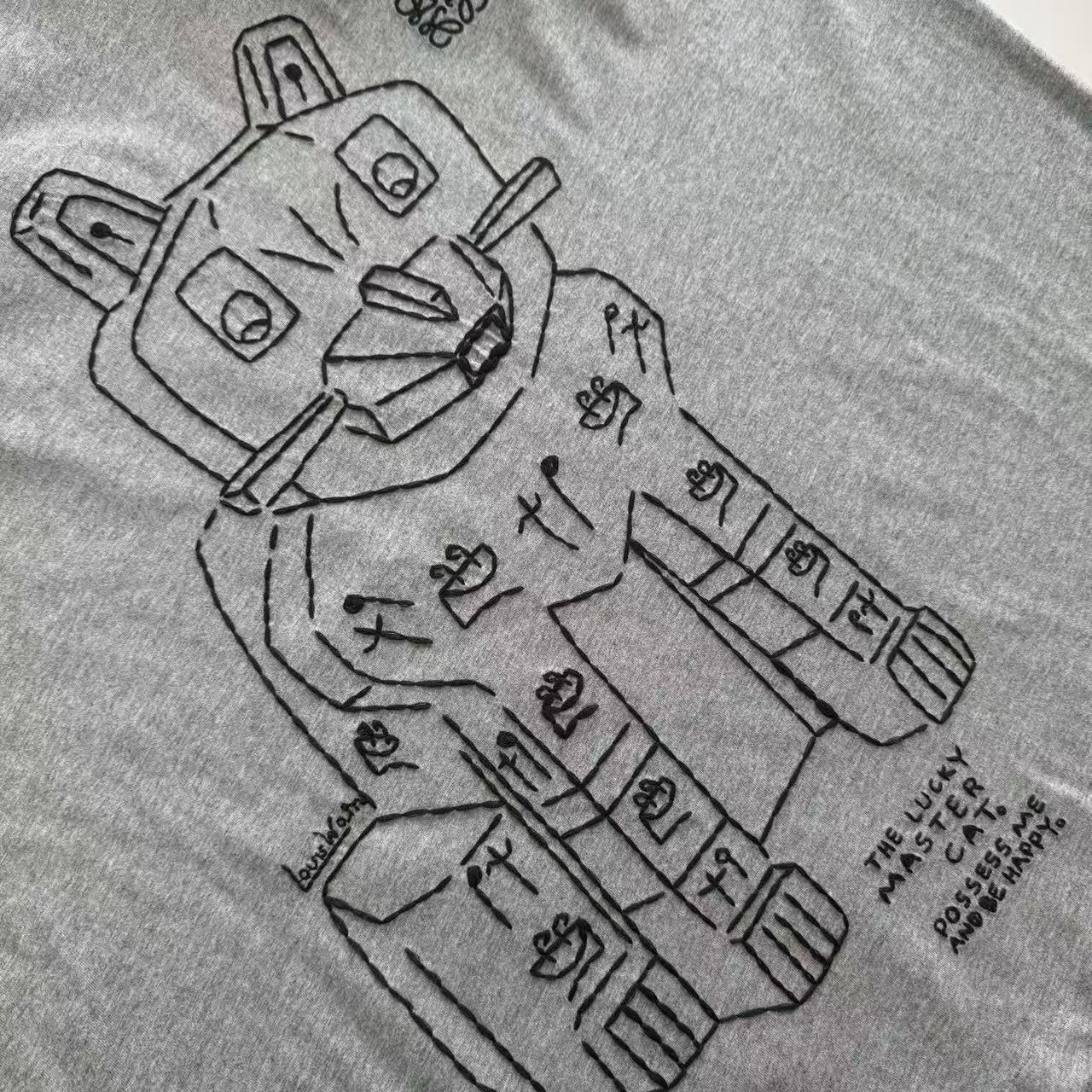 這件 T 恤的價值,不只是可愛的貓咪圖案,更在於它使用了多種複雜的刺繡工藝來呈現細節,讓圖案和 Logo 都具備極致的立體感和細膩度。