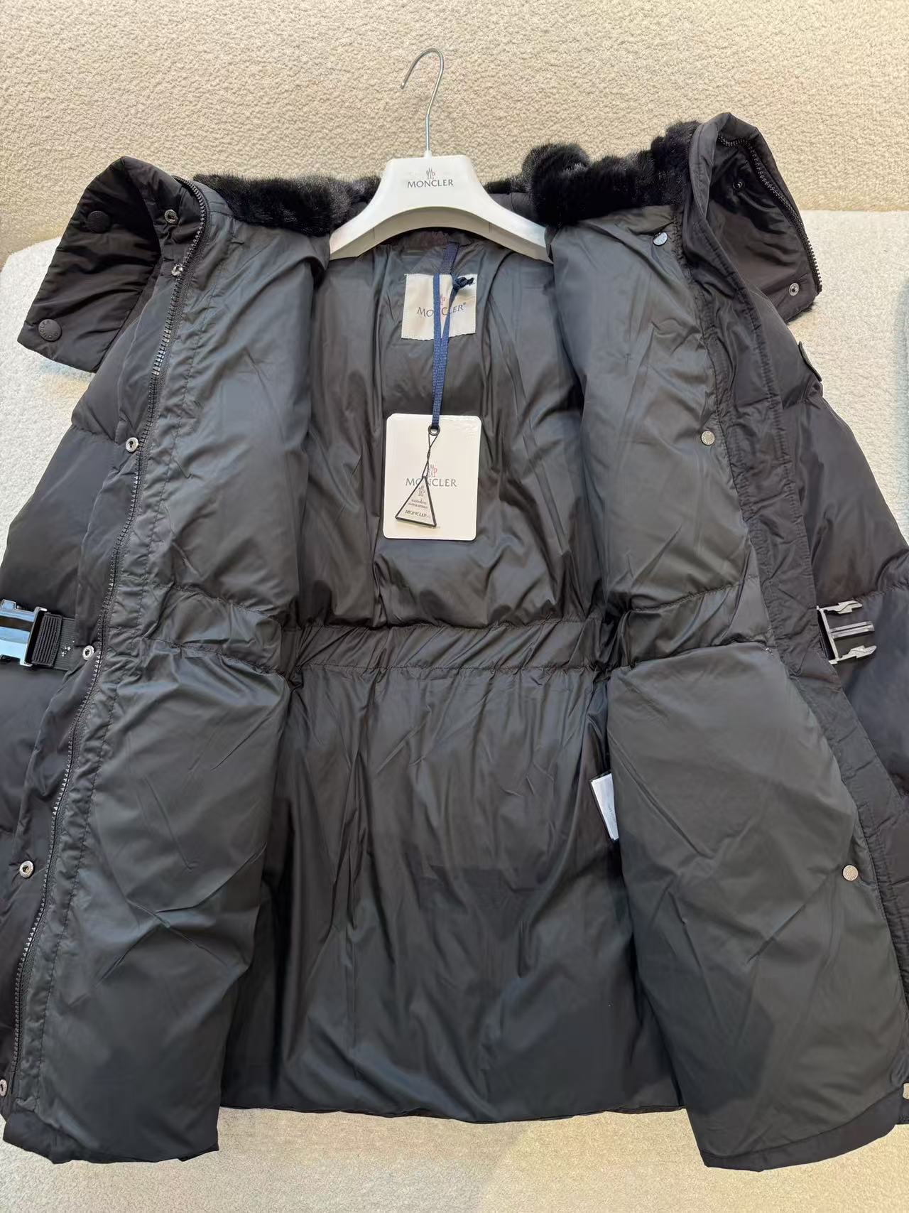 這款羽絨服以直筒版型為基調,線條俐落、結構感強,輕鬆修飾身形比例。安哥拉兔毛大翻領不可拆卸卻毛量飽滿,拉鍊可拉至頂部變身高領,貼心護頸防風;腰間鬆緊腰帶+按扣彈力帶隨心調整,告別臃腫,瞬間勾勒腰線曲線。無論單穿還是內搭毛衣,這件羽絨服都能為你的造型注入滿滿的奢華實用風,從城市街頭到戶外探險,一件就夠!