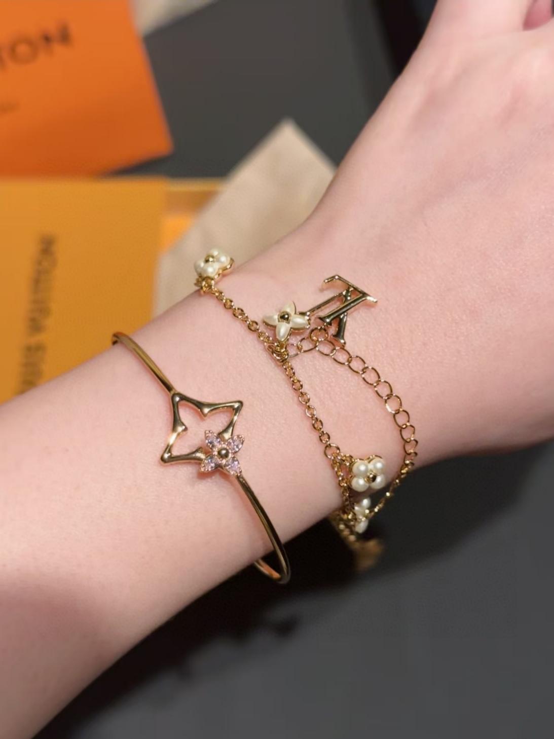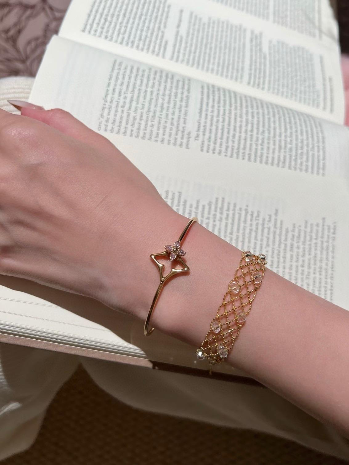 2026早春新品 L家 鏤空粉色寶石四葉花手鐲