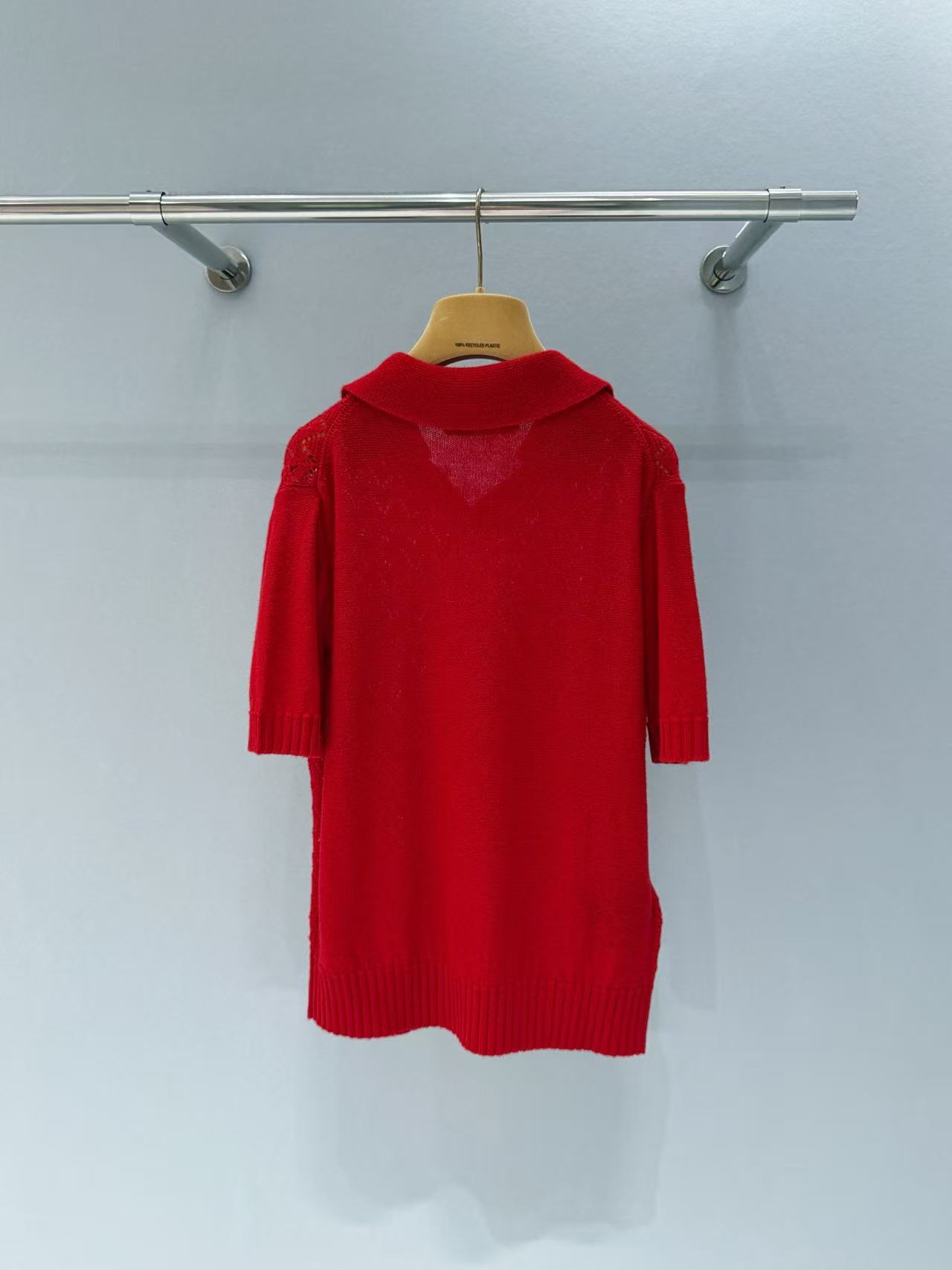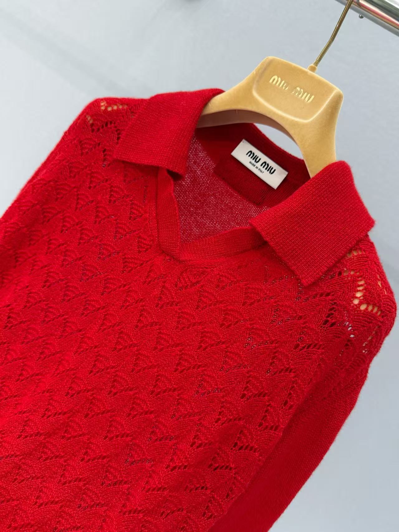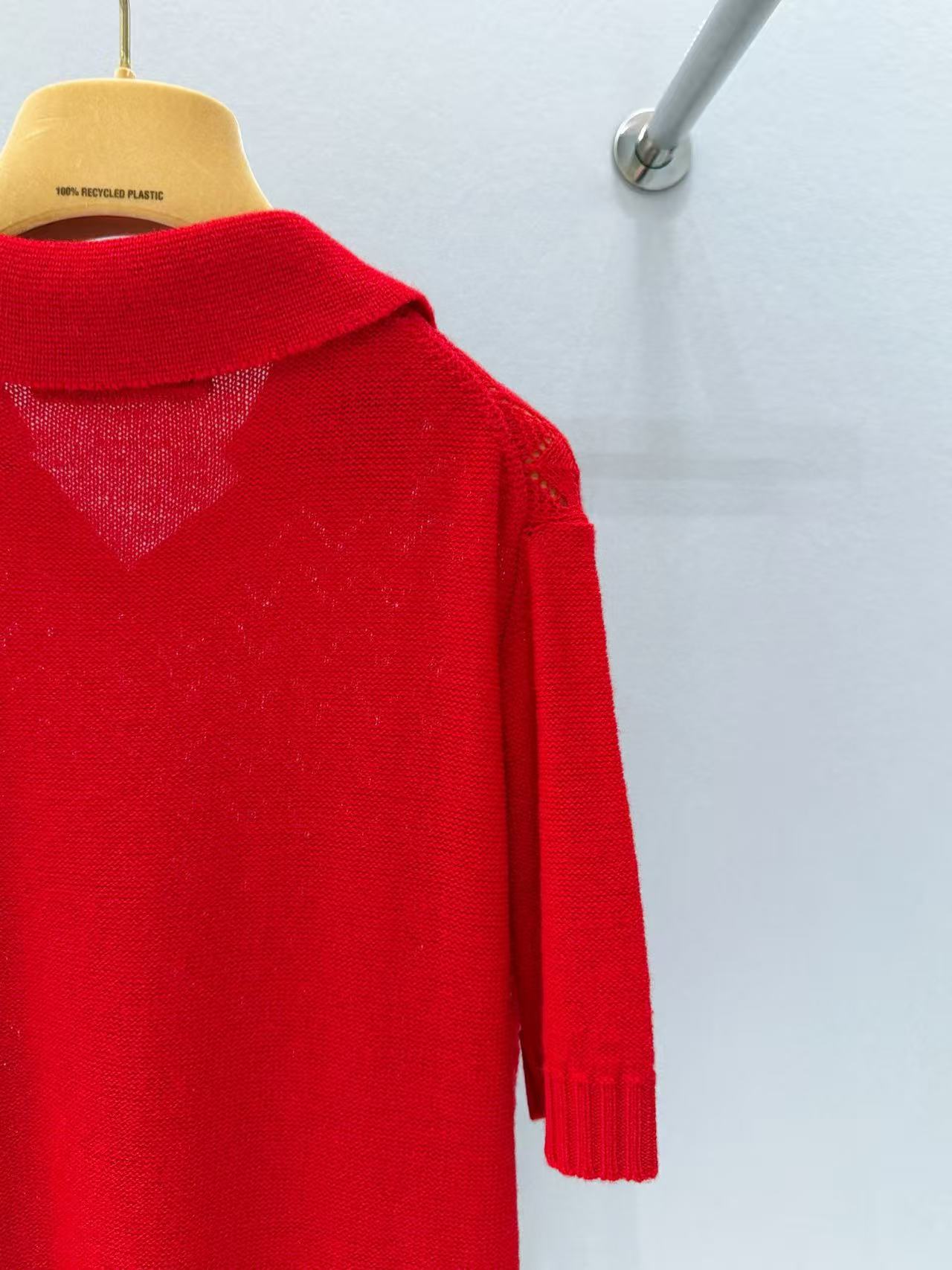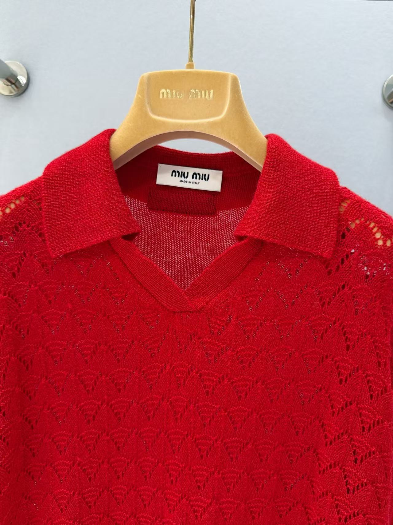 2026早春 Miu家 紅色山羊絨針織 POLO 衫