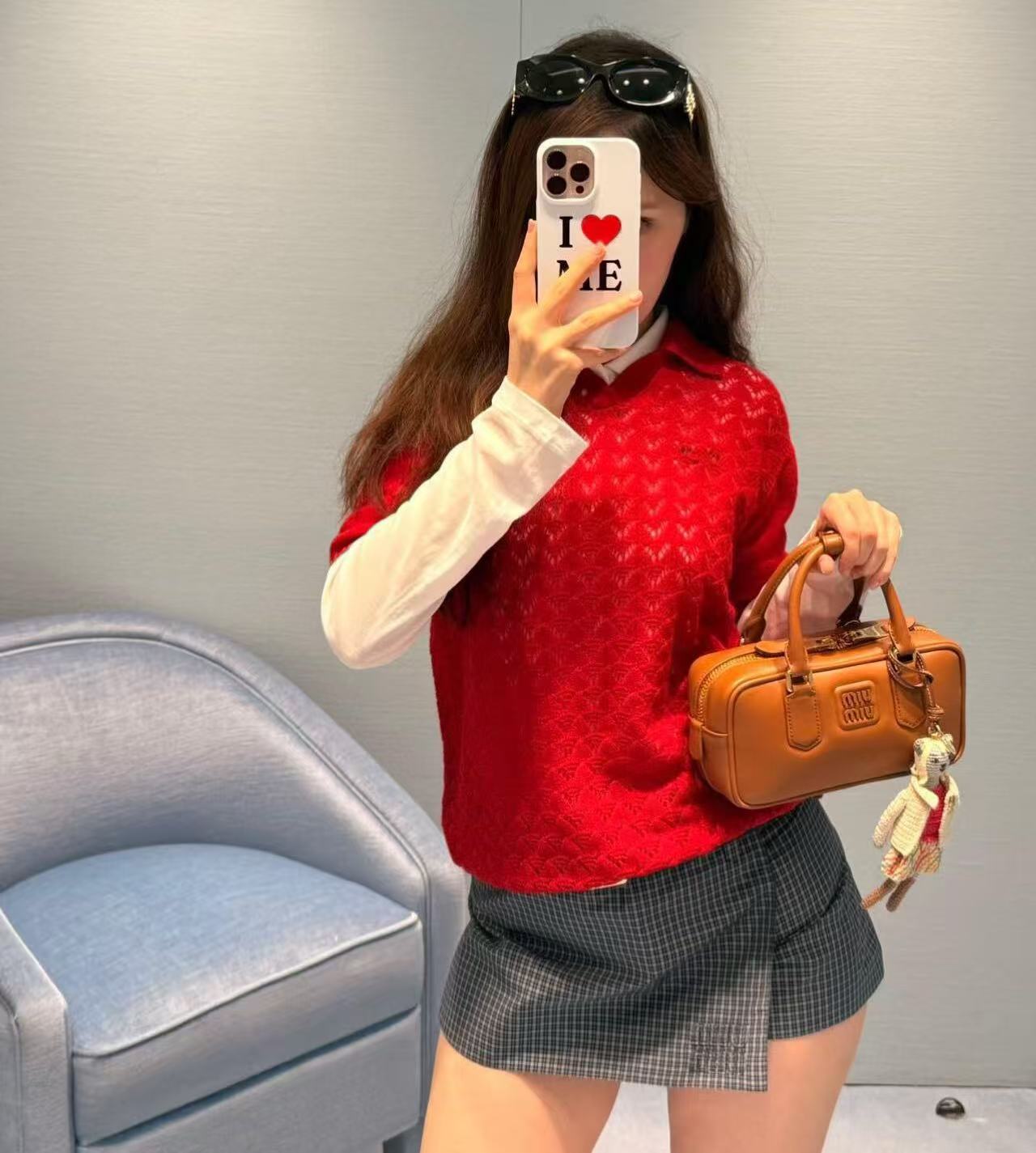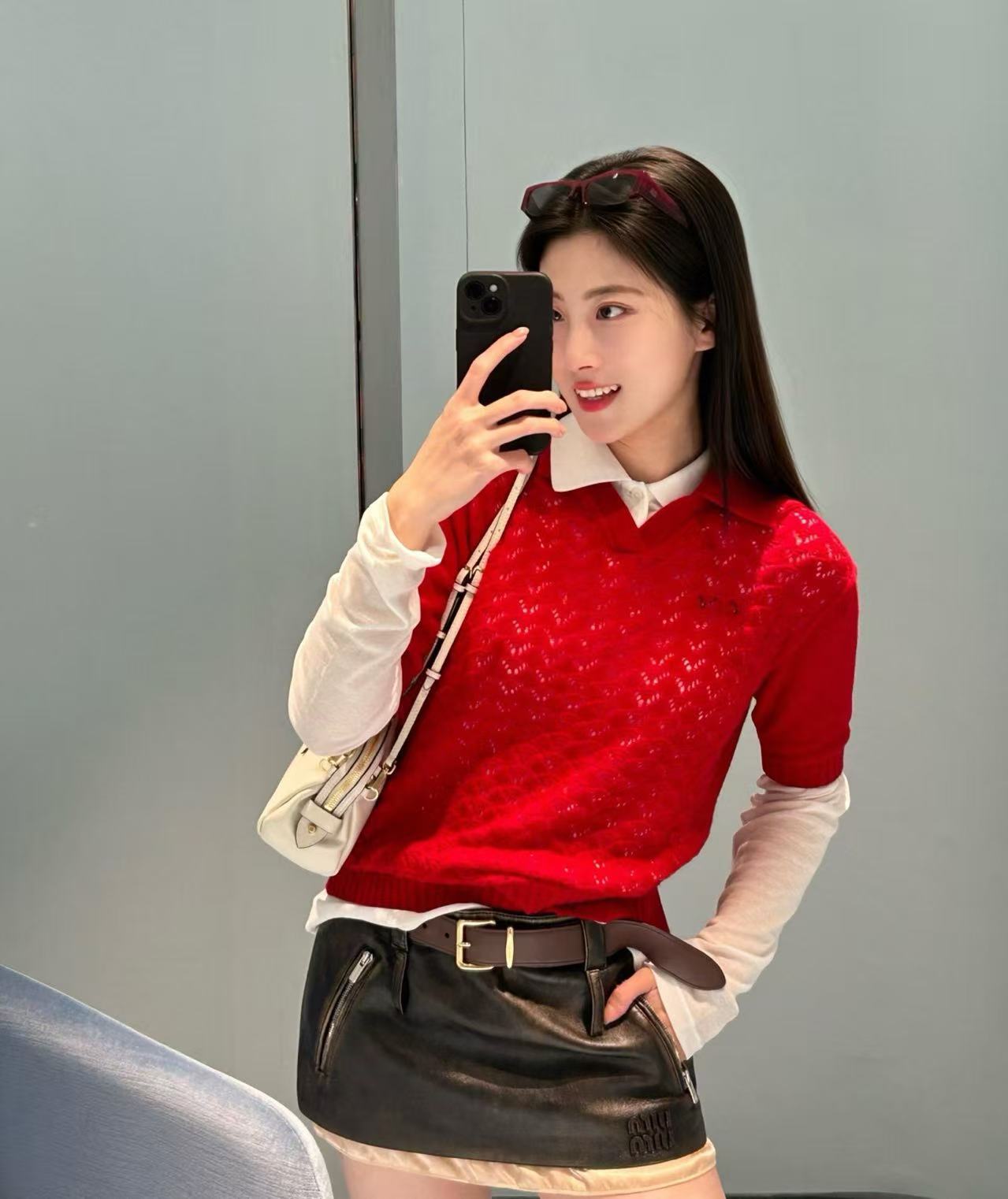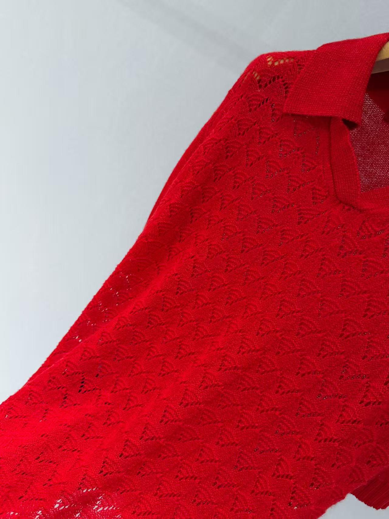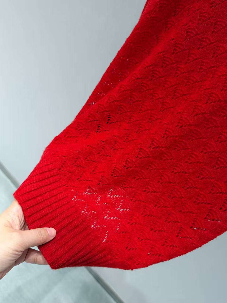 2026早春 Miu家 紅色山羊絨針織 POLO 衫