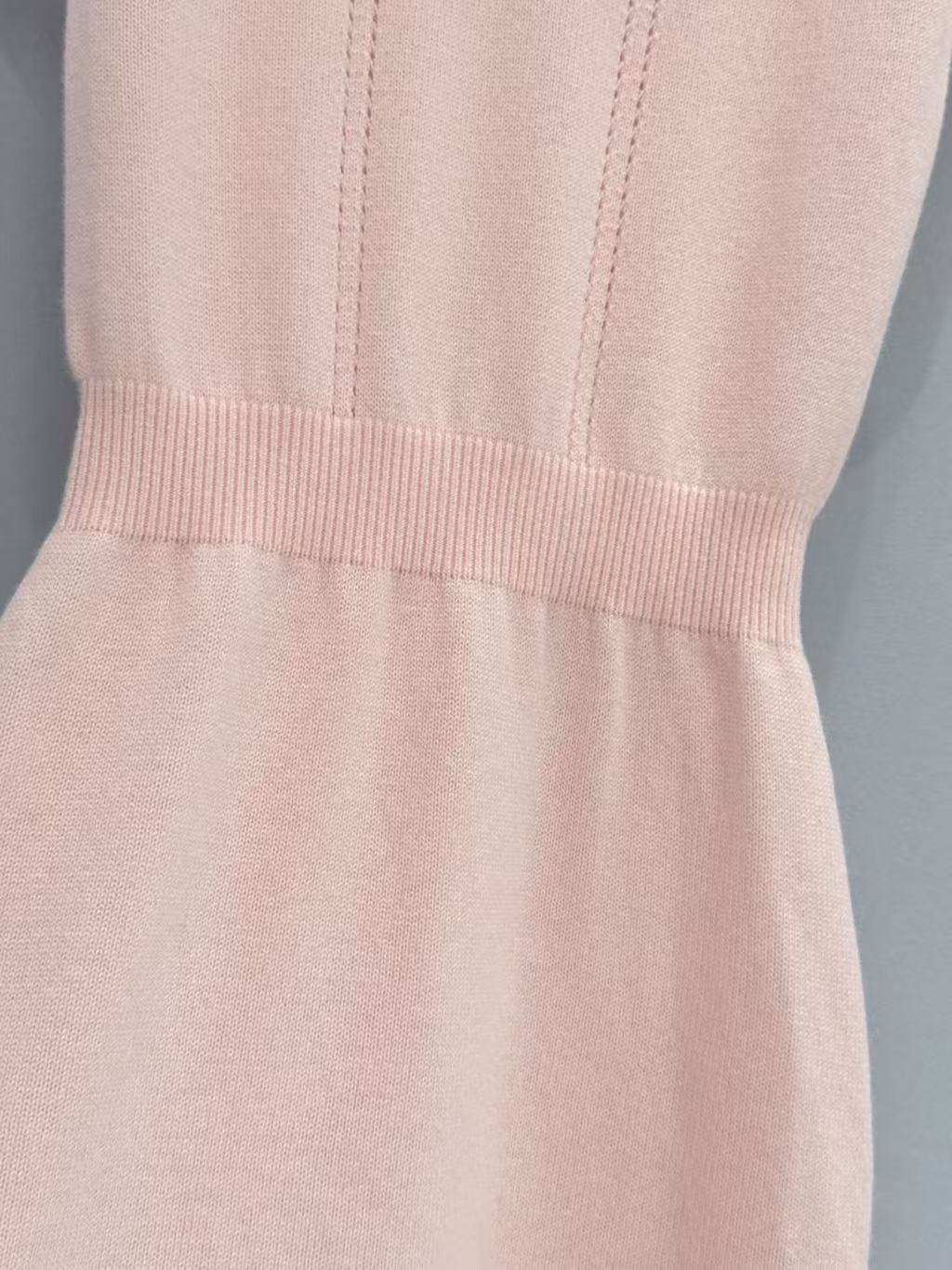 立體挺度: 雖然是針織材質,但因為支數高,裙擺具有很好的「支撐力」,不會軟塌貼在腿上,能長久維持俐落的廓形。