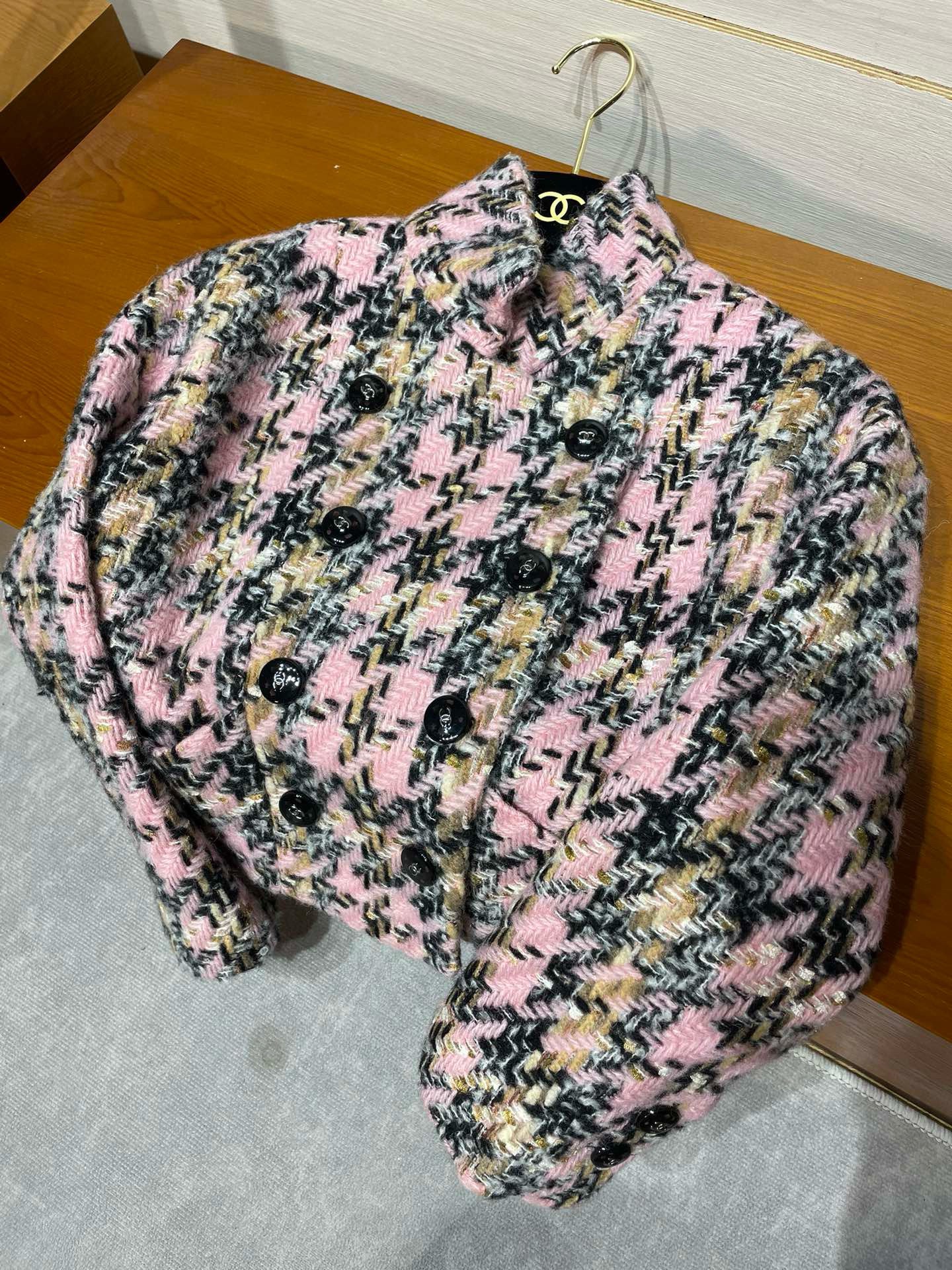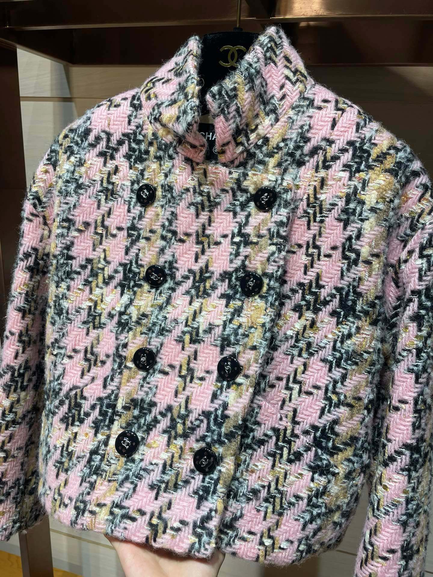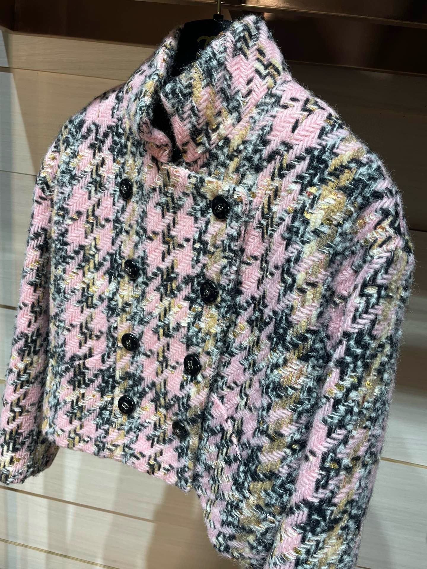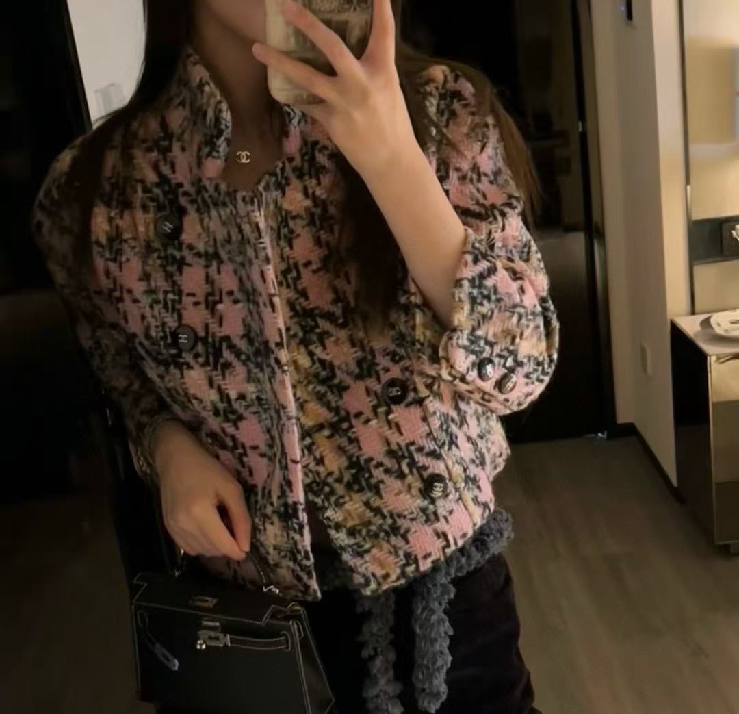 2024秋冬新品 C家拼色千鳥格短款外套
