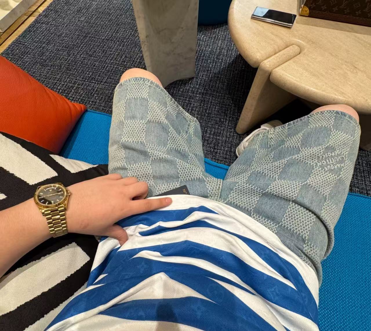 Damier 棋盤格始終是永恆的靈魂。這次分享的 2025 春夏系列棋盤格牛仔短褲,將這項經典元素推向了技術的新高度。