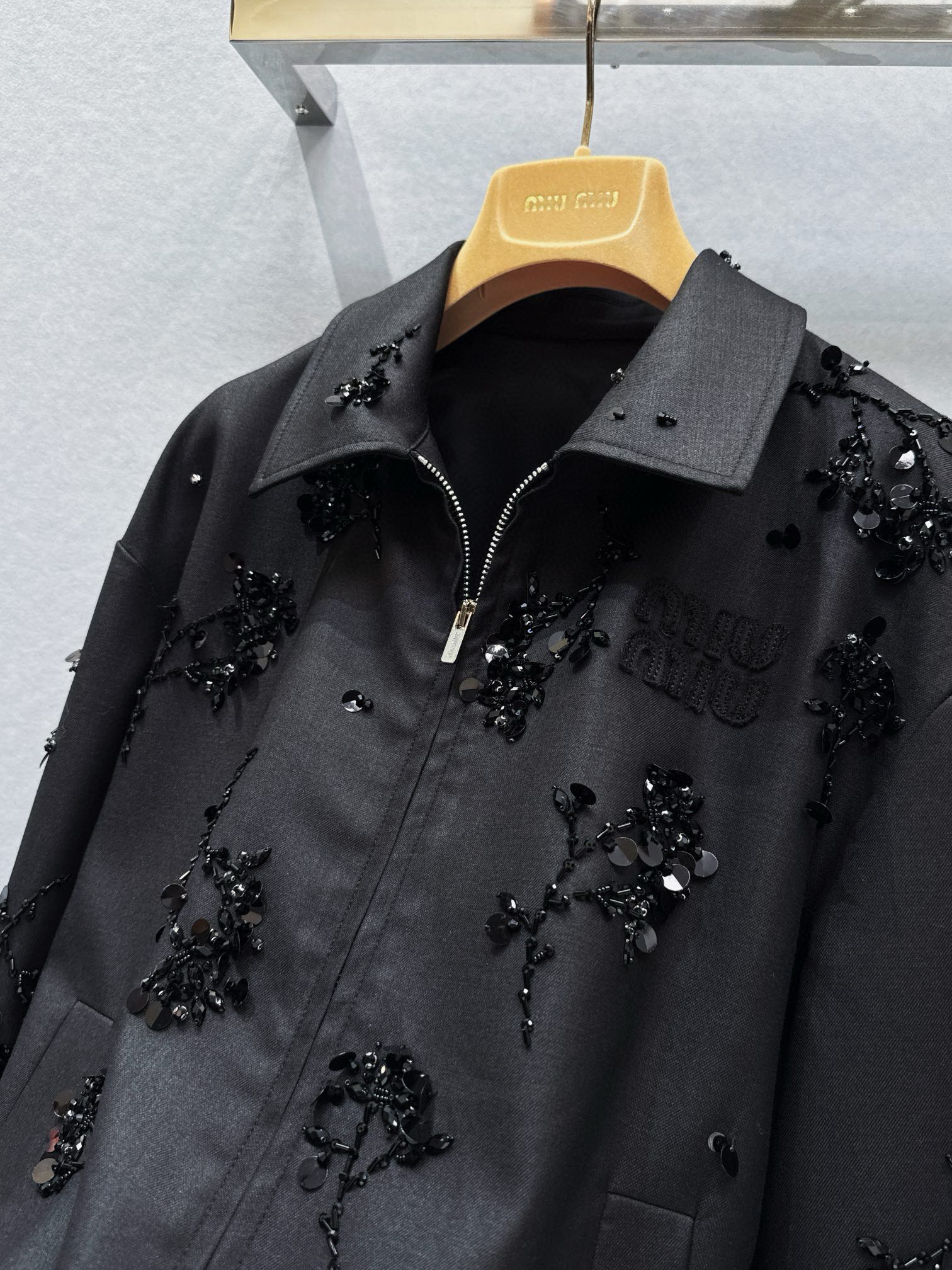 2024秋冬 MIU家釘珠刺繡拉鍊外套