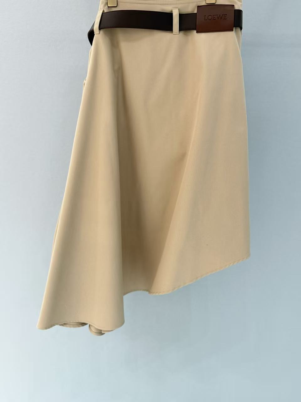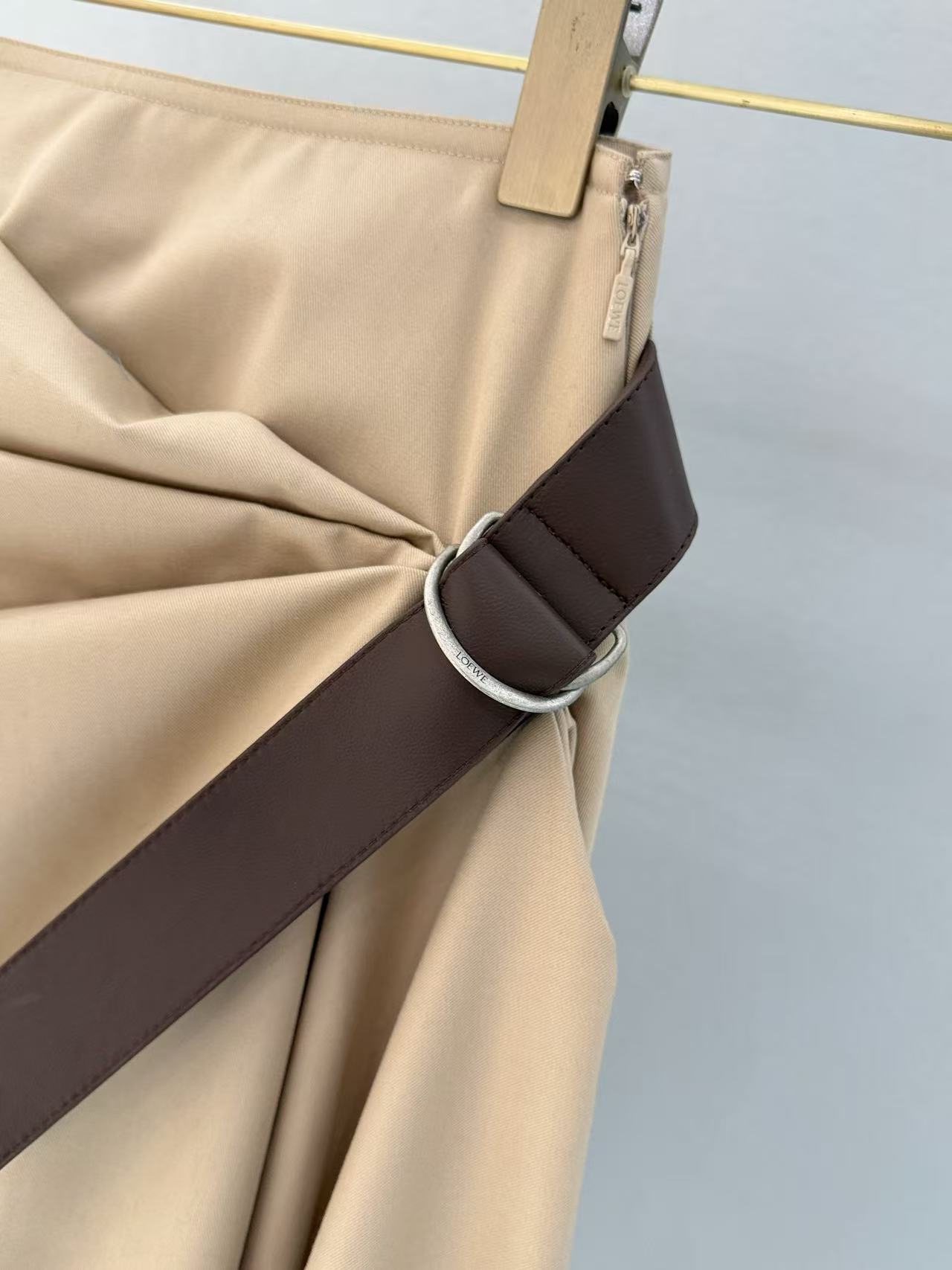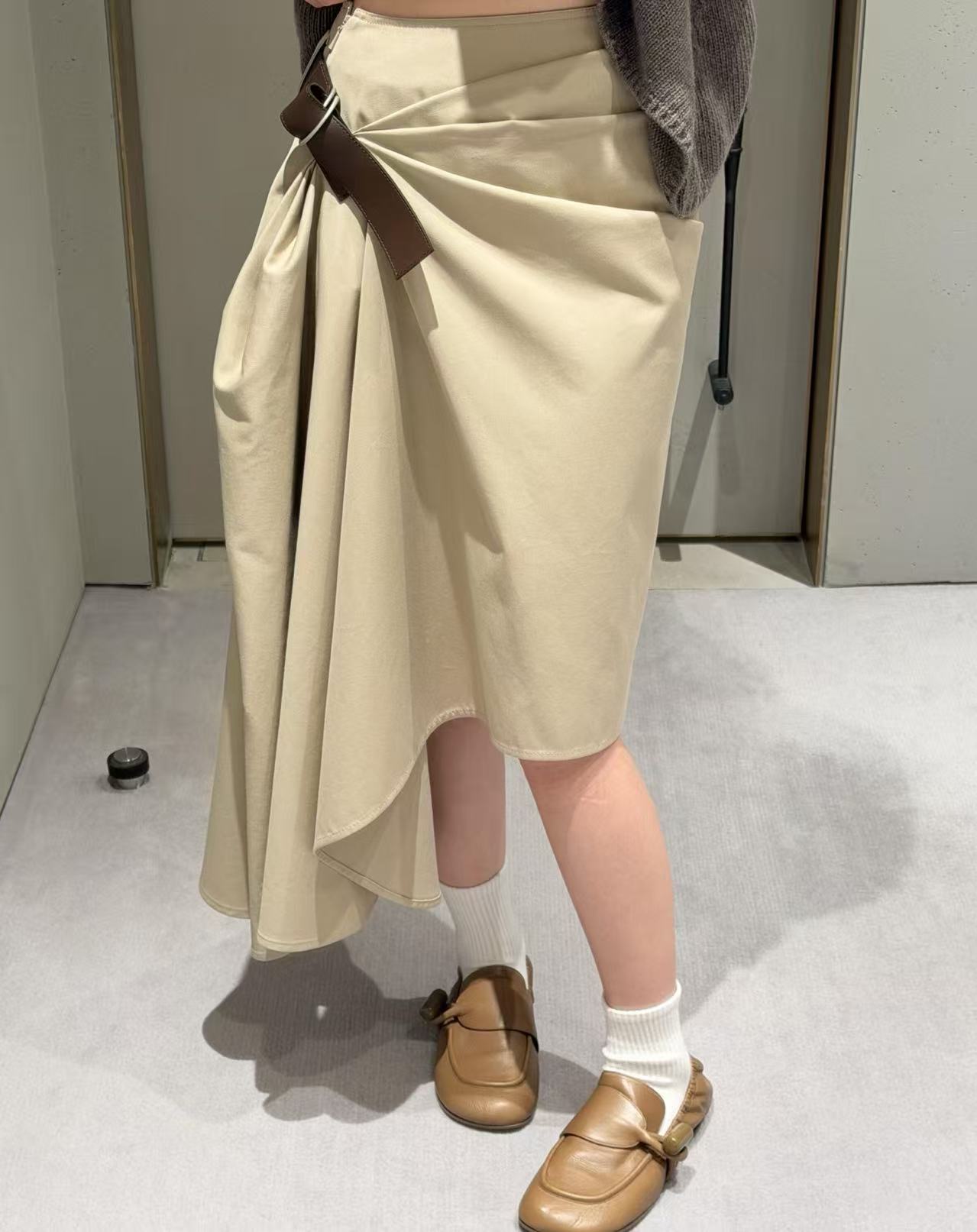 2025早春 LEW家 卡其色不對稱褶皺半裙