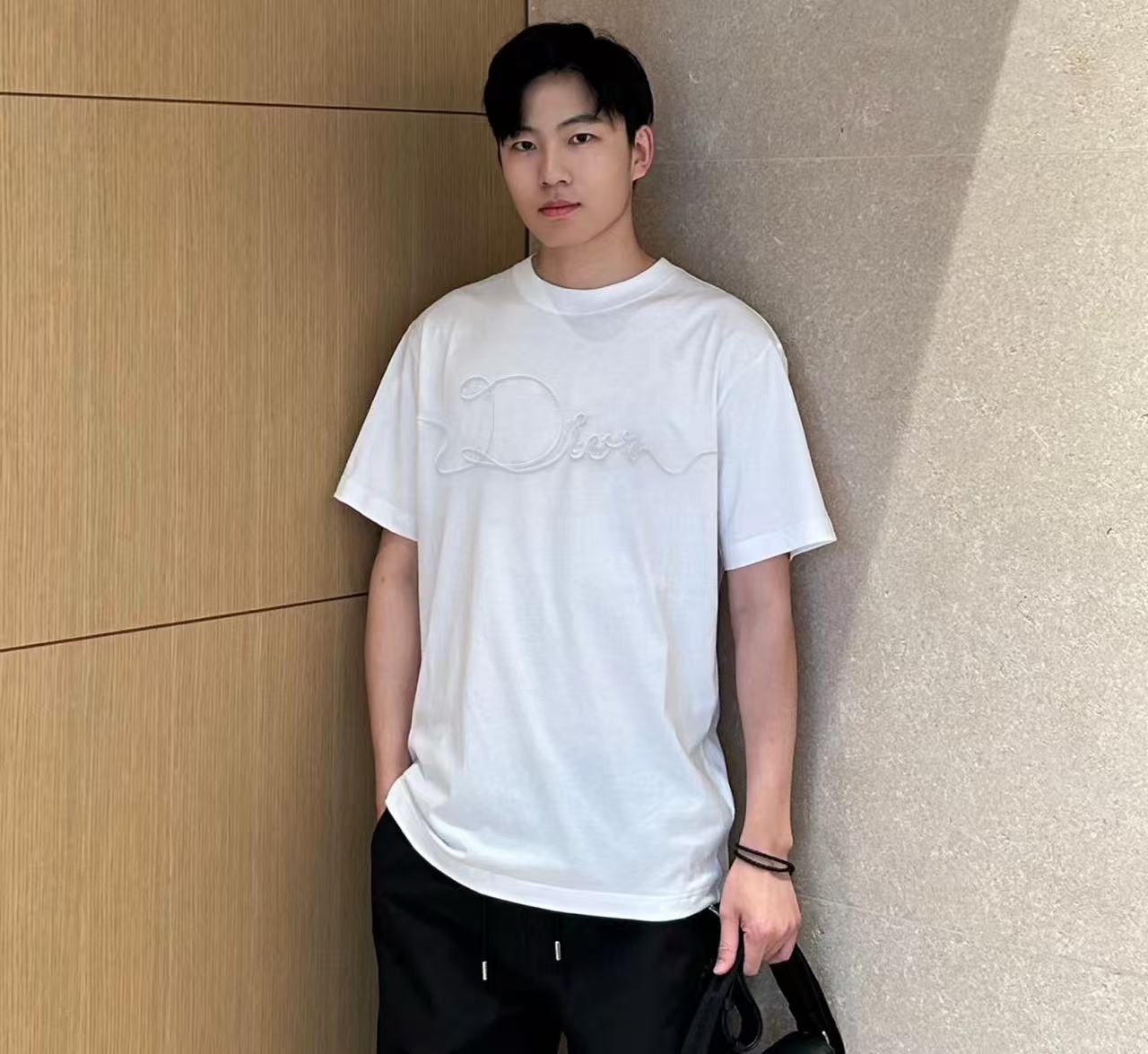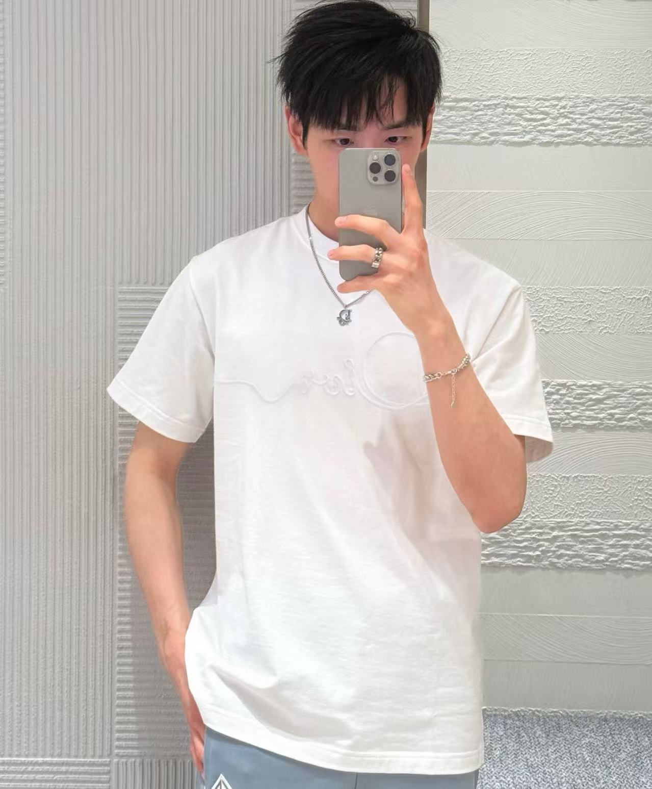 最犯規的還是那滿版的「織緞徽章」設計!一樣是用帶絲質光澤的緞帶織出來,再用特殊工藝完美固定在衣服上~緞面滑順會發光+T恤本身的霧面棉感形成超強對比,陽光一照整個衣服都在閃,卻又不會太誇張,真的高級到讓人想尖叫!