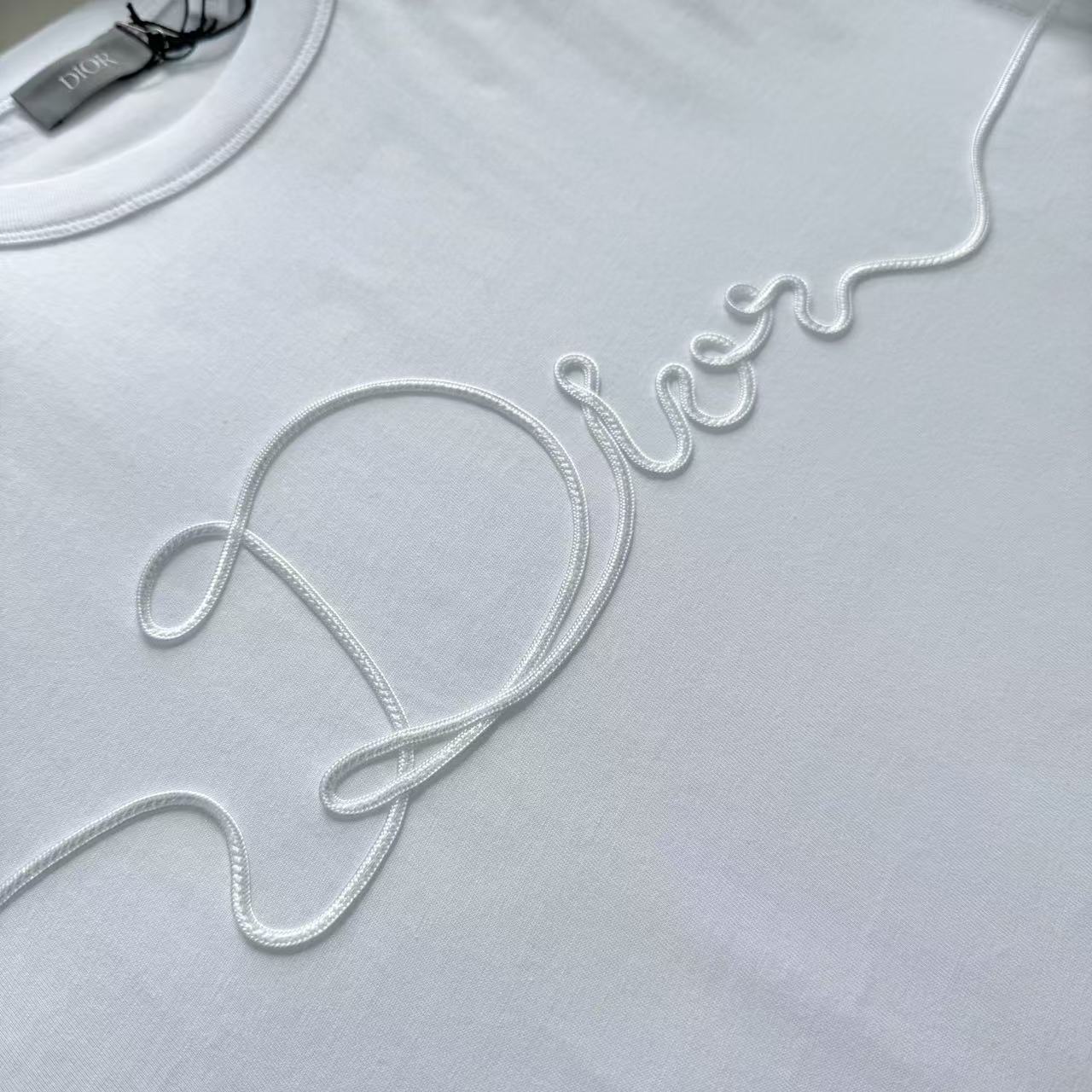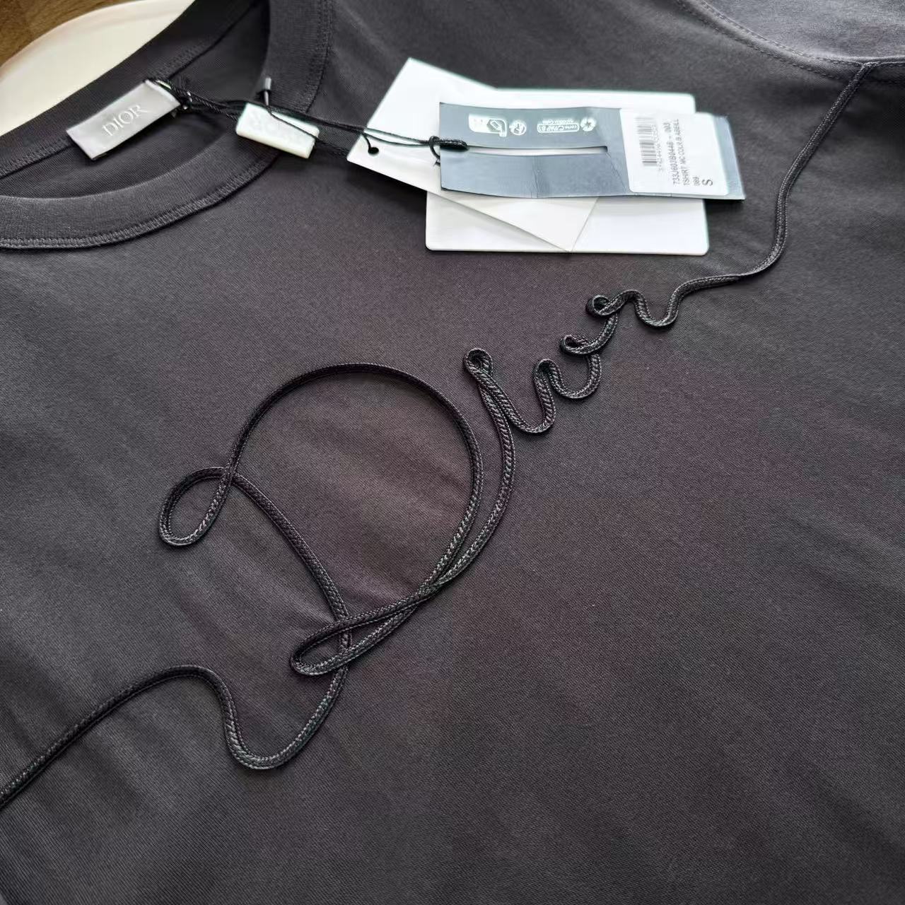 ・緞帶刺繡工藝:滿版緞帶字母+徽章裝飾,緞帶自帶絲質光澤+滑順觸感,與T恤霧面質感形成極致高級對比