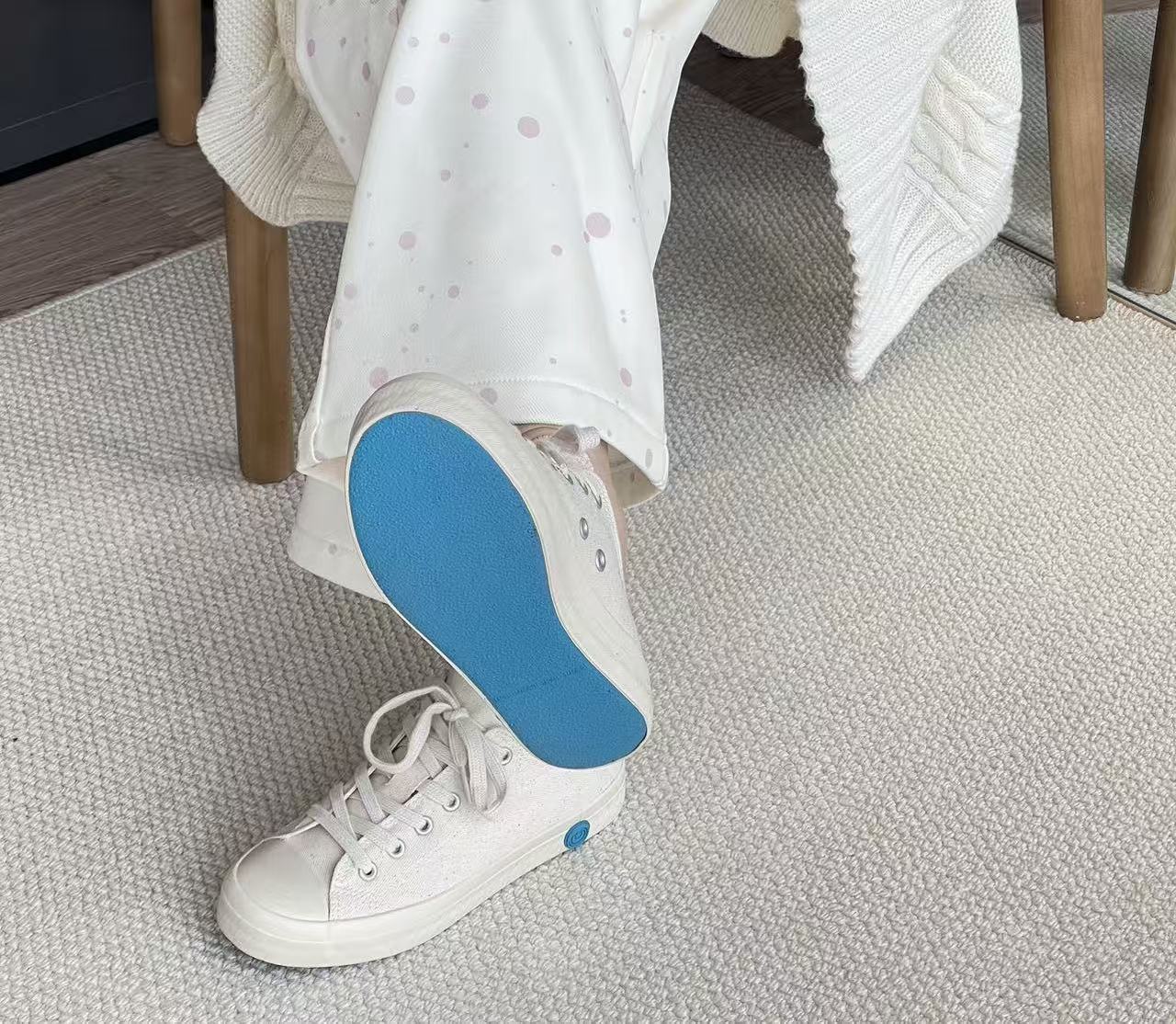 鞋底側邊的手工壓紋與那抹亮眼的藍,展現出品牌不隨波逐流的調性。更重要的是,它不僅僅是好看,透過傳統硫化技術與足弓支撐設計,讓這雙鞋擁有了極致「舒服」的穿著體驗。