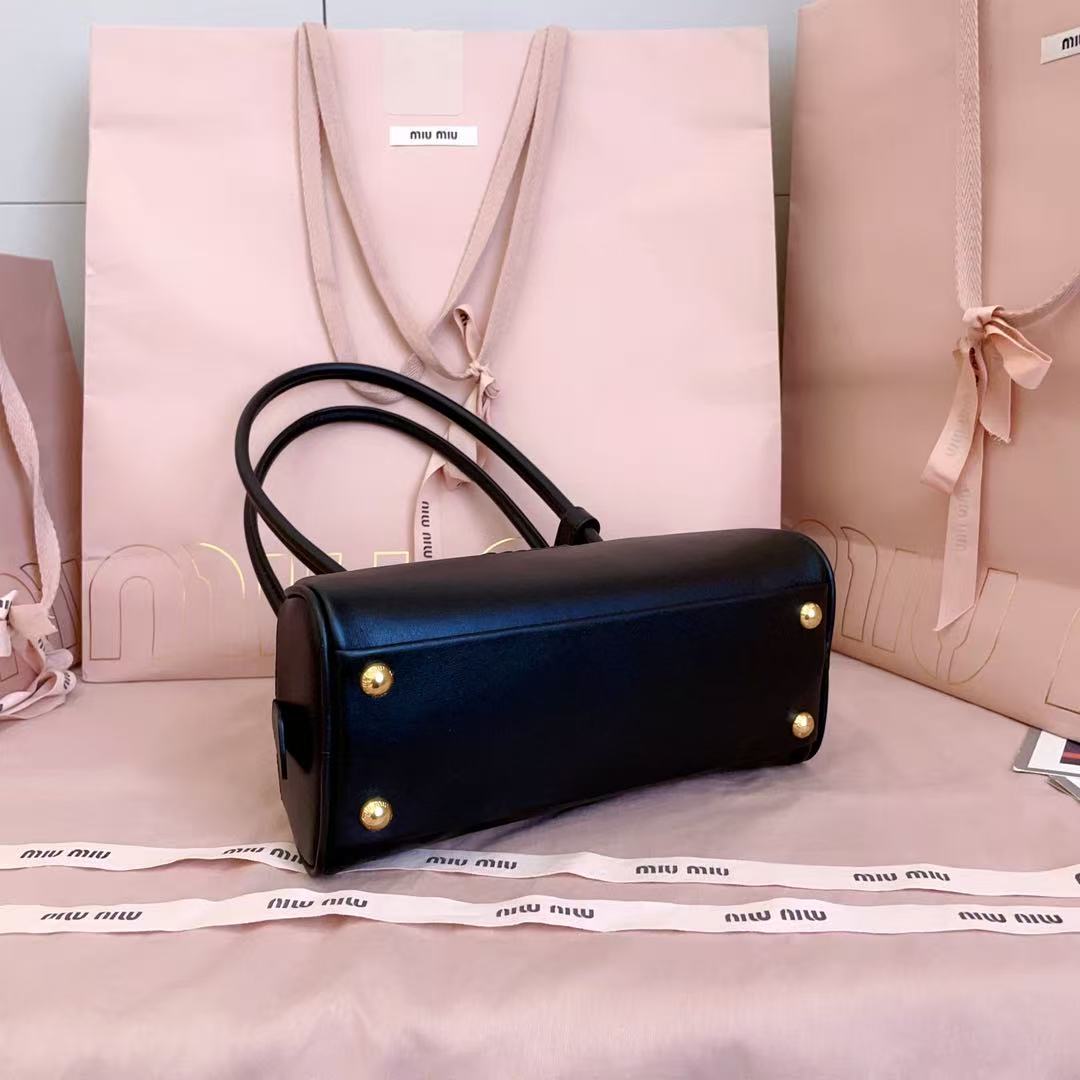 結構化半圓設計: 採用高難度的立體成型工藝,確保包身在空載狀態下依然能維持圓潤有型的線條,不會輕易扁塌。正面點綴經典的 miu標誌性 Logo,低調彰顯品牌辨識度。
