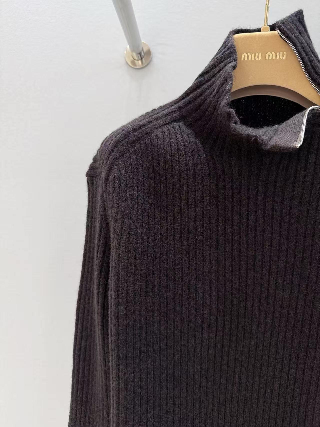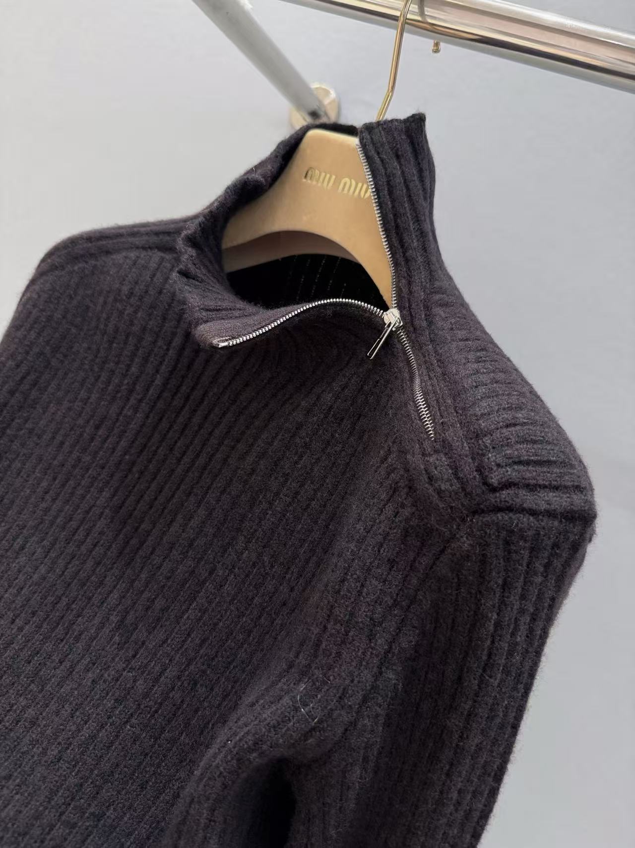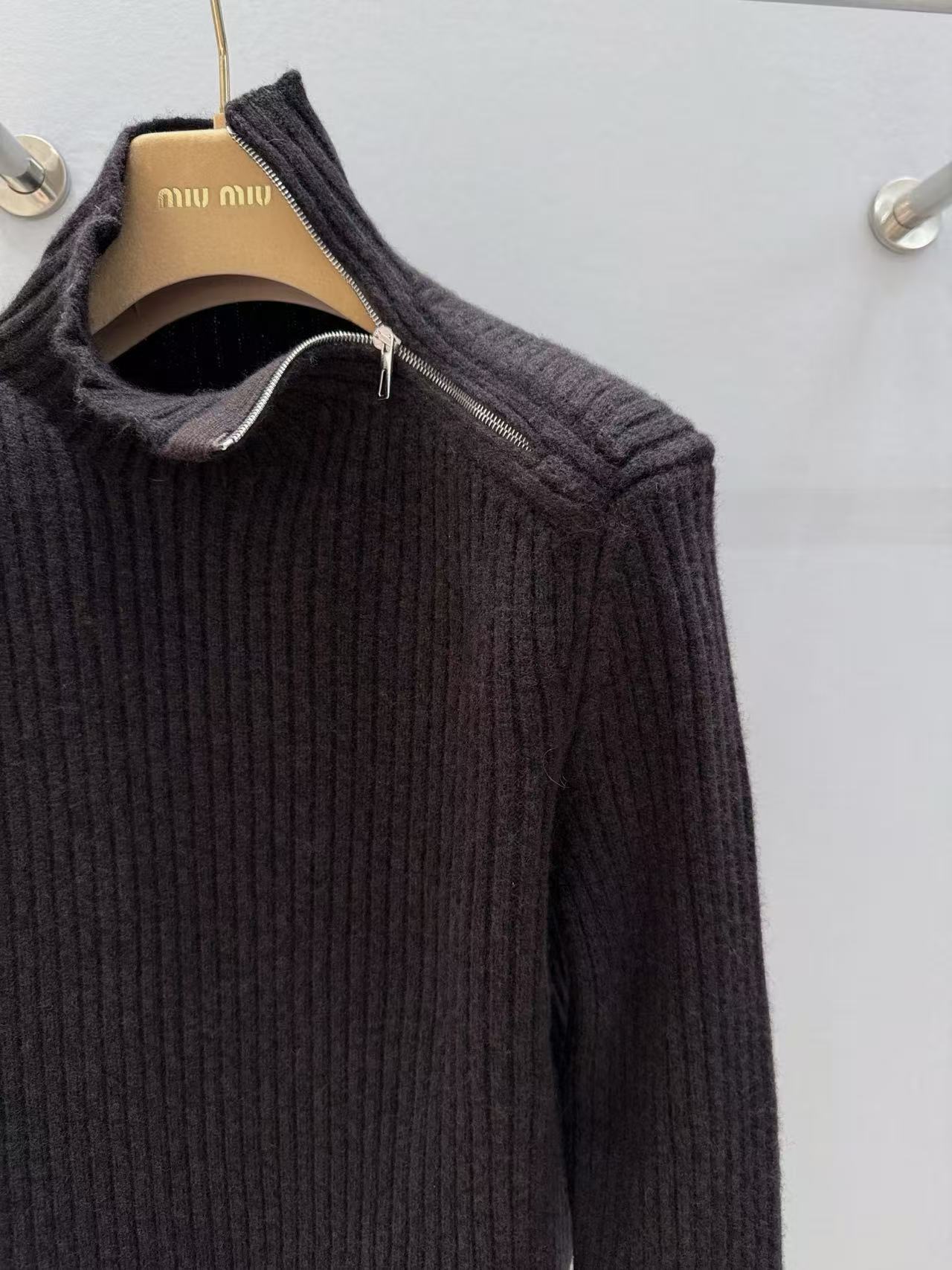 2025早秋 H家 側肩拉鍊立領長袖針織上衣