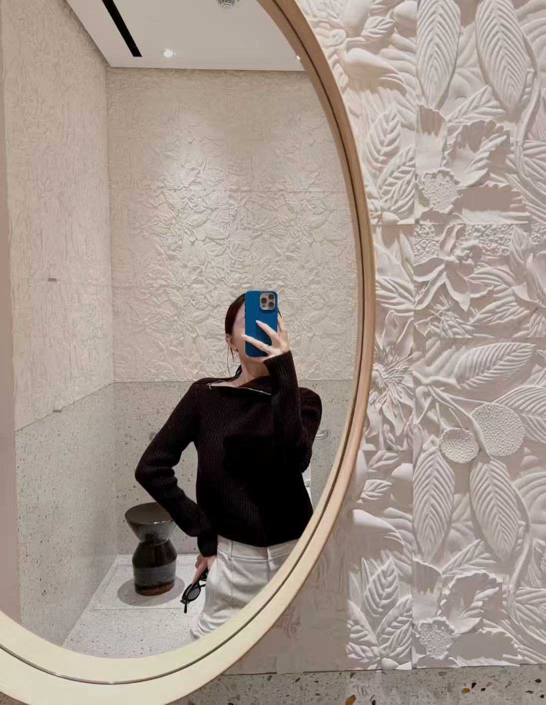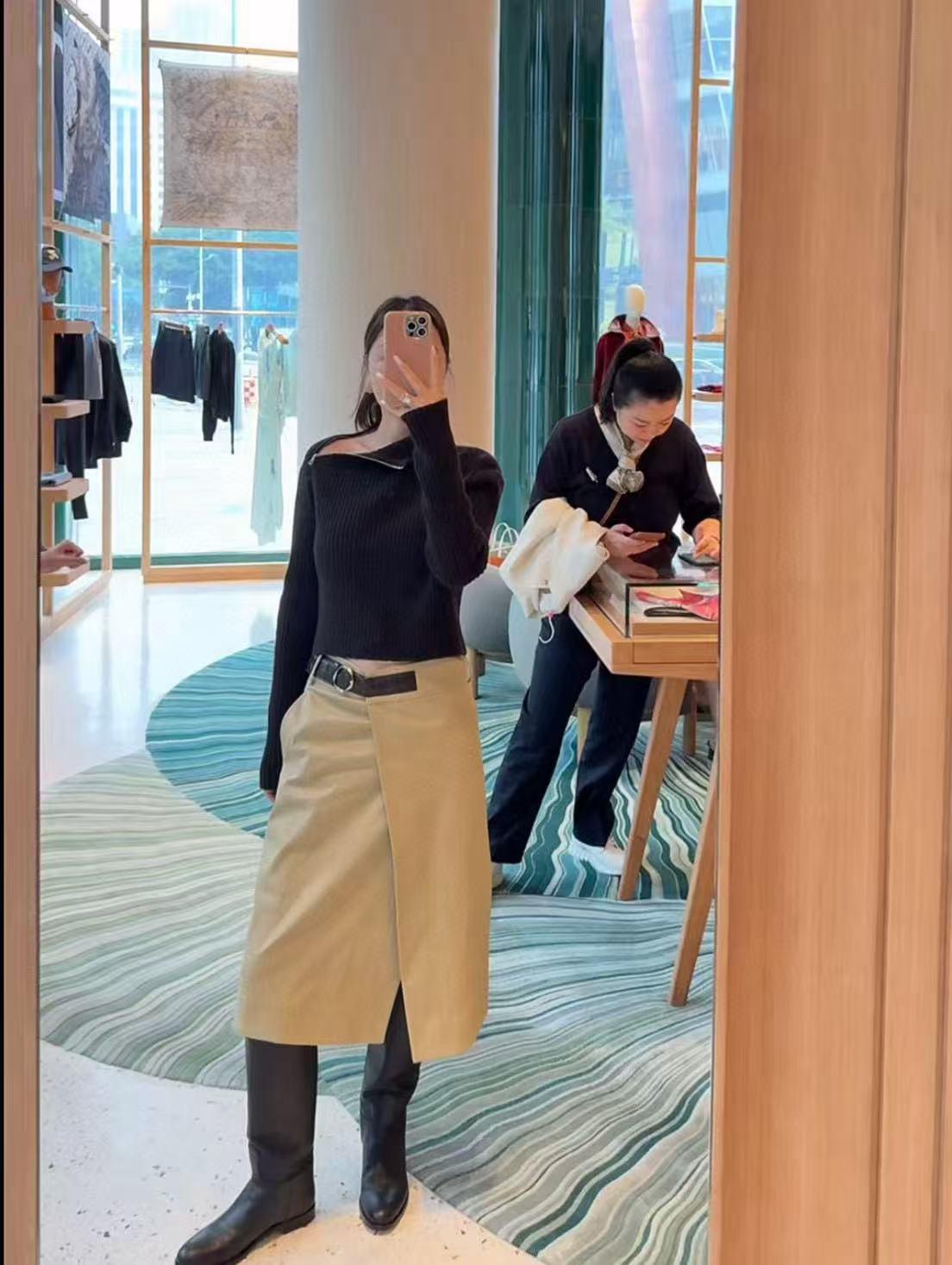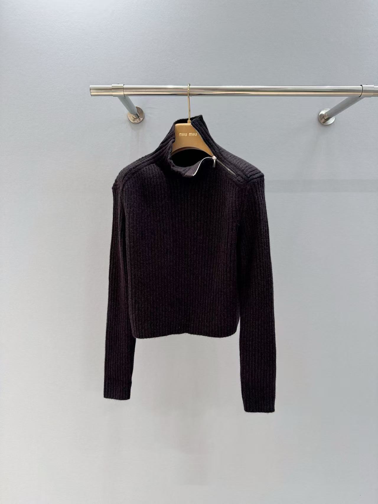 2025早秋 H家 側肩拉鍊立領長袖針織上衣
