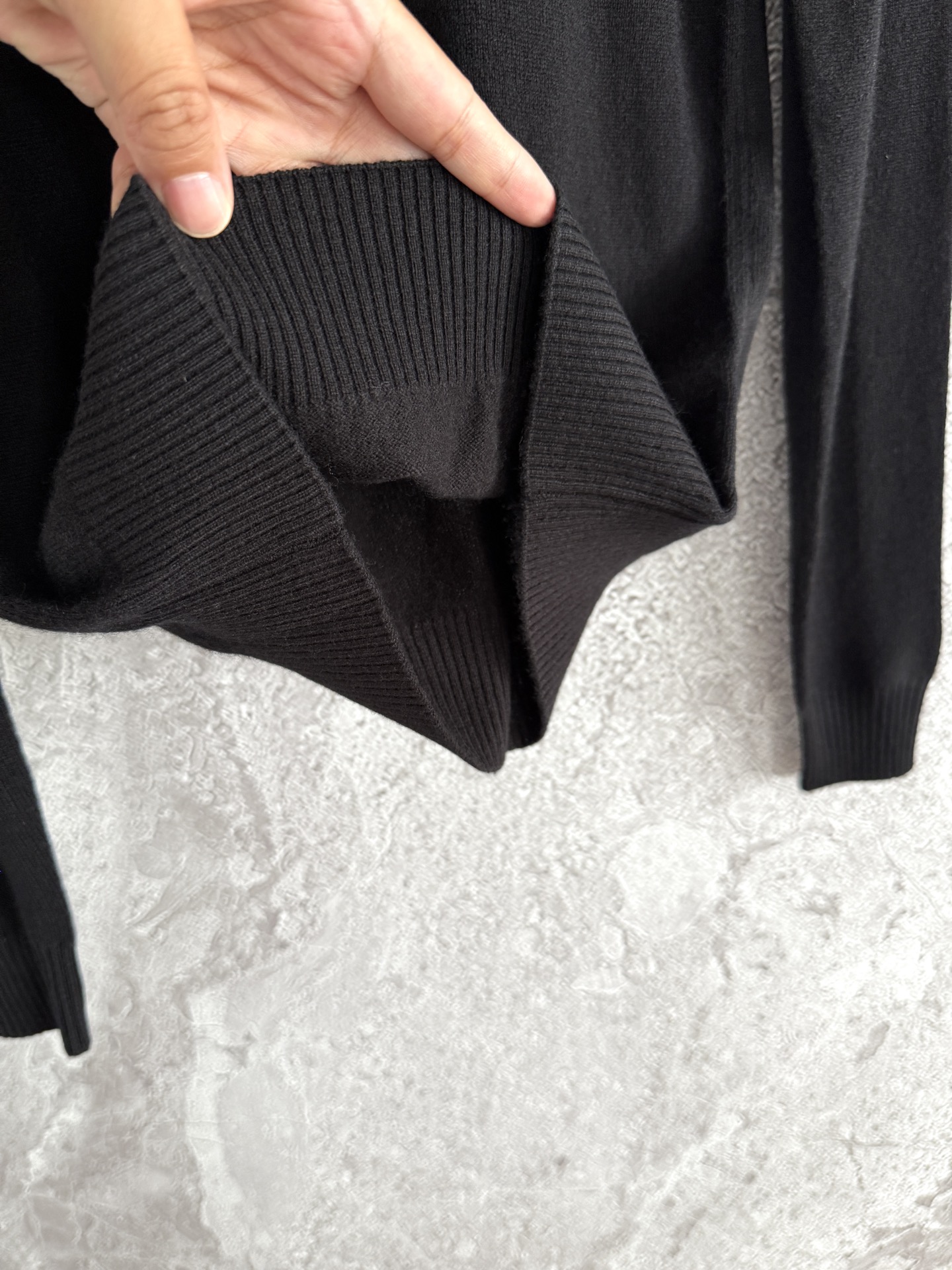 嚴選山羊絨針織而成,觸感細膩柔軟,貼身穿著完全不刺癢。羊絨本身擁有極佳的保暖性能,卻不會厚重笨拙,給予肌膚一種被輕柔包覆的溫暖感。
