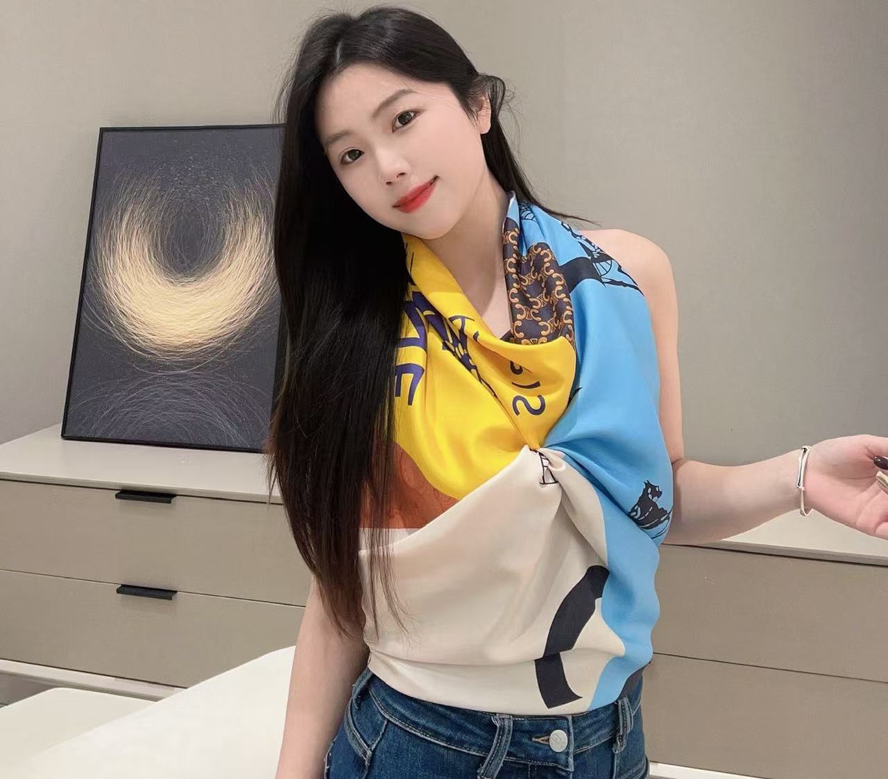 無論是穿梭於都市街頭或是在假日漫步,這款絲巾都能憑藉其從容的色彩對比,定義您的專屬風格語言。