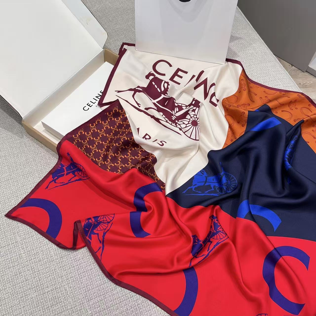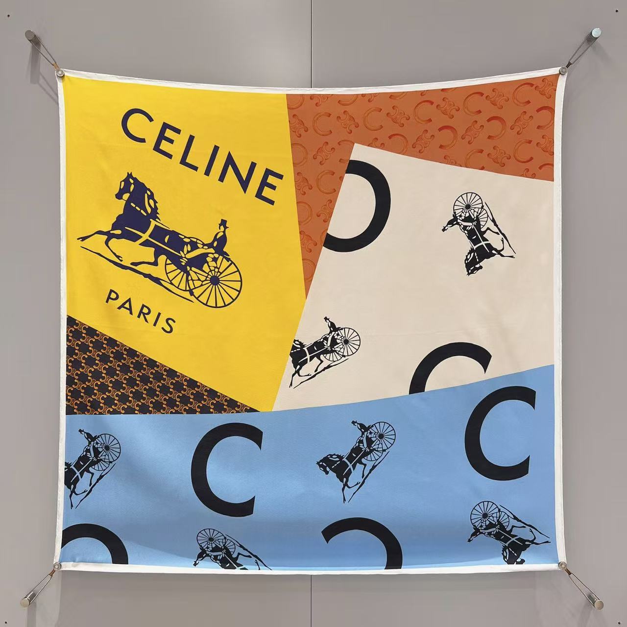 2026早春新品 CE家 旗幟拼接斜紋真絲大方巾