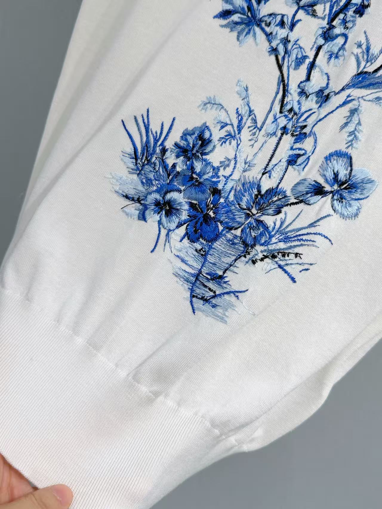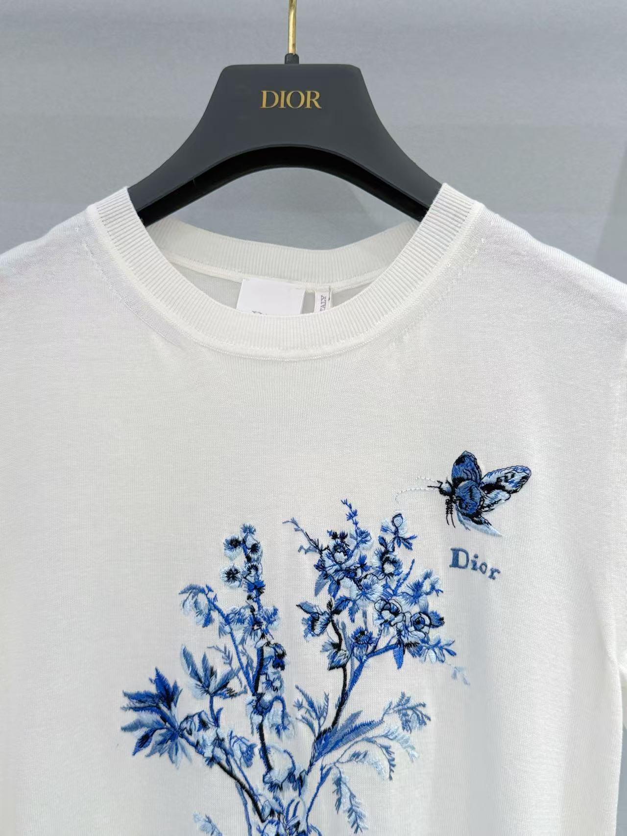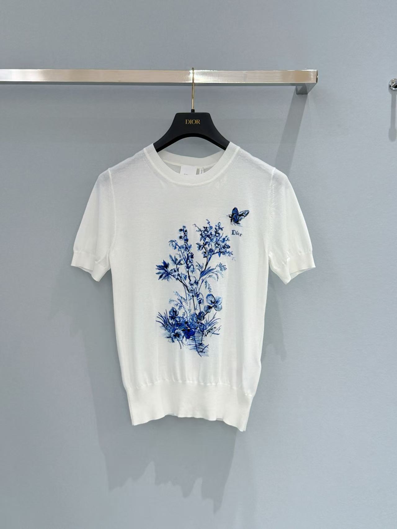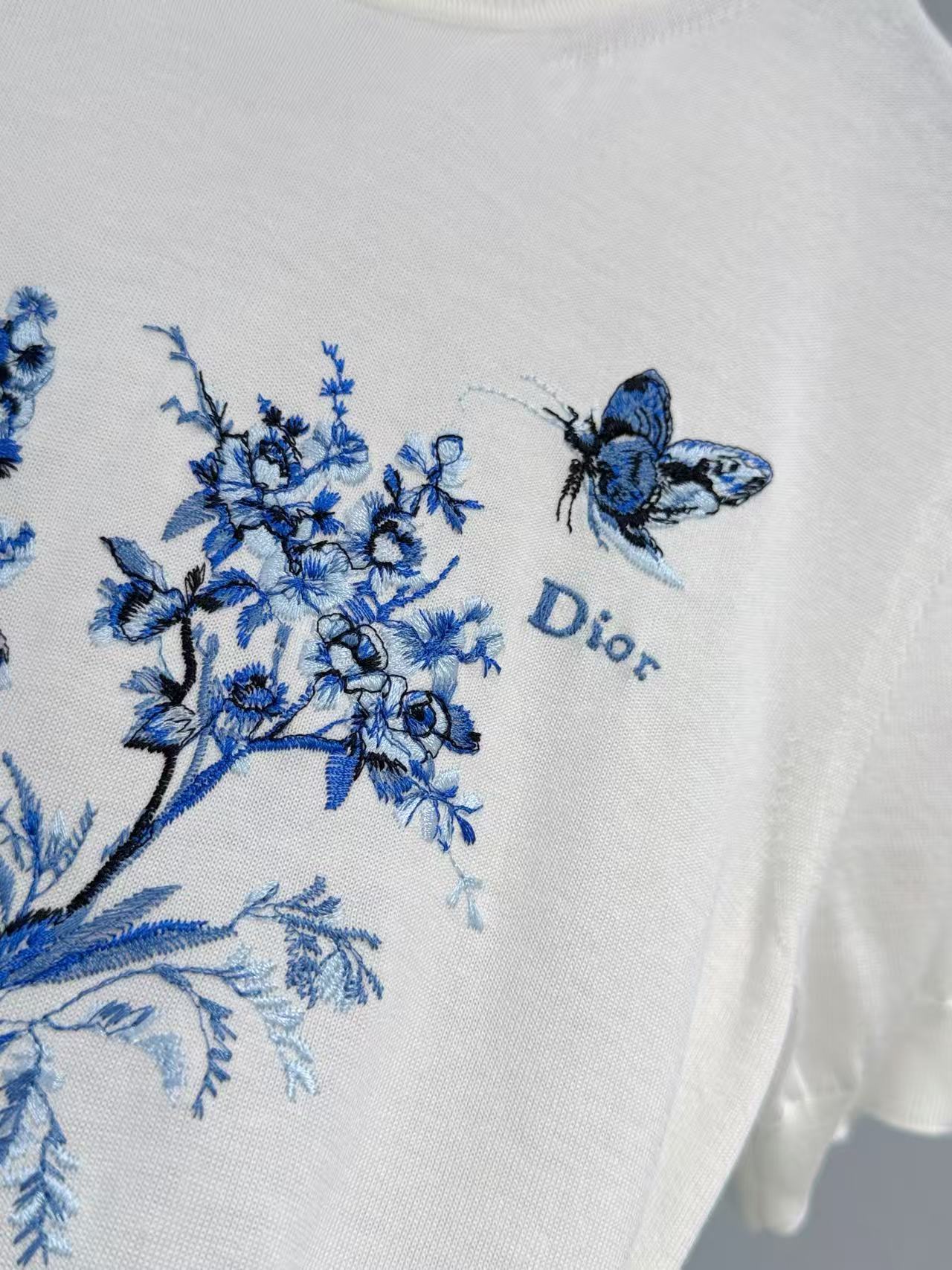 2026早春 D家 青花蝴蝶刺繡針織短袖
