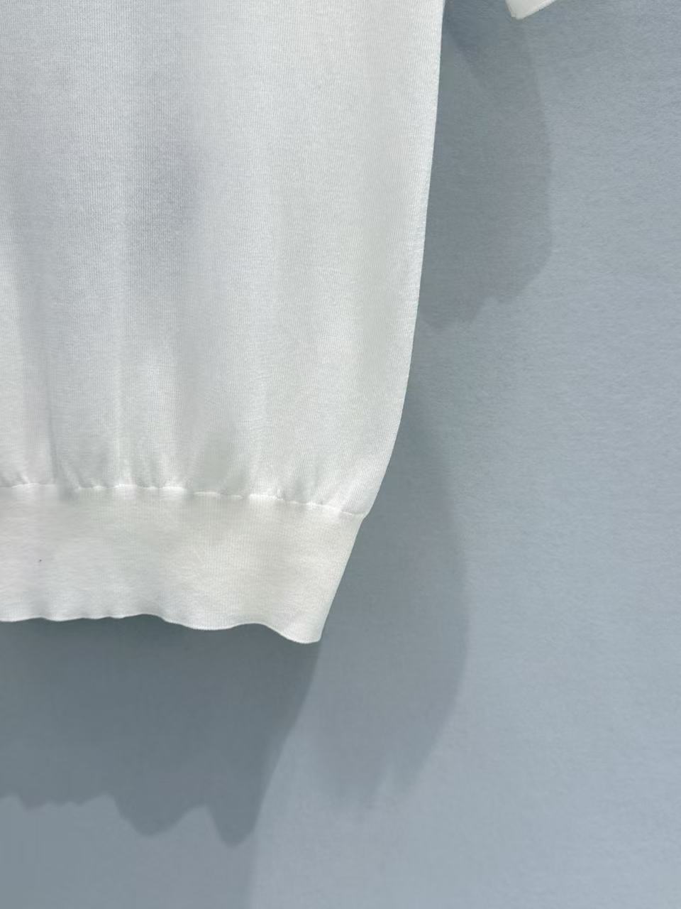 這款設計精準捕捉了「新中式」的精髓,低調的字母徽標 點綴在花叢旁,展現出品牌不顯山不露水的高級感。圓領搭配短袖版型,有一種大家閨秀的端莊與從容。