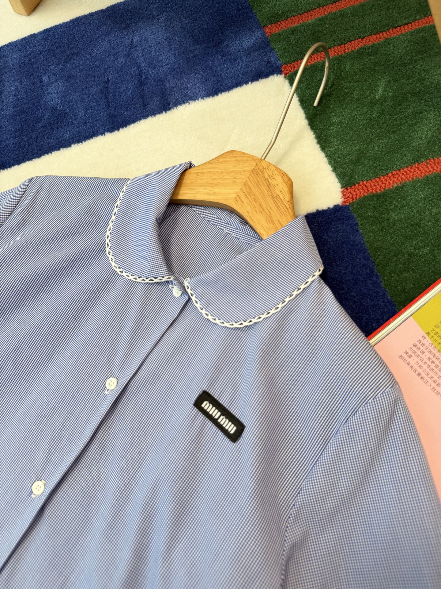 2026早春新品 Miu家 淺藍格紋娃娃領襯衫