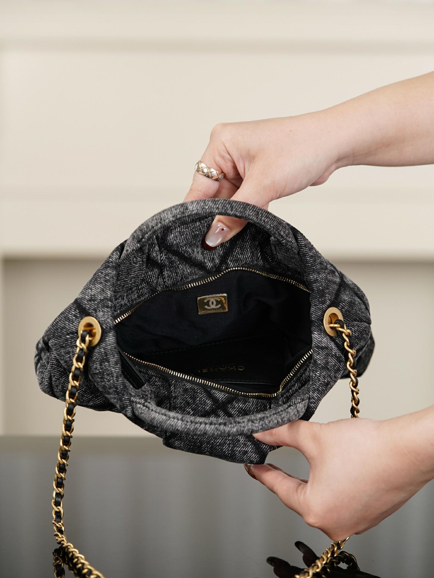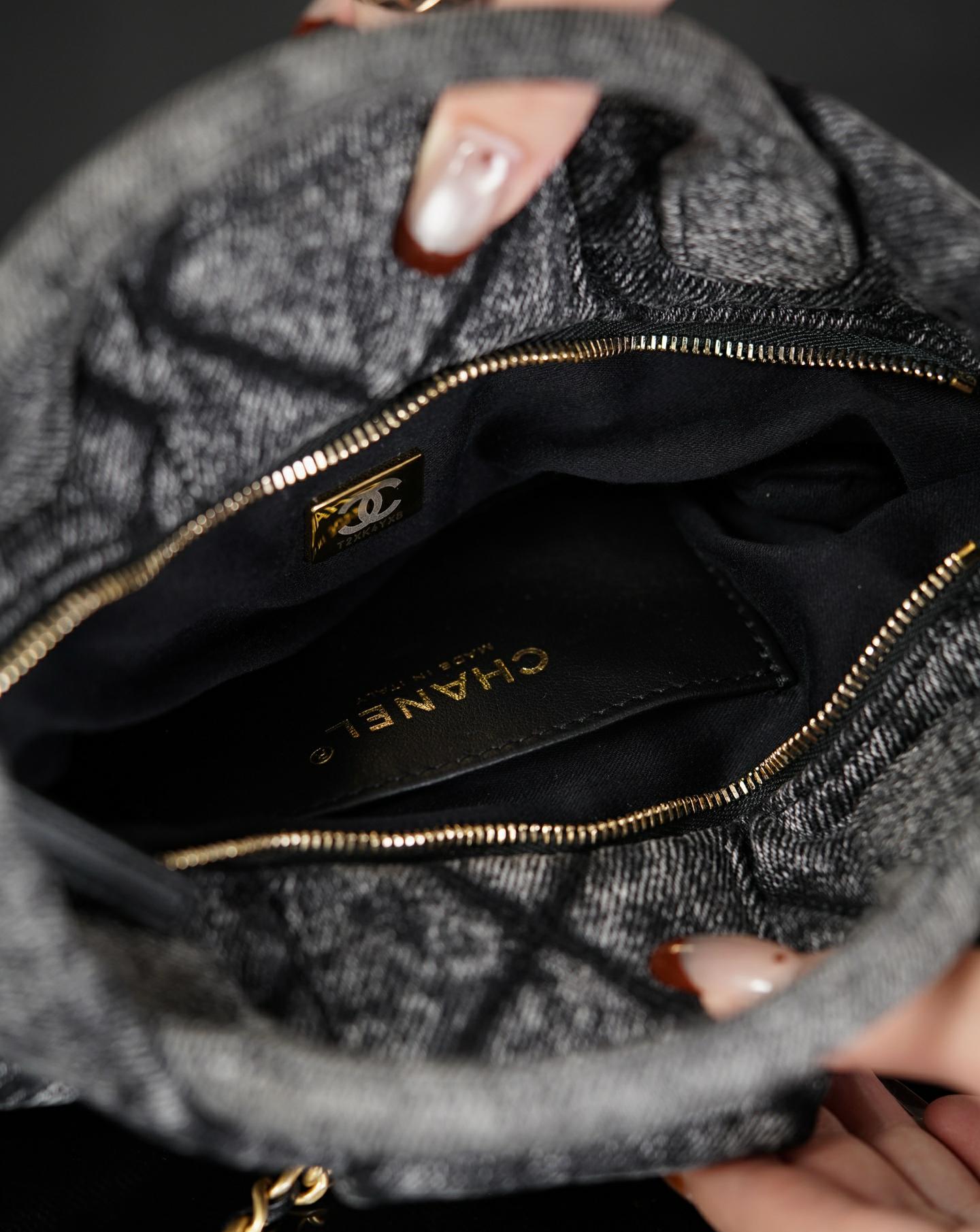 表面帶有細緻的仿舊質感,雙 C 字母刻印清楚立體,皮穿金屬鏈條細節完整,整體質感非常到位。