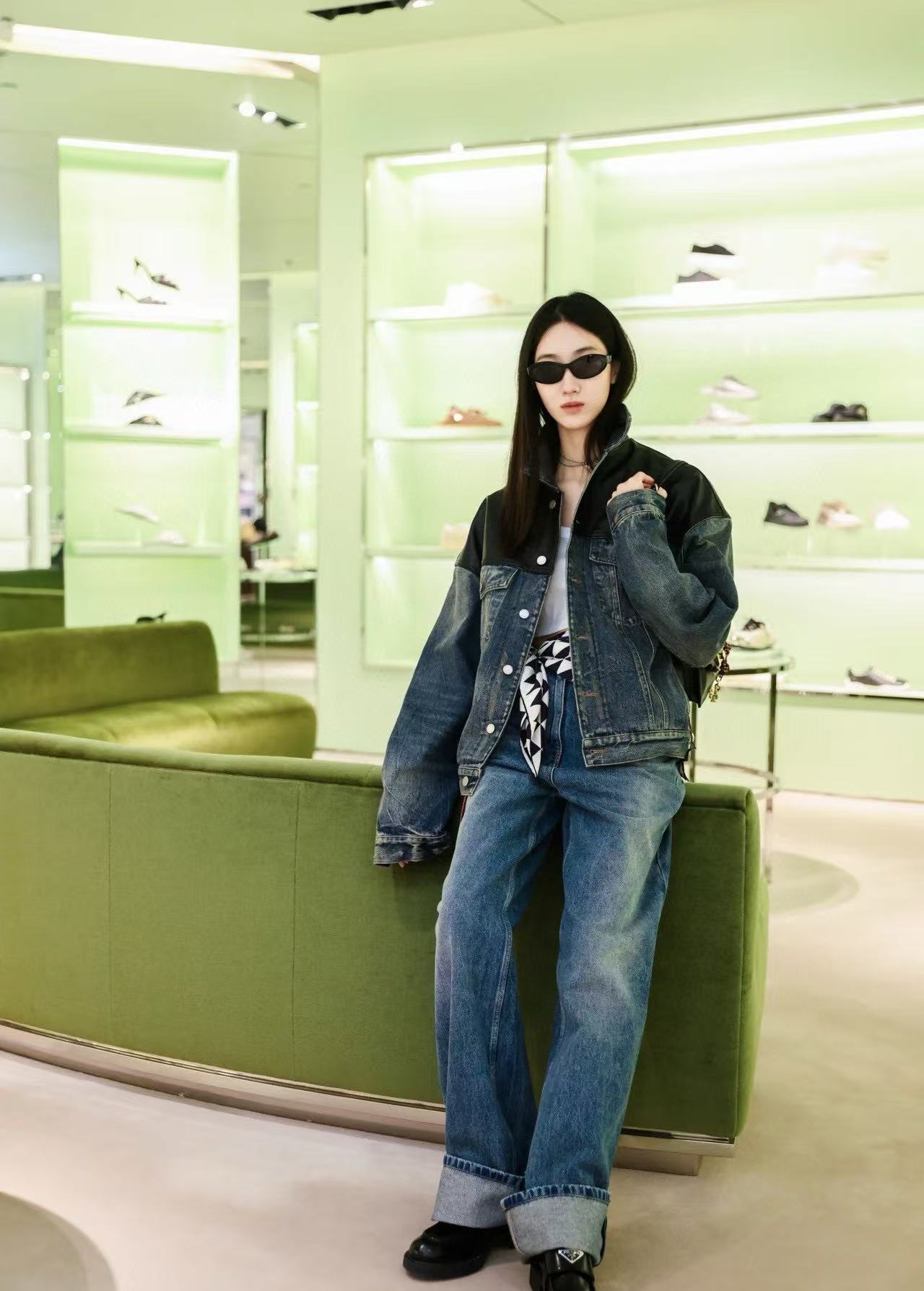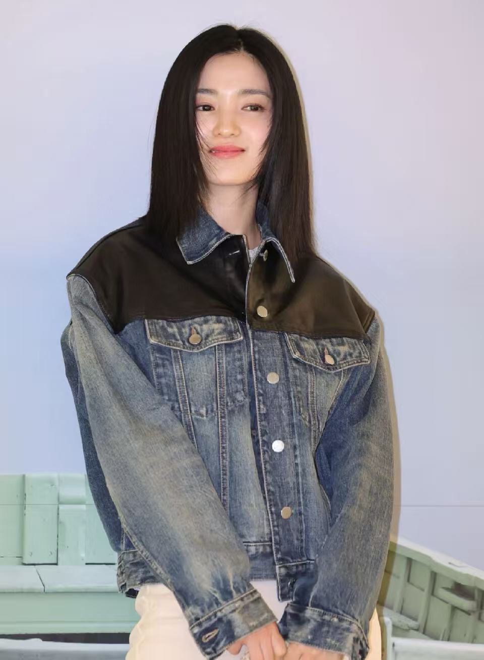 牛仔部分經過舊化洗水工藝處理,色澤層次自然,展現出獨特的復古韻味。