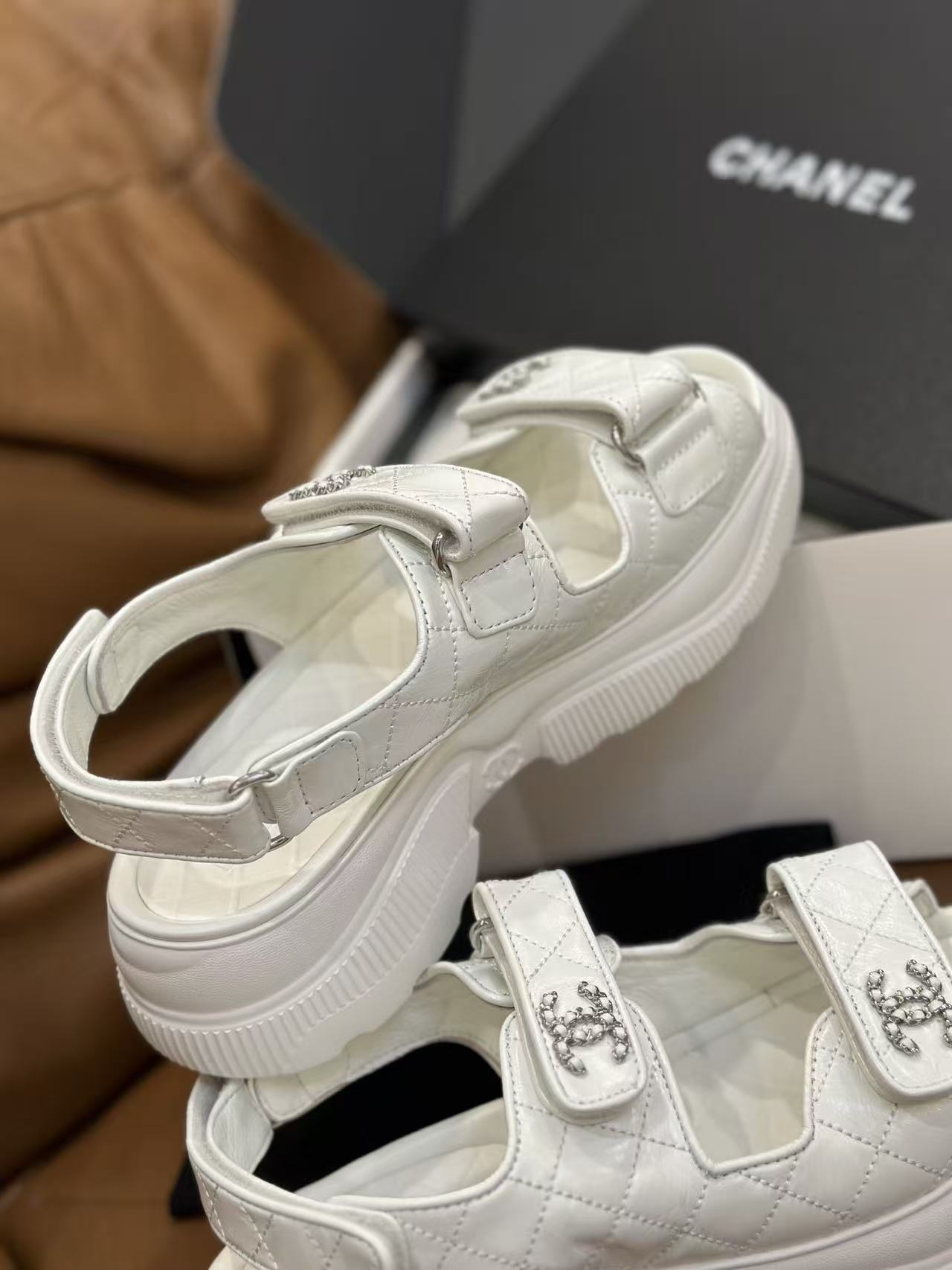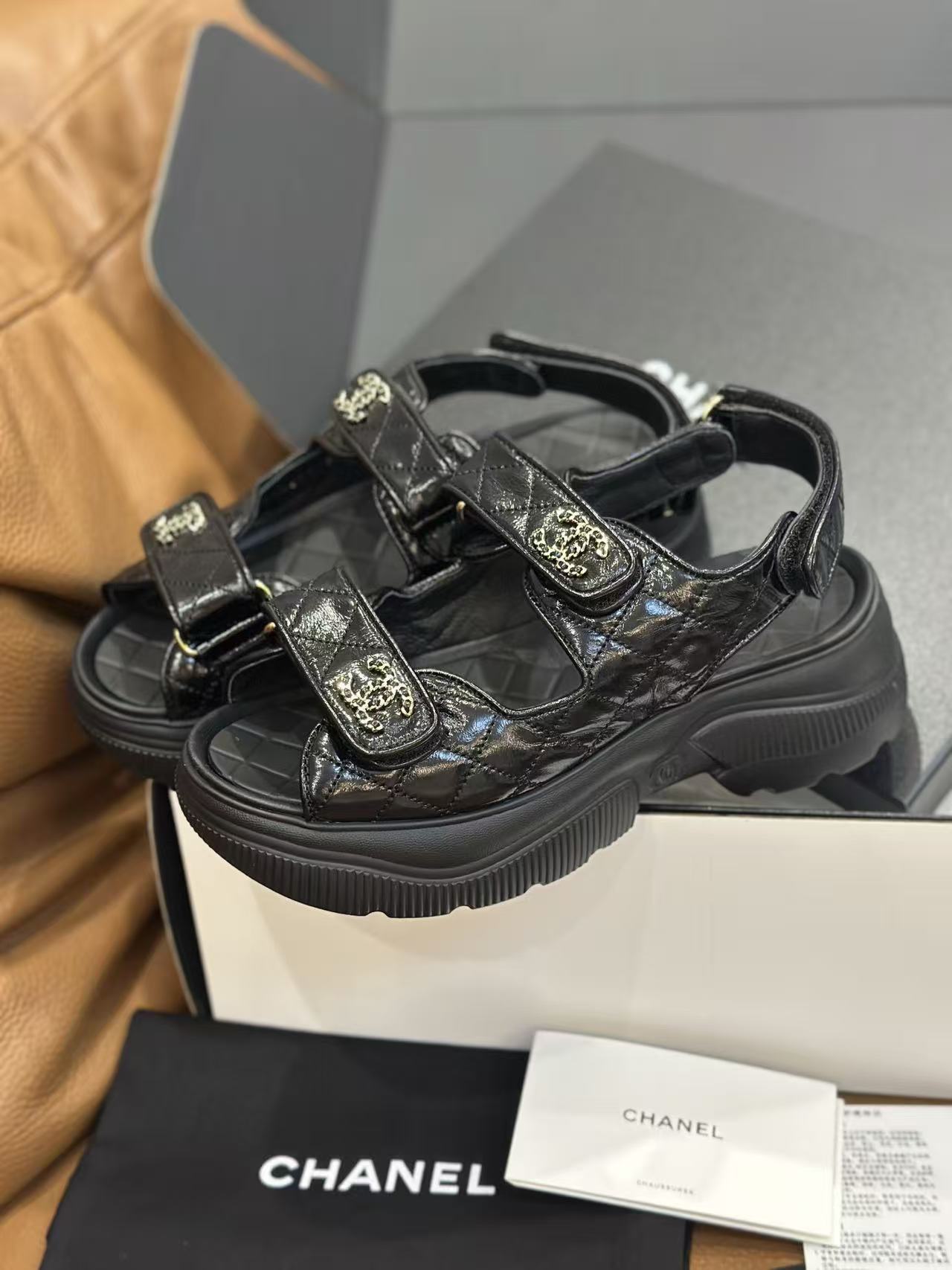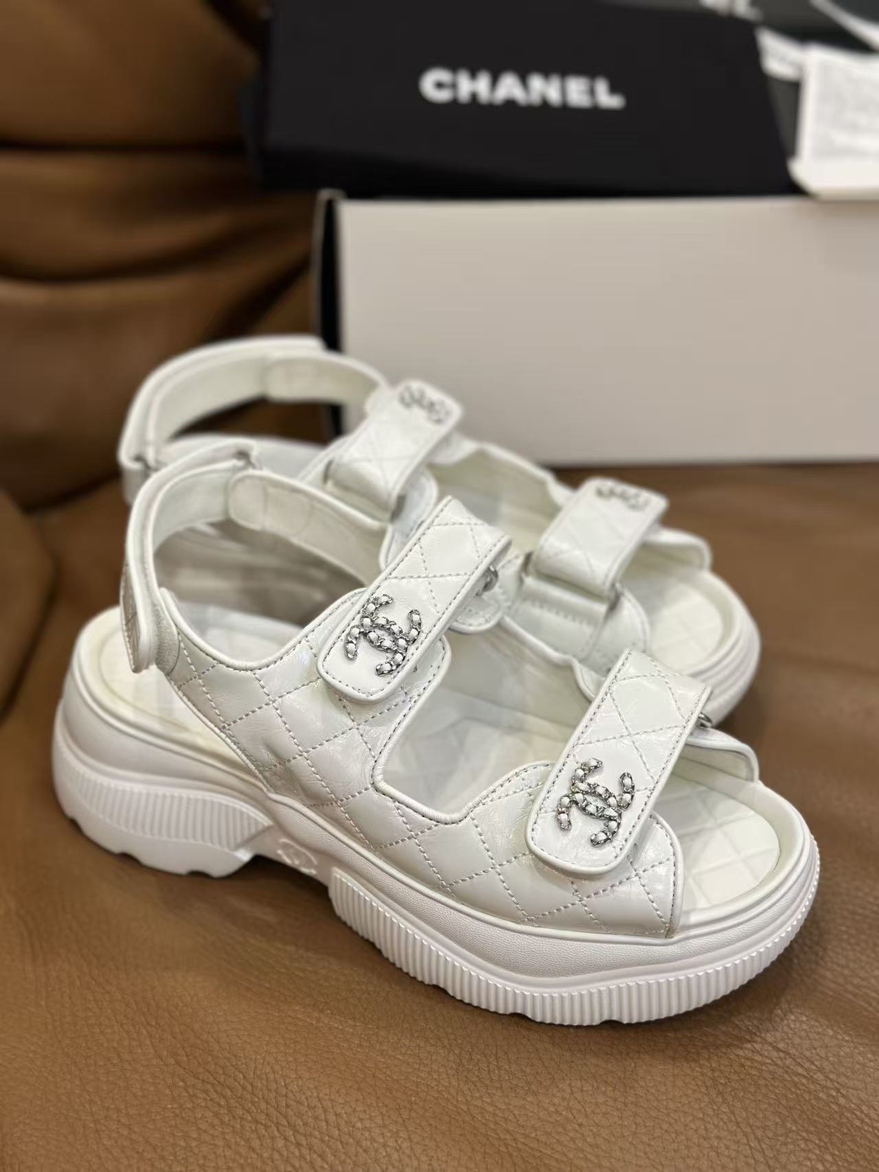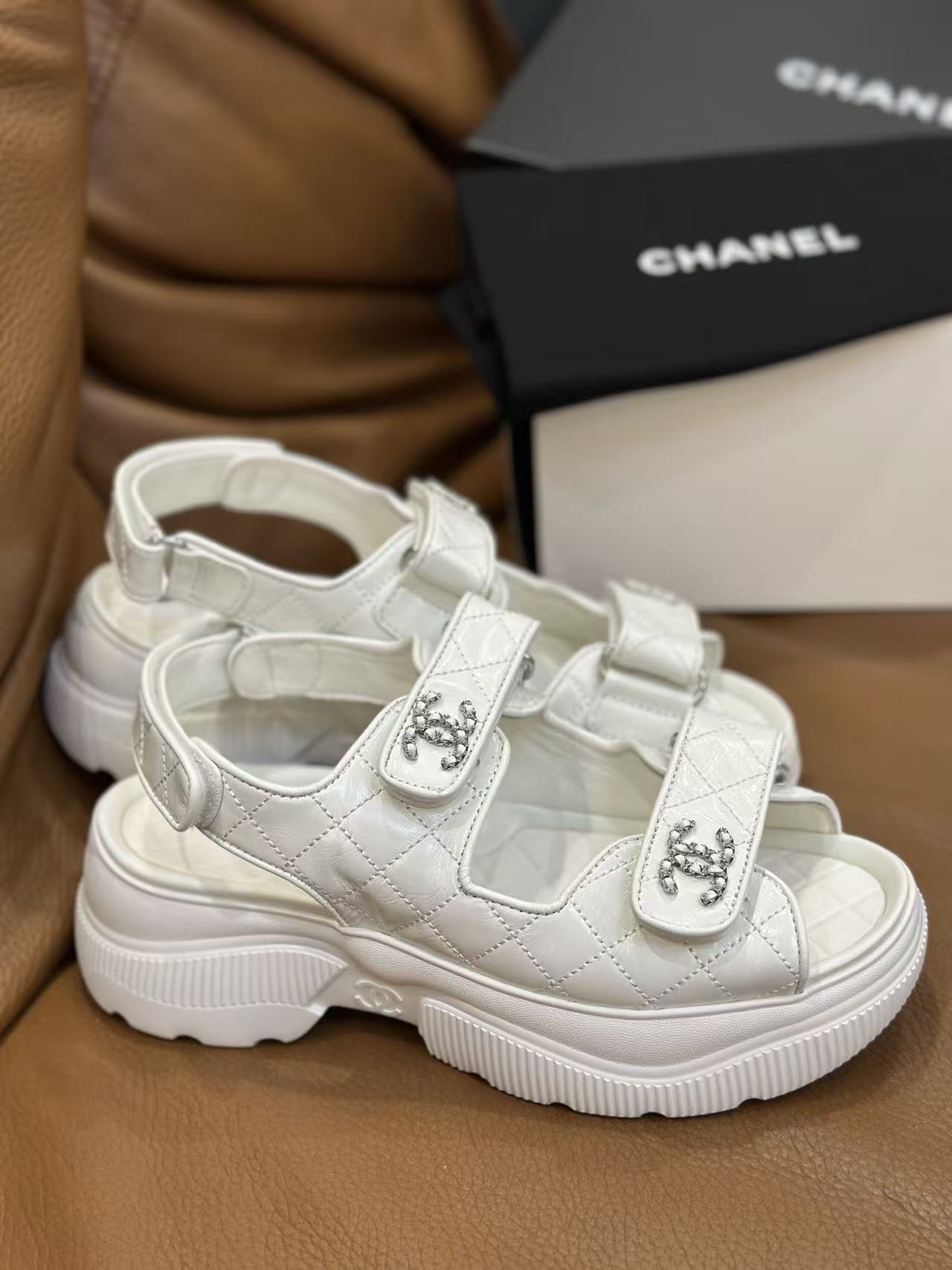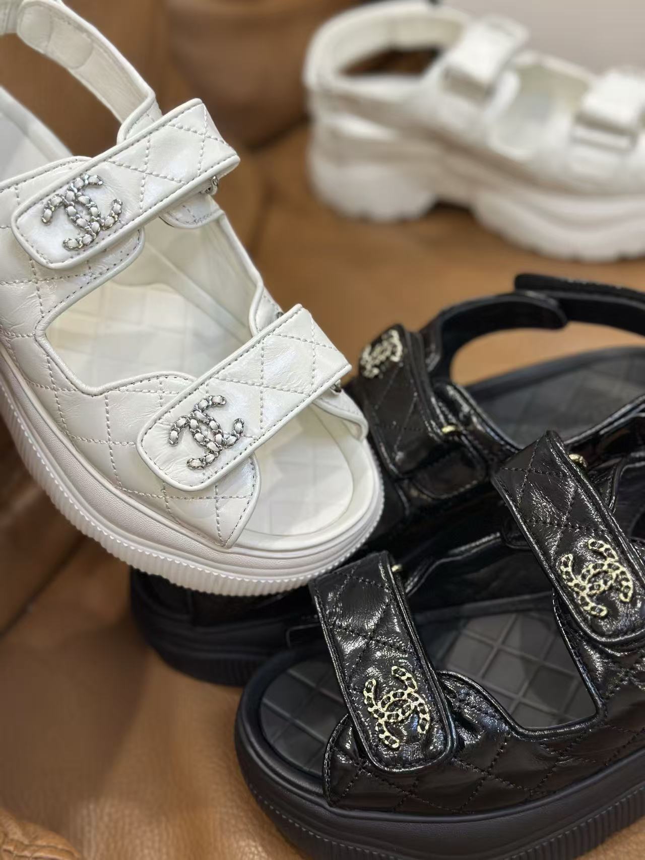 如何將休閒的人字或運動涼鞋結構轉化為精品層次,始終是品牌的拿手好戲。這款 新款魔鬼氈厚底涼鞋,集結了品牌最具辨識度的經典 Logo 元素,將率性與優雅平衡得恰到好處。