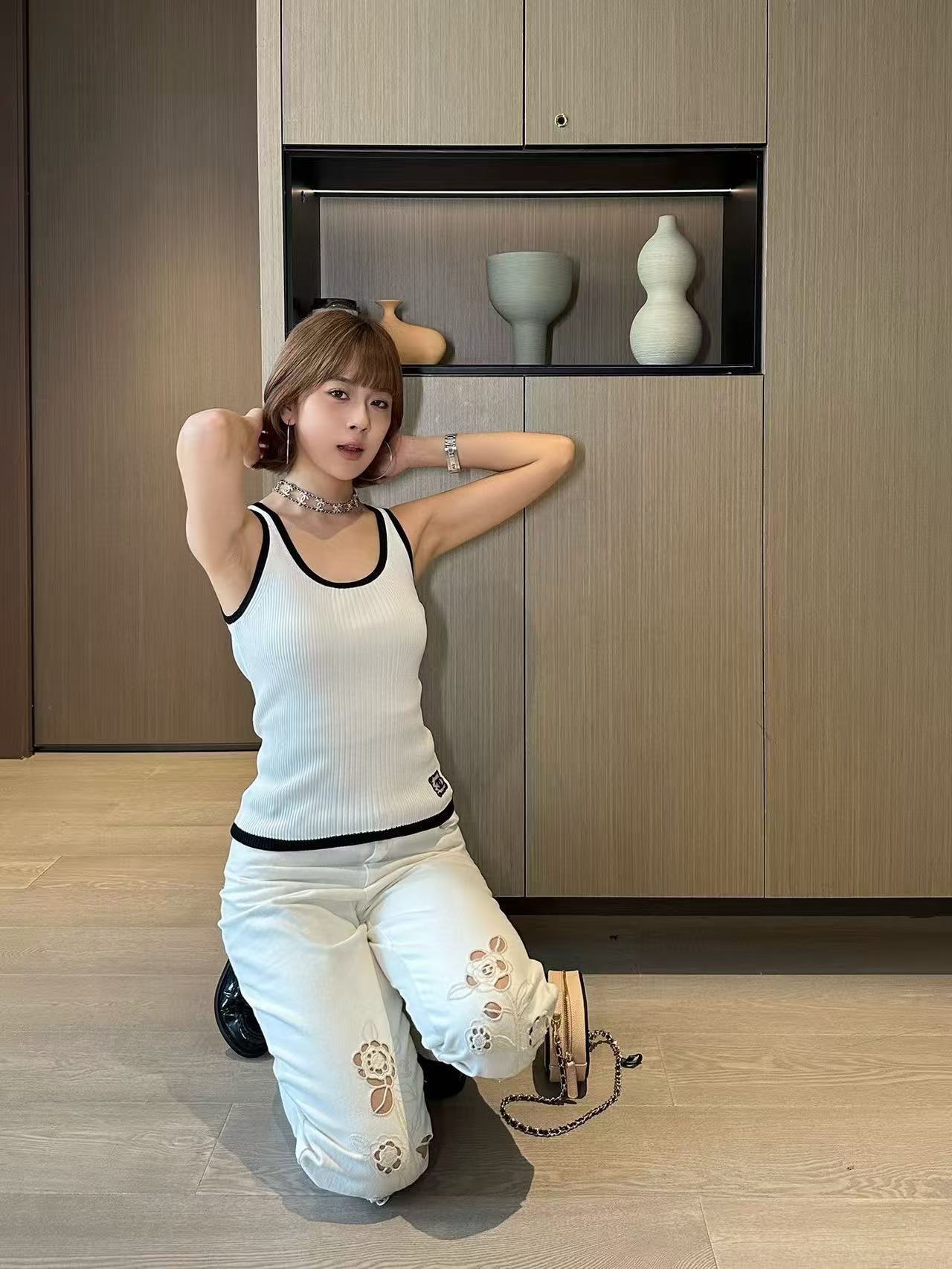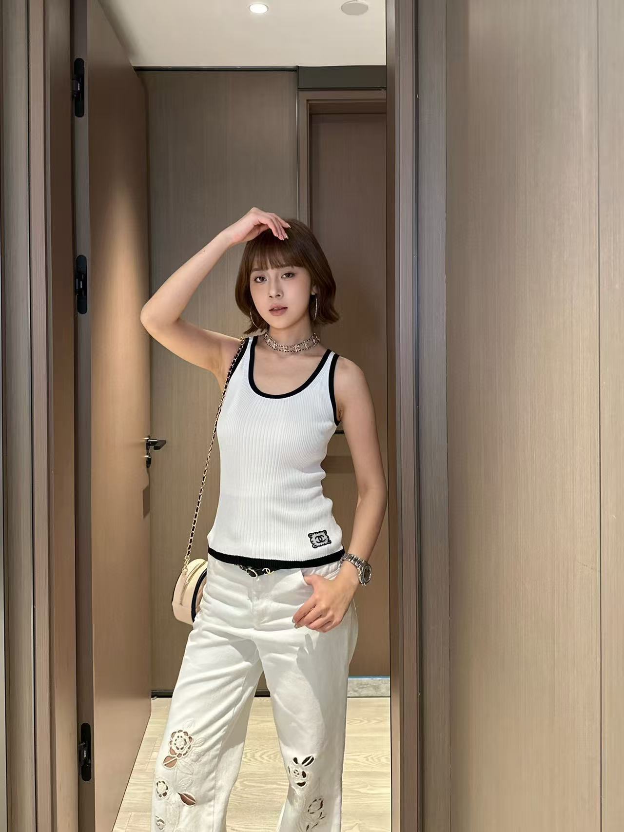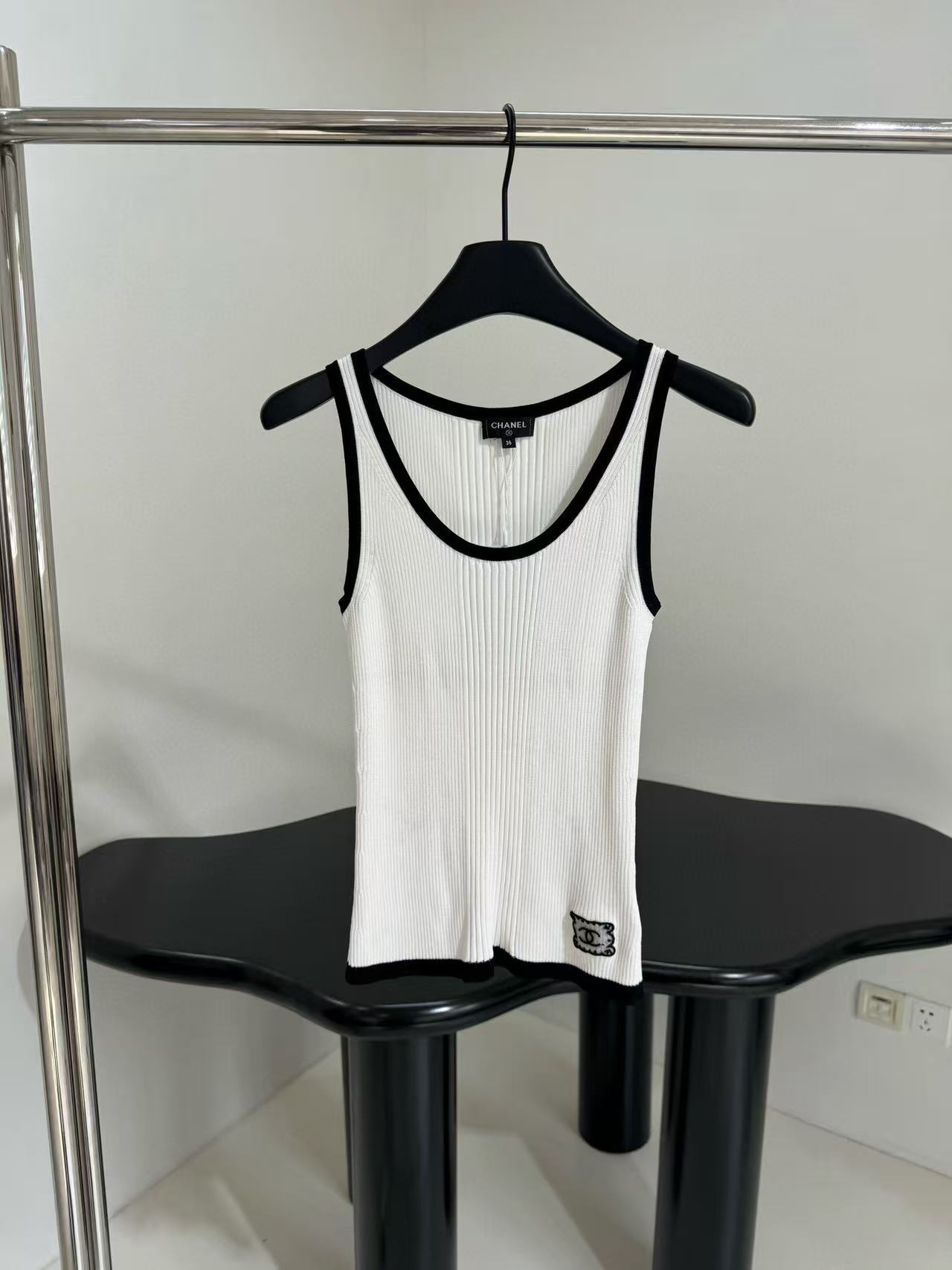 撞色飾邊:背心採用了經典的黑白撞色飾邊,這個設計不僅充滿了標誌性風格,也讓整件衣服看起來更加精緻、俐落。
