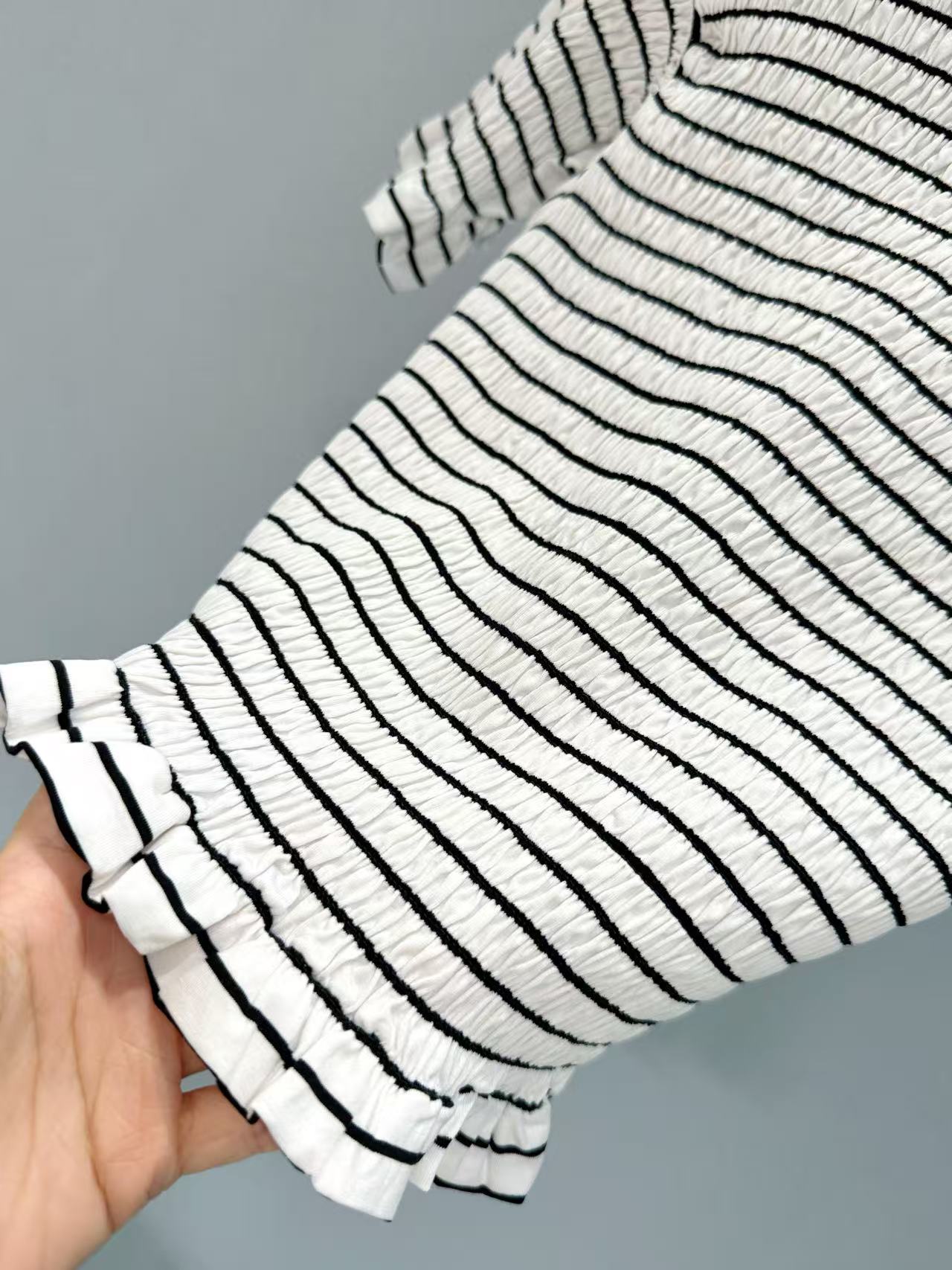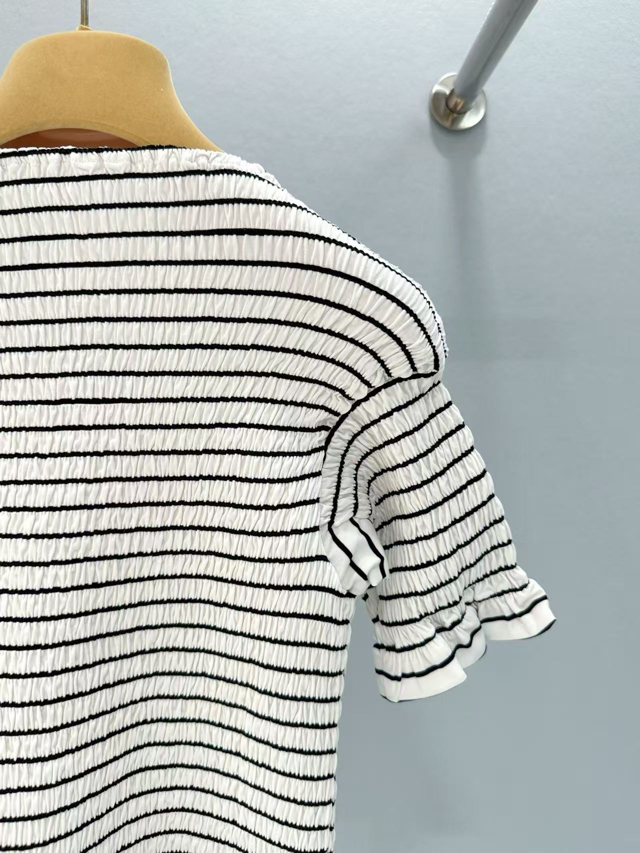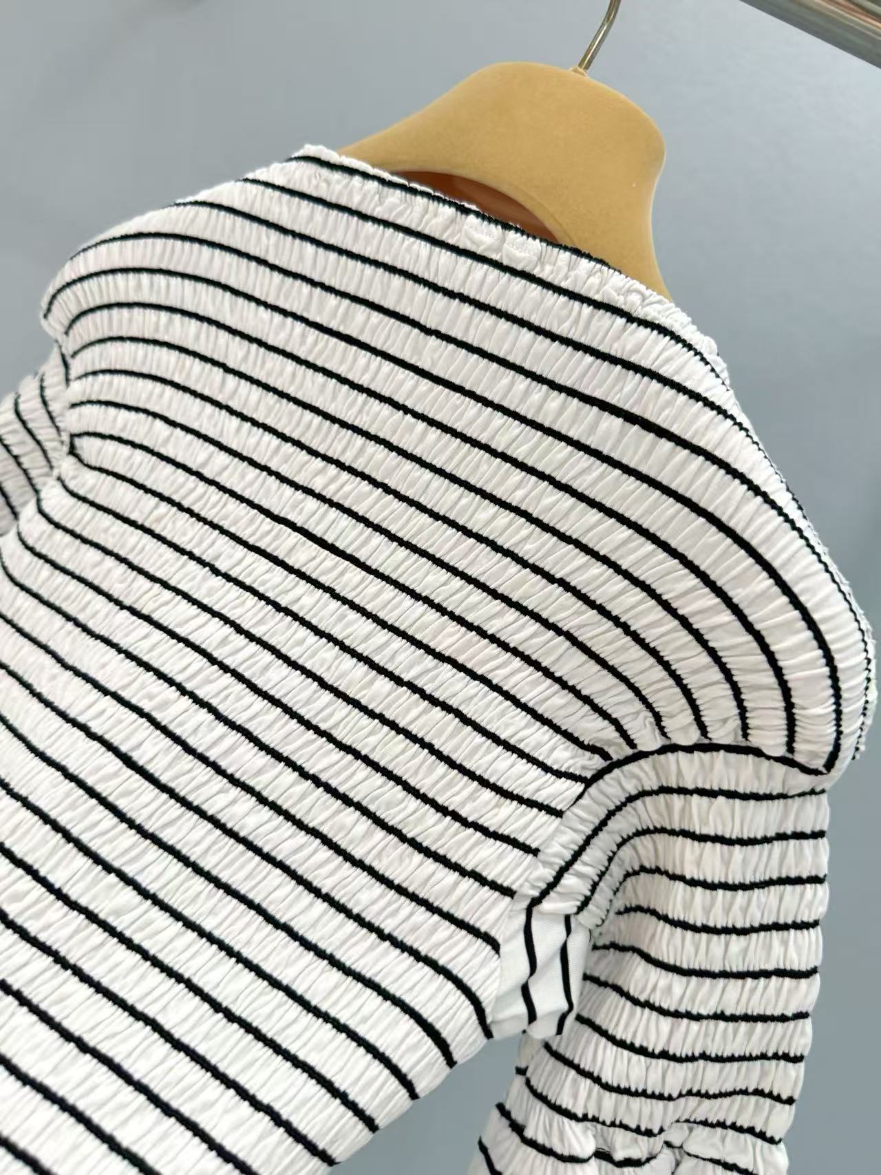 經典黑白條紋設計,帶來自在的松弛感,細膩的褶皺肌理藏著低調小心機,增添層次感。