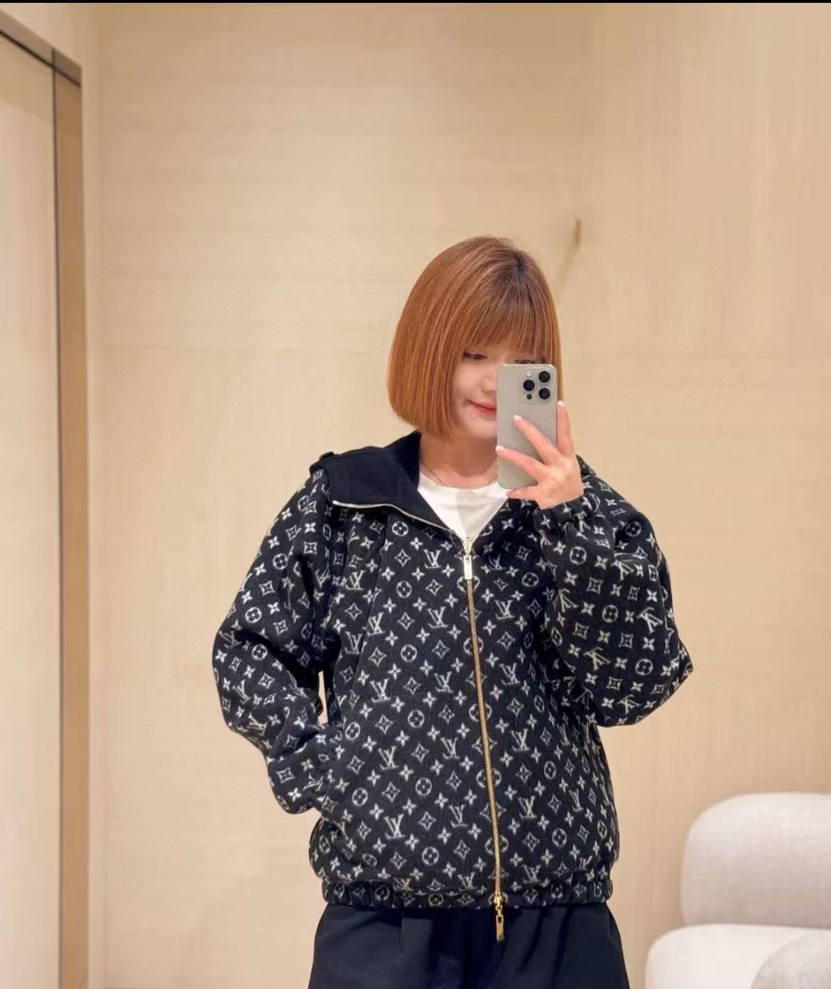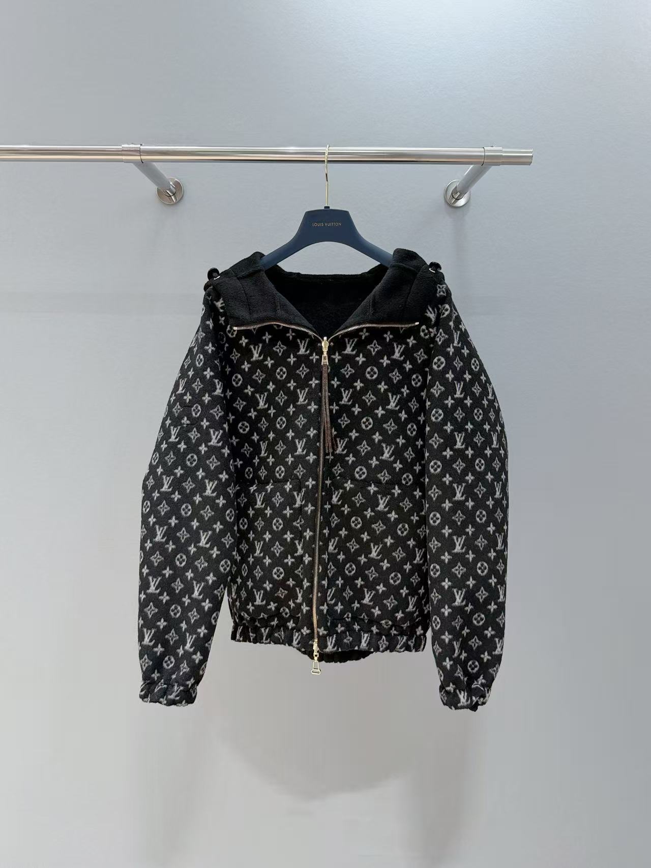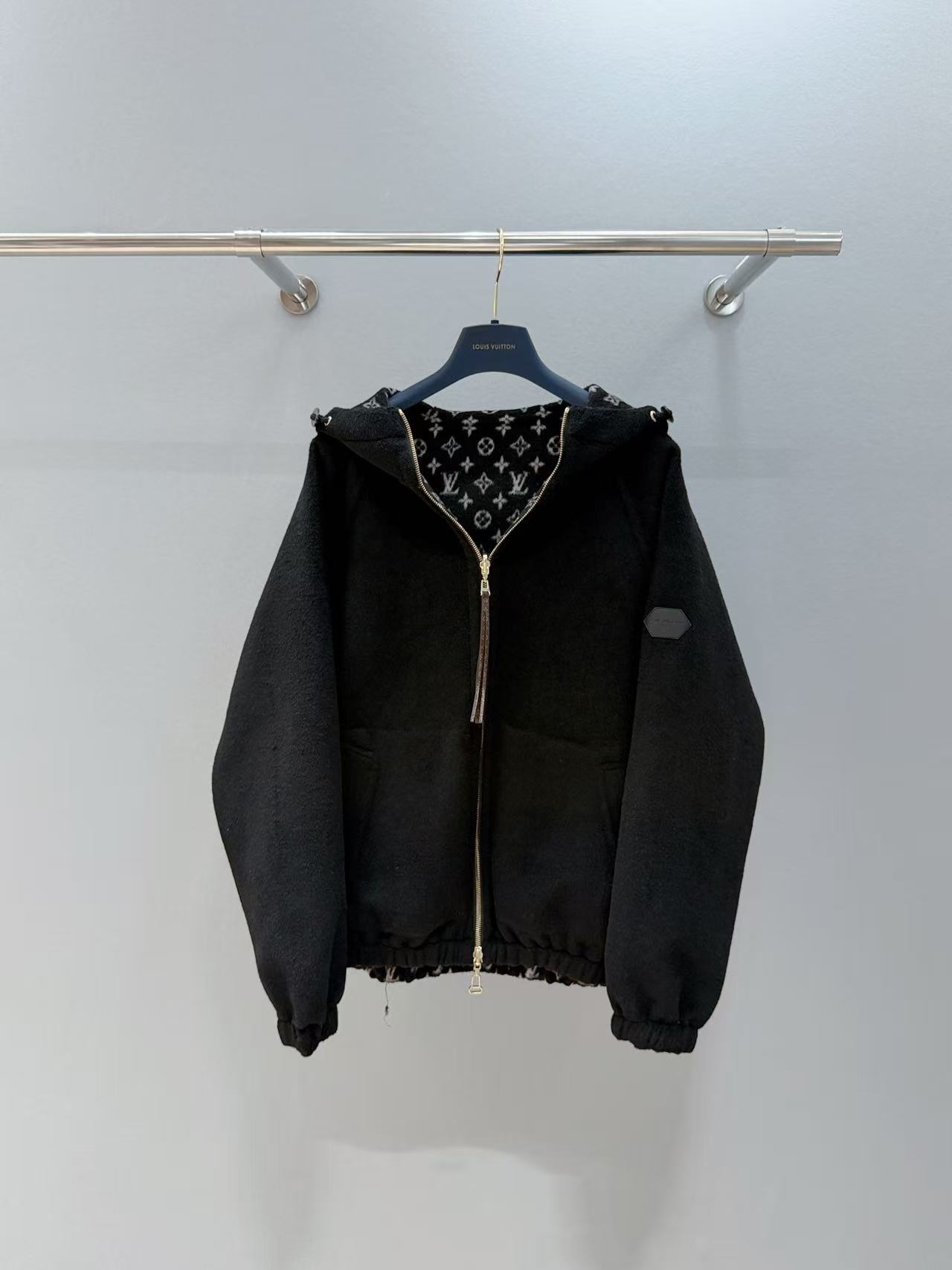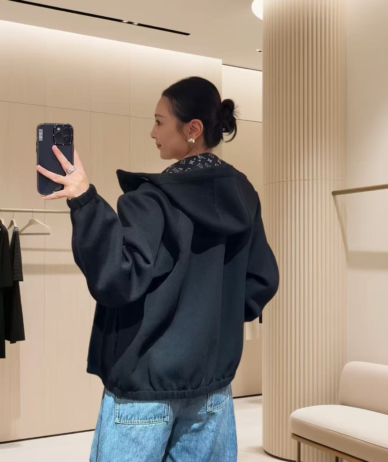 2025早秋 L家 黑色老花雙面呢大衣外套