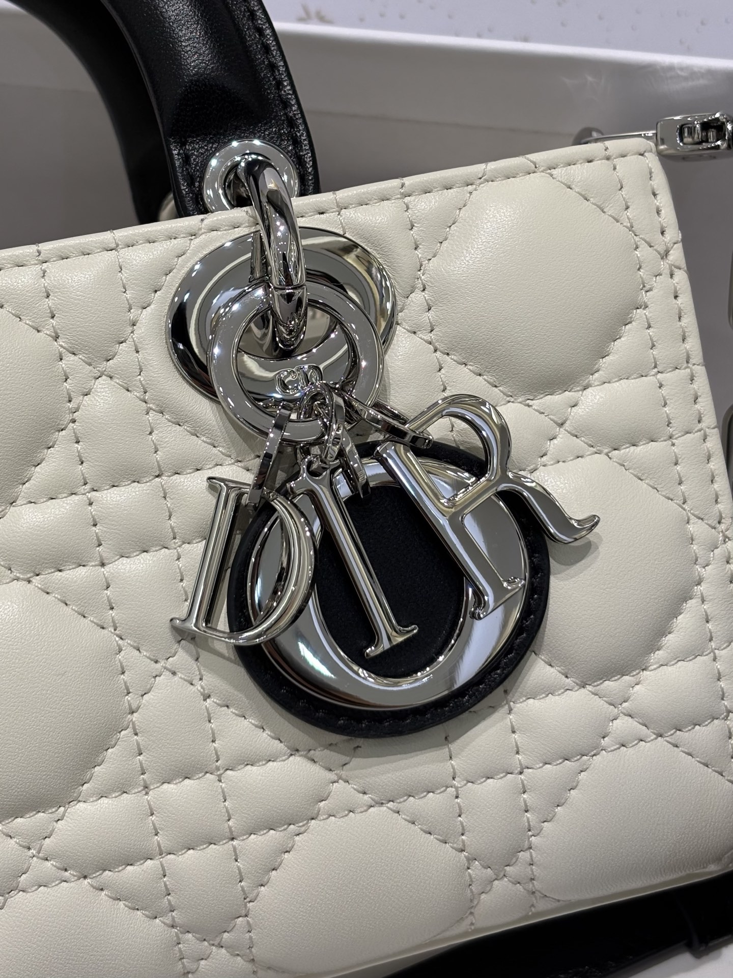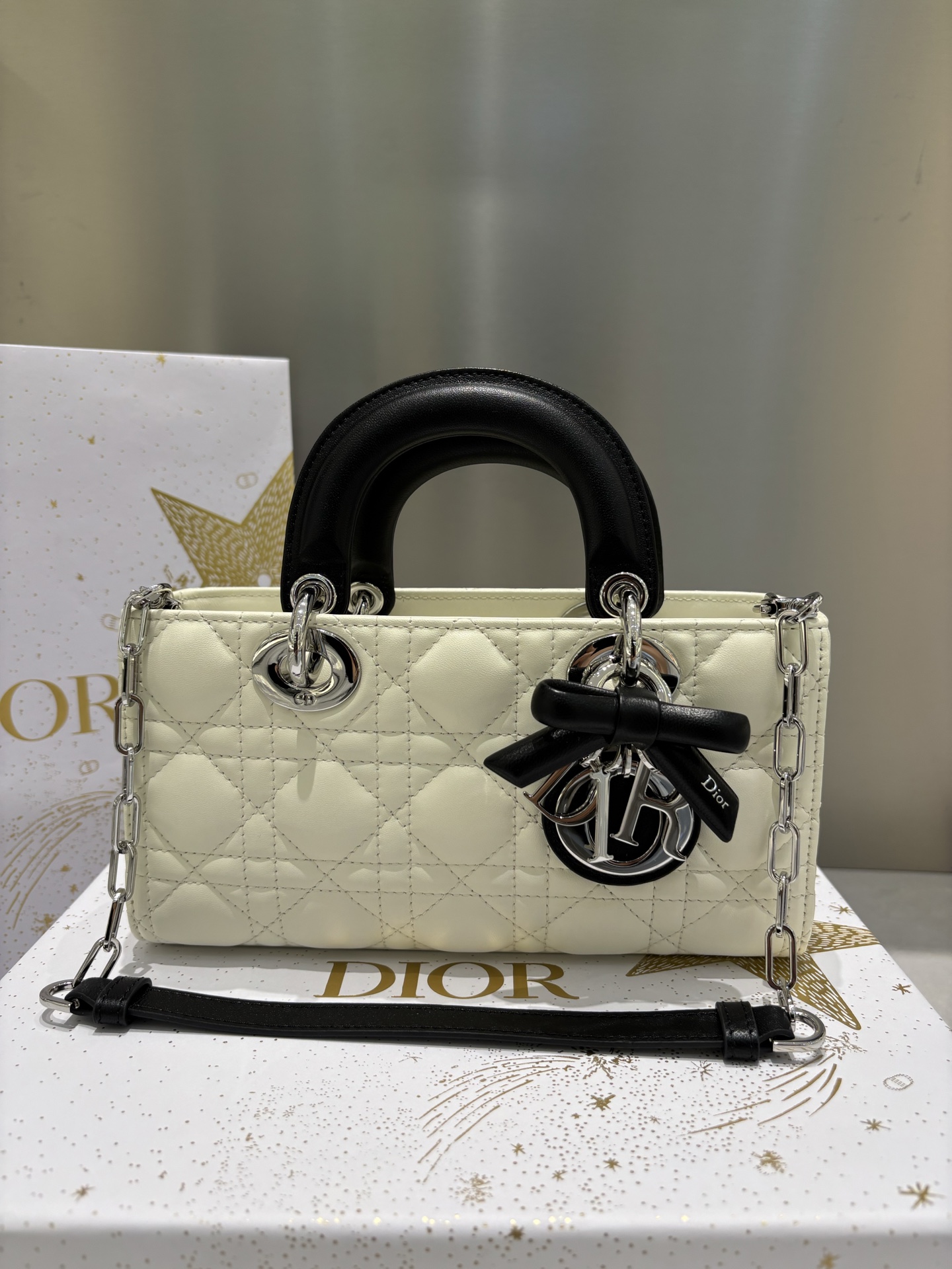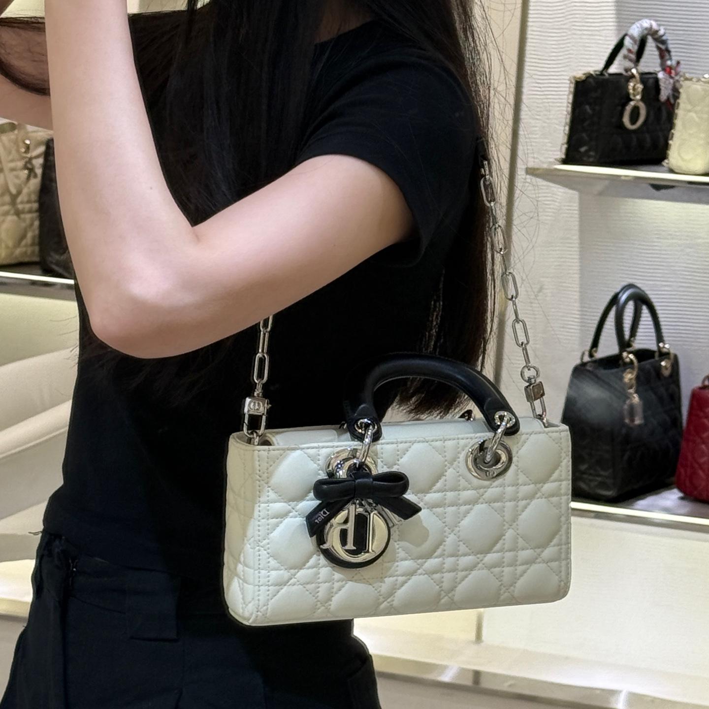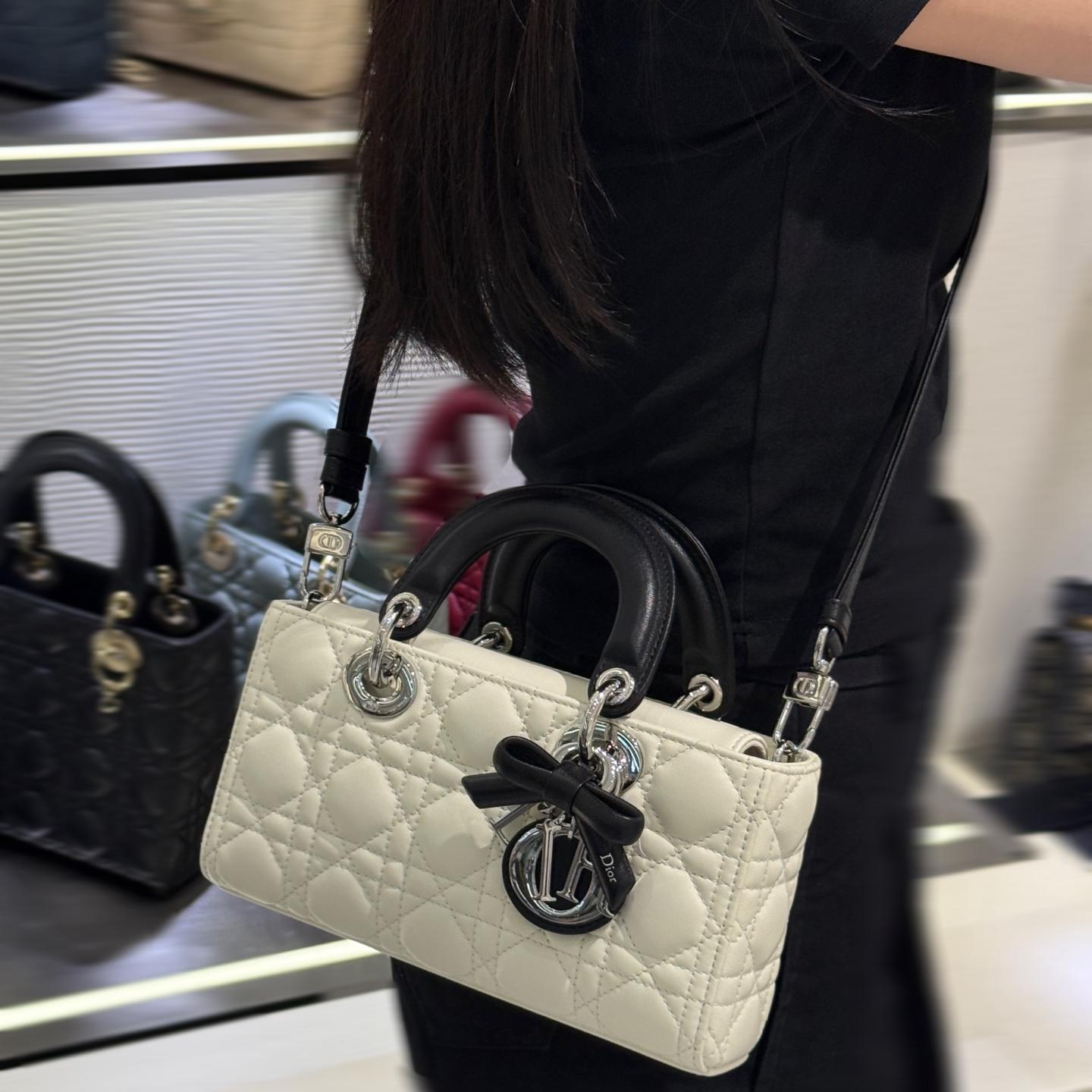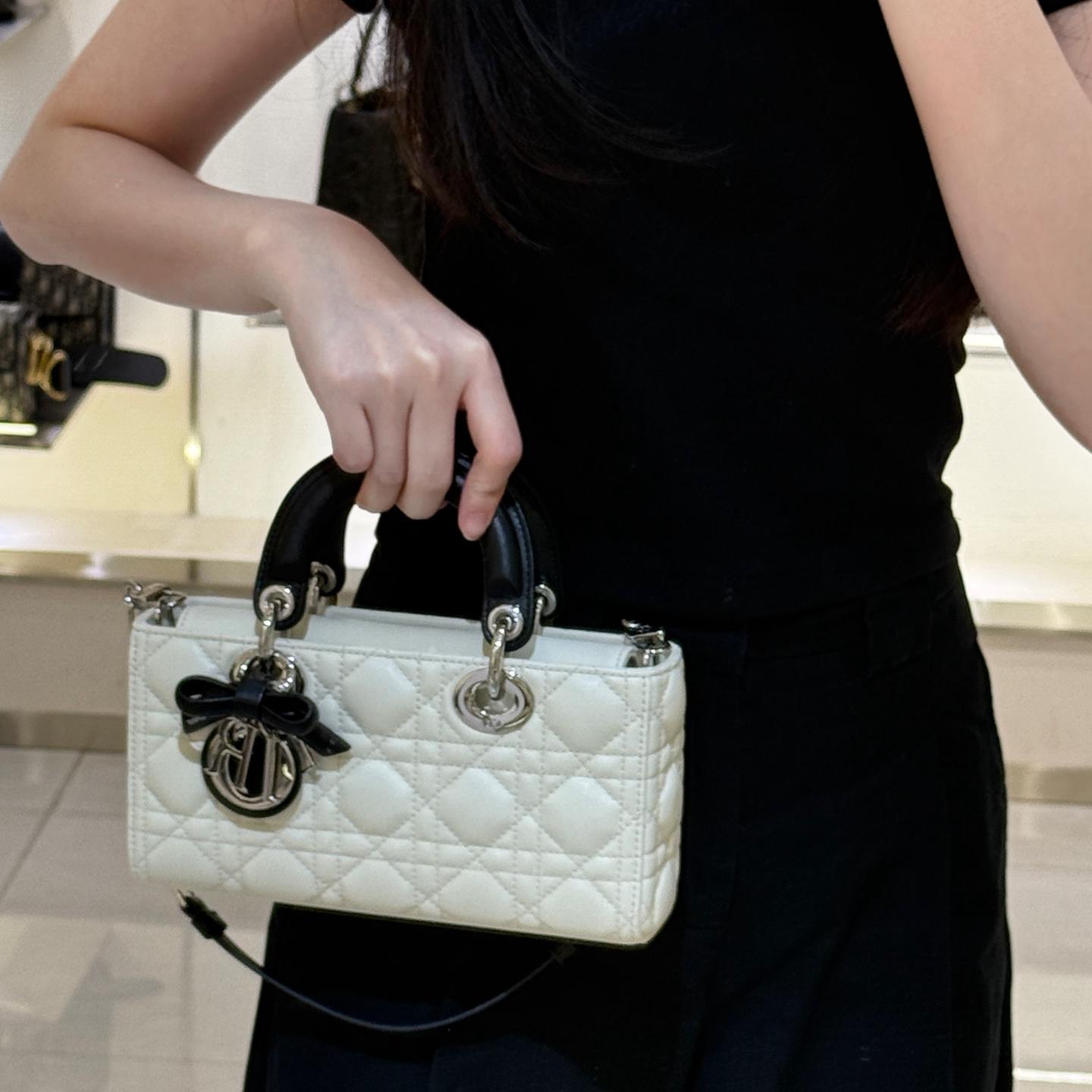 奶白拼色的D-joy小號包,這次推出更精緻的小尺寸,整體比例更俐落,也更有時髦感。