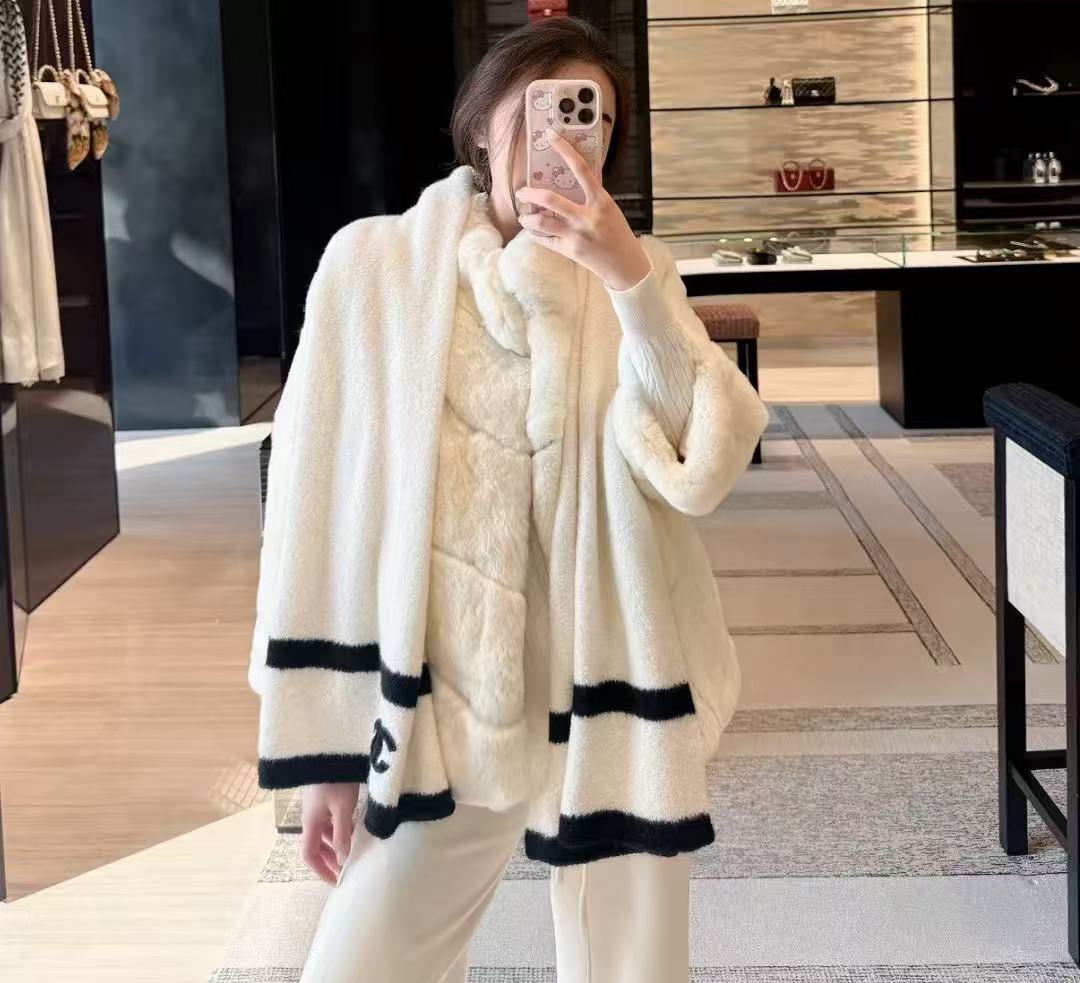 無論是隨意披掛於大衣外側展現俐落層次,或是作為室內披肩抵禦微涼空氣,其經典的幾何比例都能瞬間提升整體的穿搭氣場,完美詮釋了靜奢風的美學精髓。