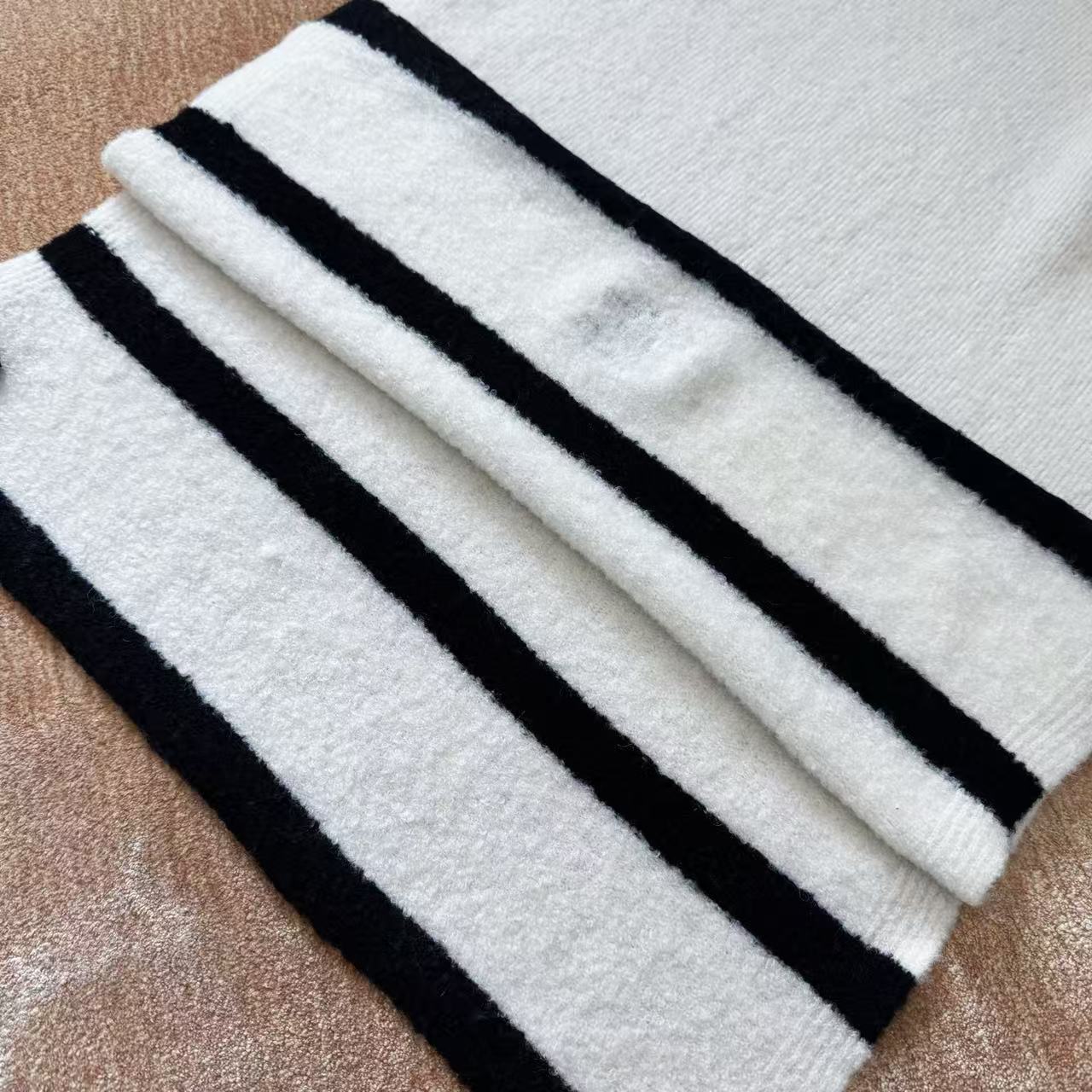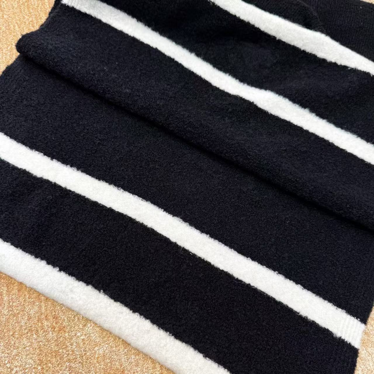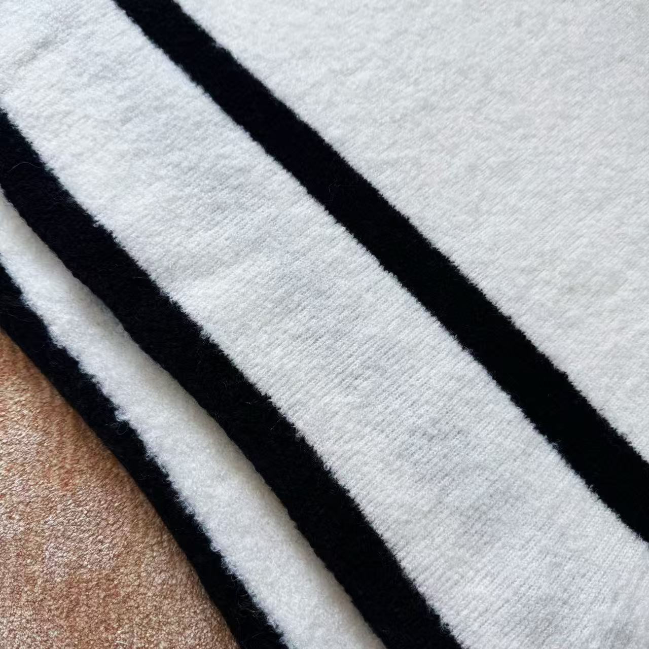 織就優雅的冬日序曲:26c 山羊絨黑白撞色條紋圍巾披肩