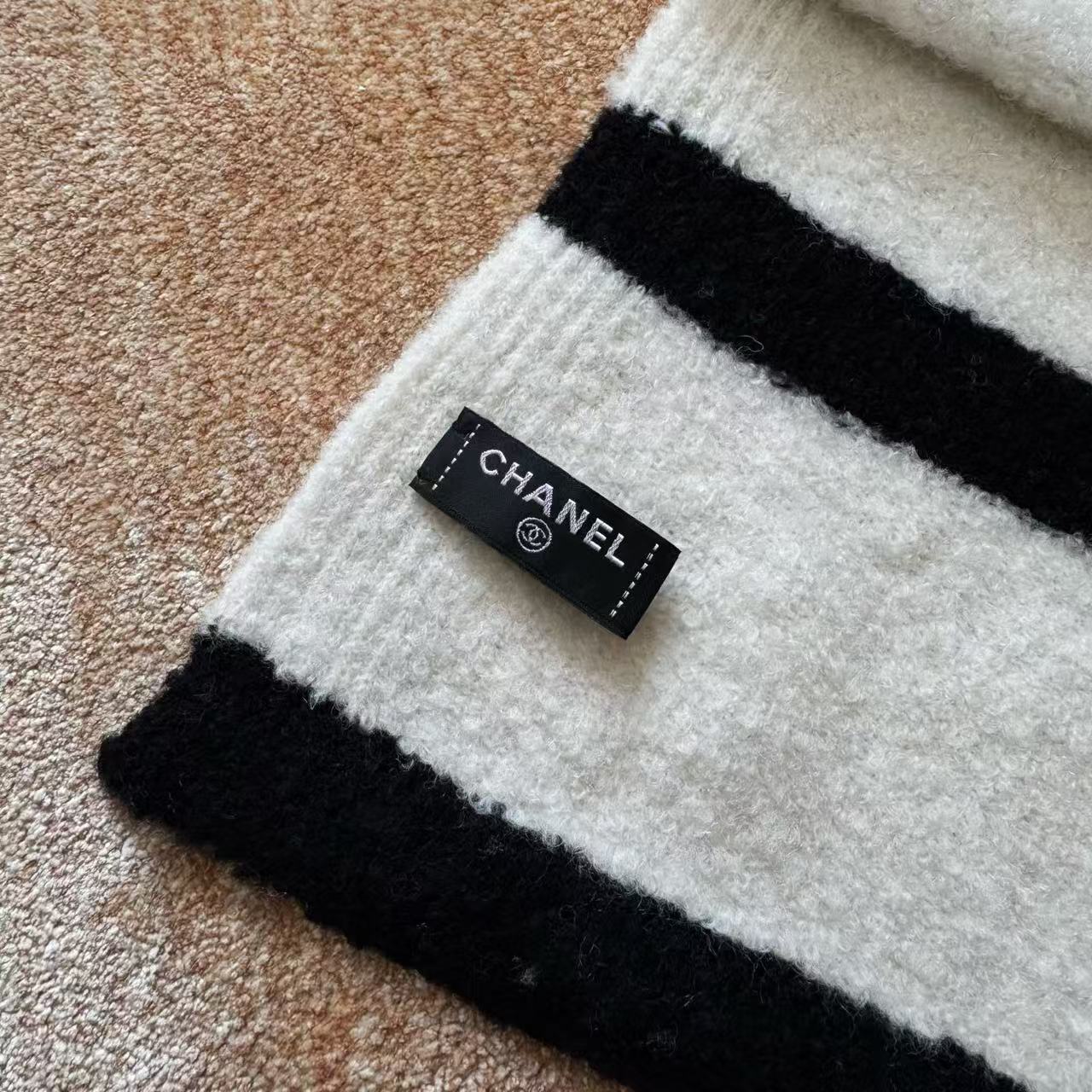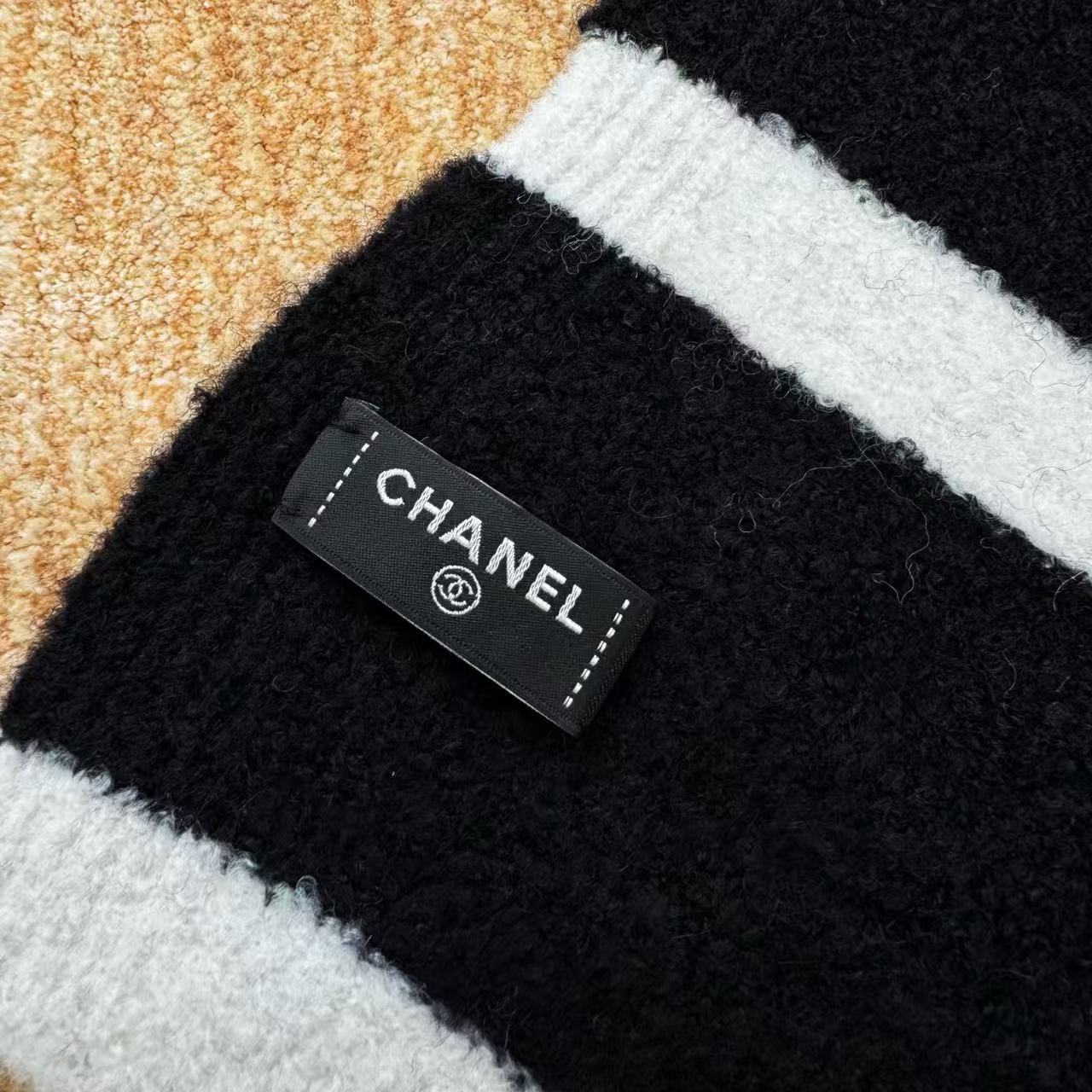 黑與白始終是不可撼動的經典圖騰。這款 26C 早春系列的山羊絨圍巾,將洗鍊的黑白撞色條紋與品牌標誌性的雙 C Logo 完美揉合,展現出不費力的法式高級感。