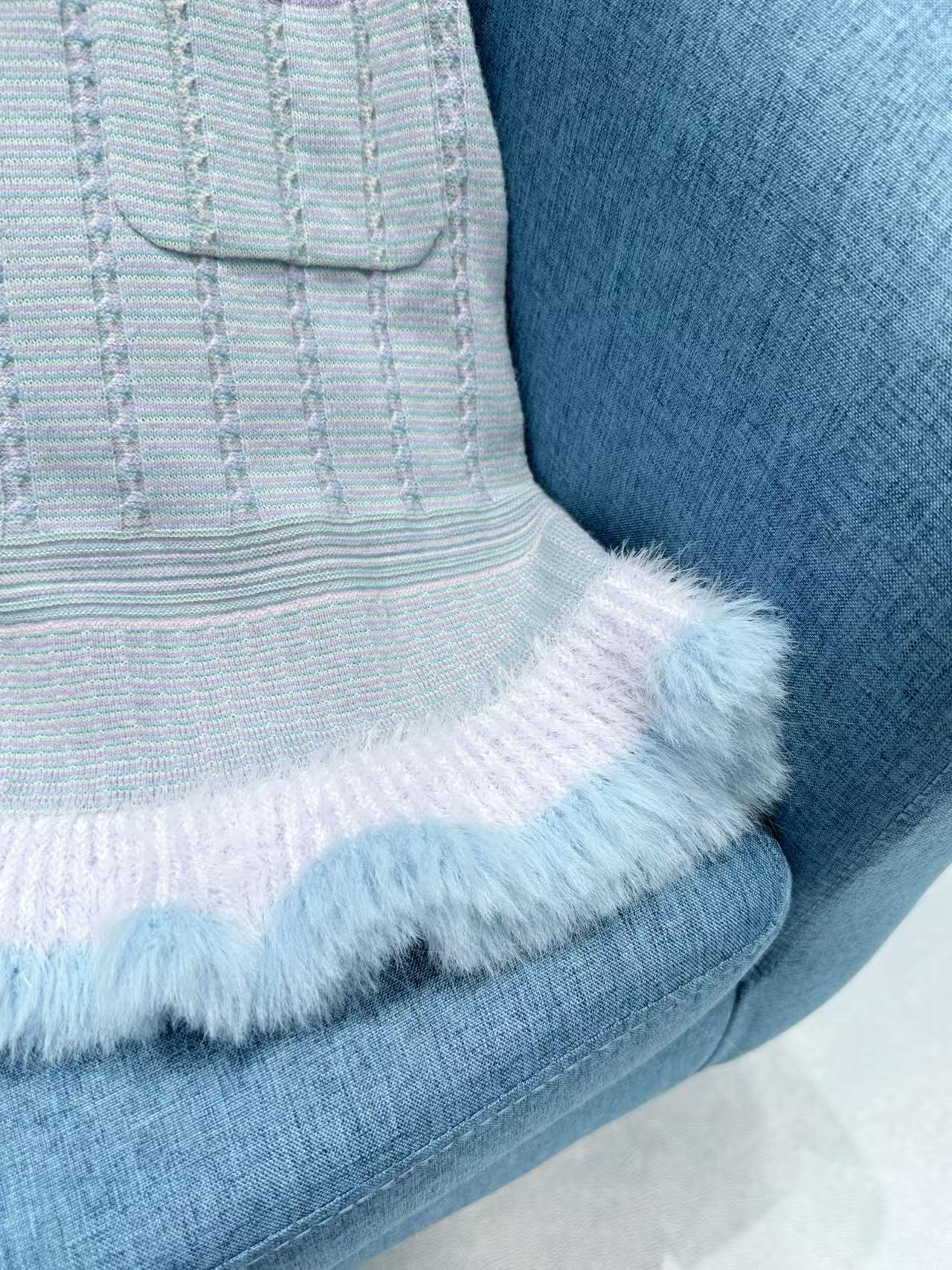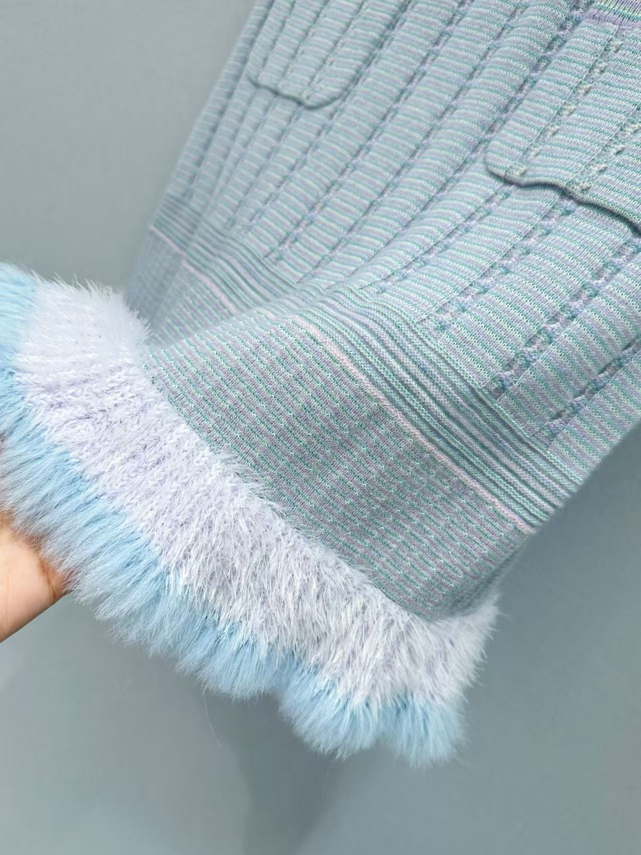 這件開衫採用柔美藍色,搭配重工喇叭荷葉袖,輕盈靈動,增添浪漫優雅氣息。拼毛奶元素讓整體更有層次與精緻感,顯瘦不挑身形。隨手一穿,就能輕鬆打造溫柔時髦Look,秋冬單穿或內搭都超出彩!