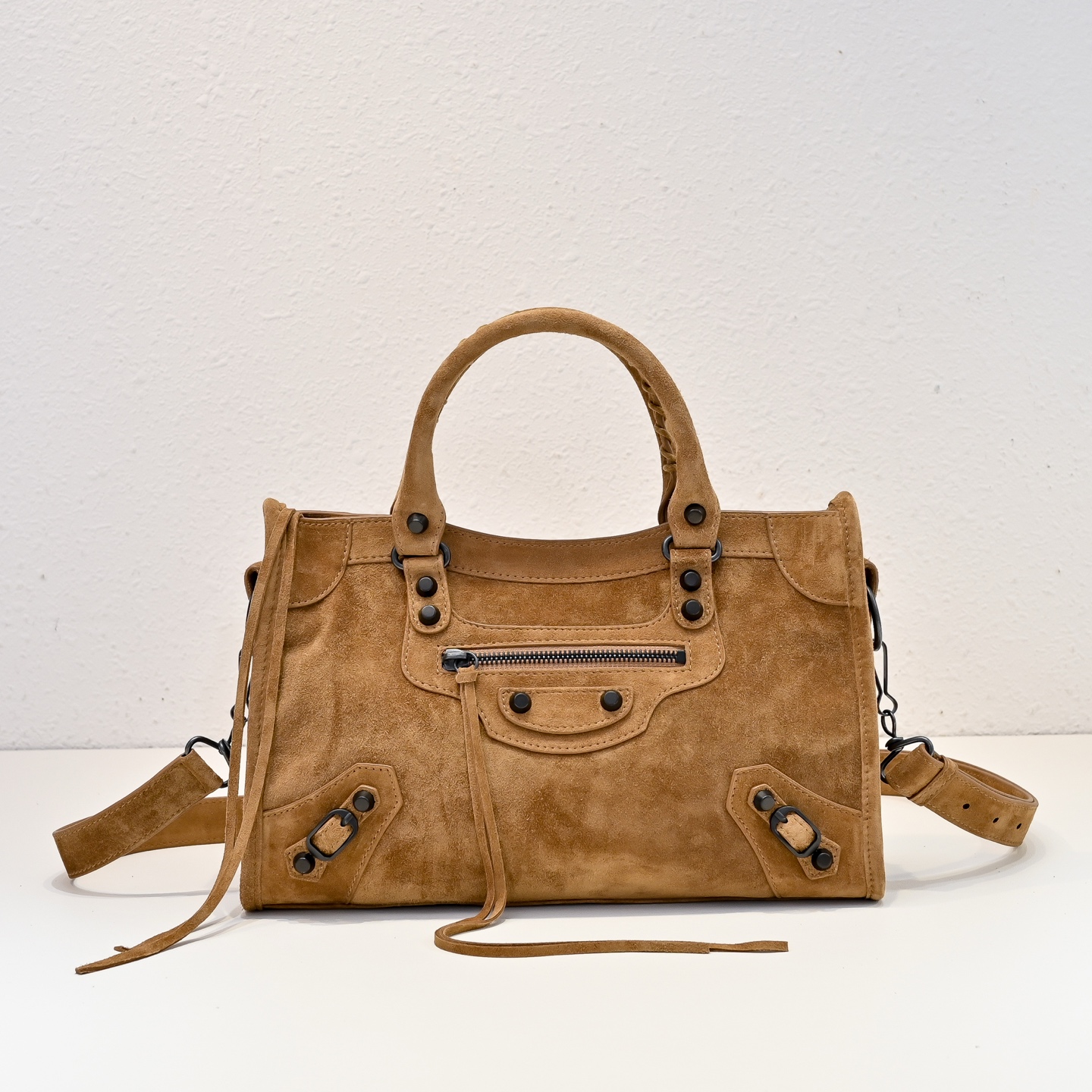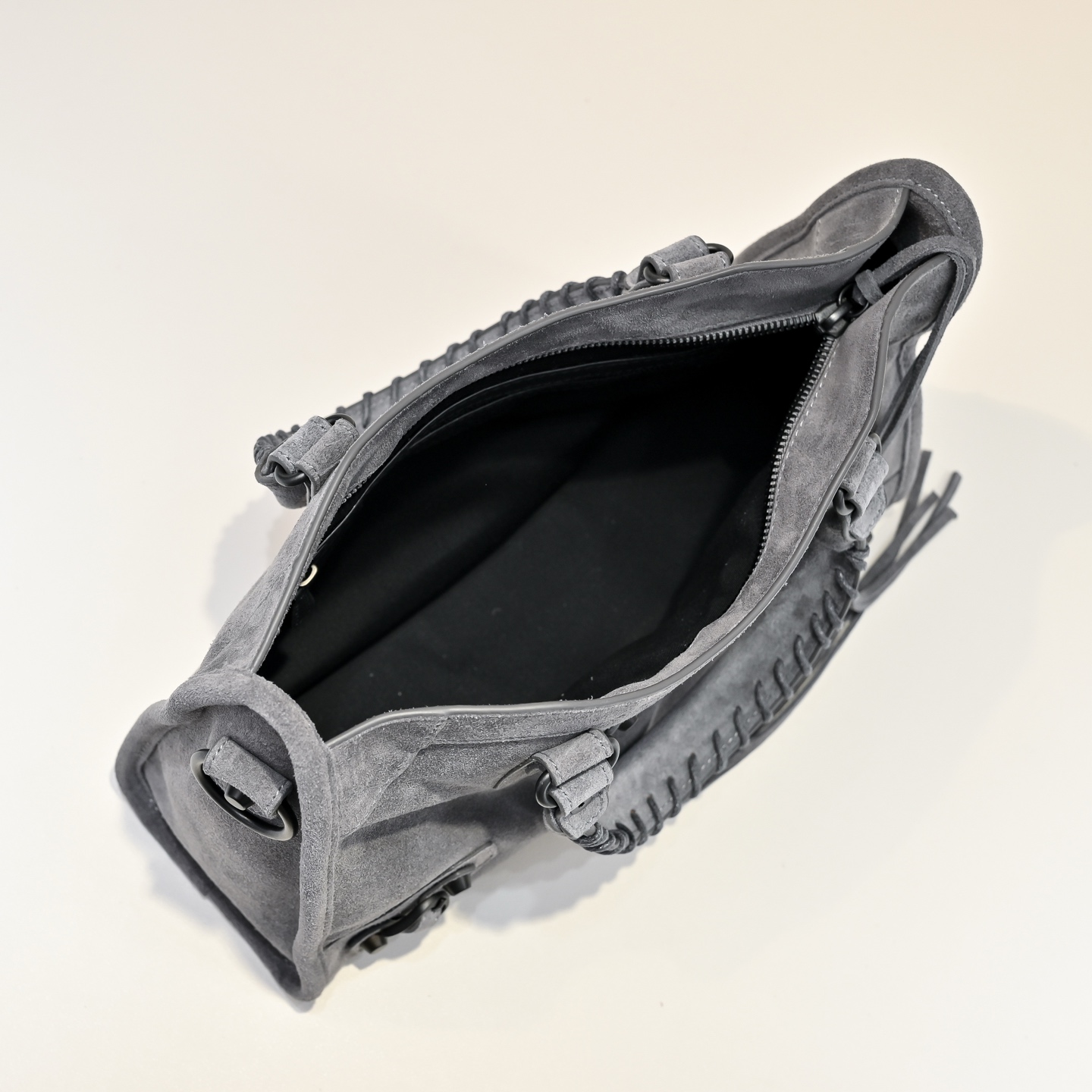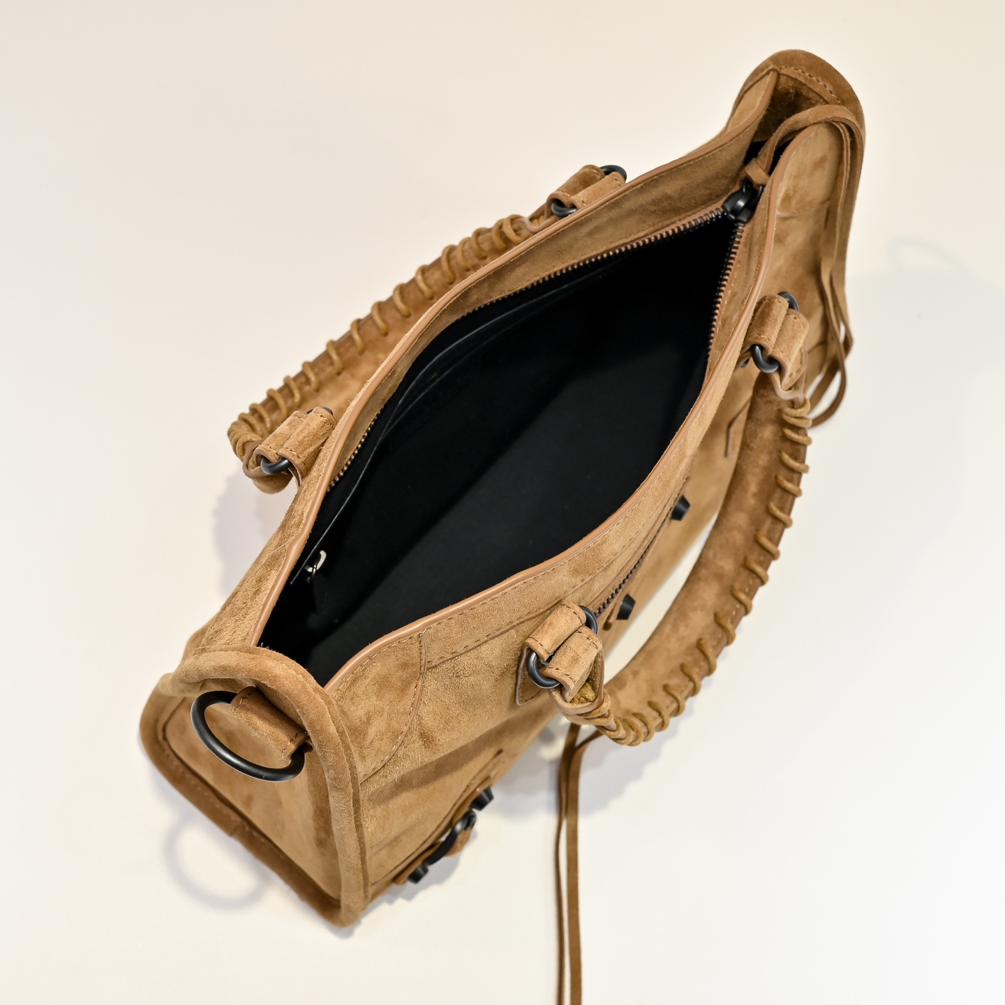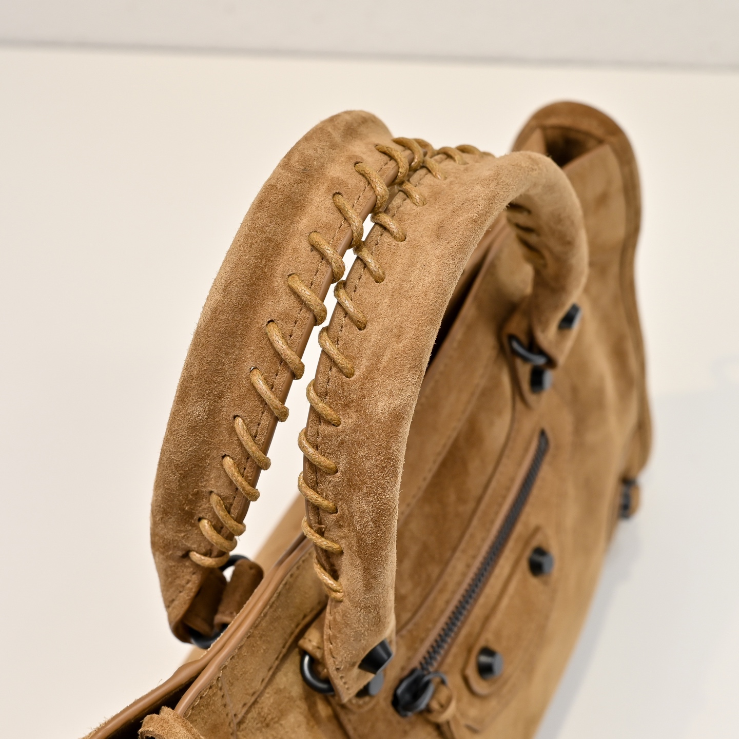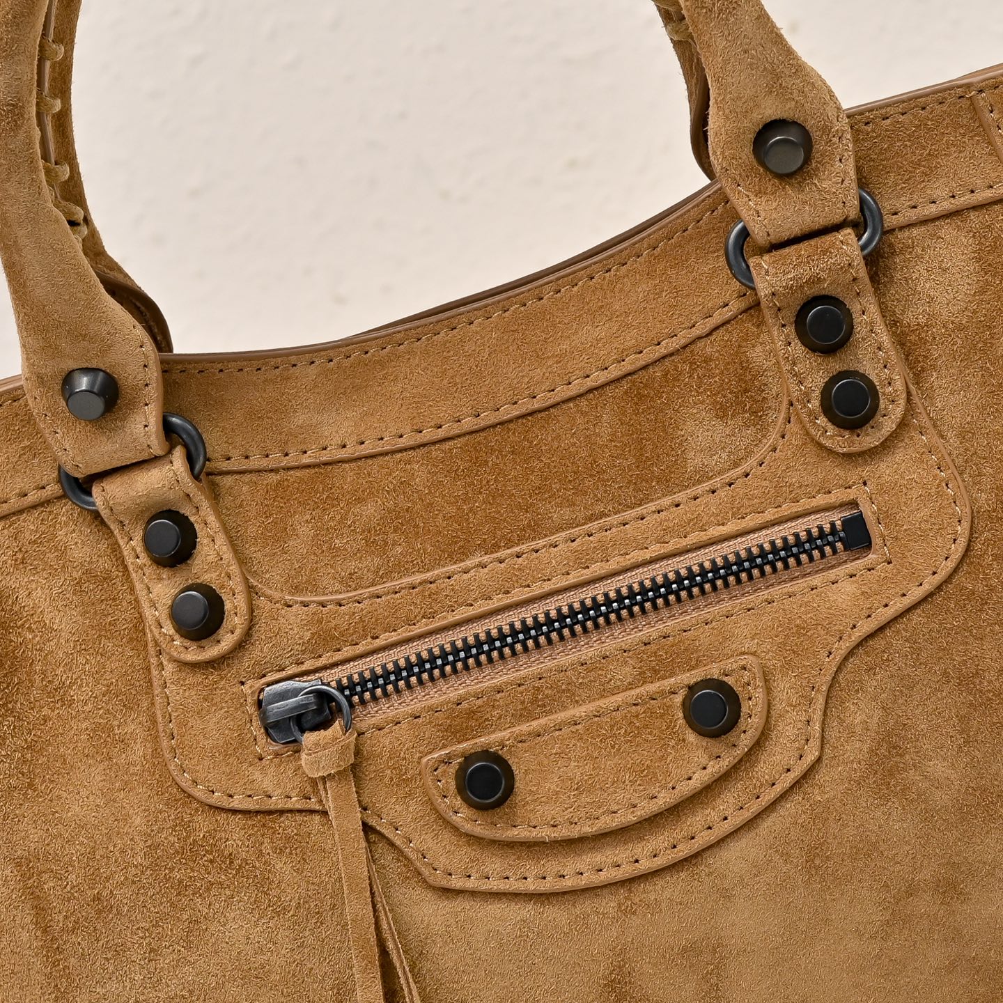 選用高級進口麂皮,手感細膩柔軟,質感高級。麂皮的表面帶有自然霧面光澤,讓整體包型更顯復古氛圍,同時也保有Blcg一貫的酷帥感。