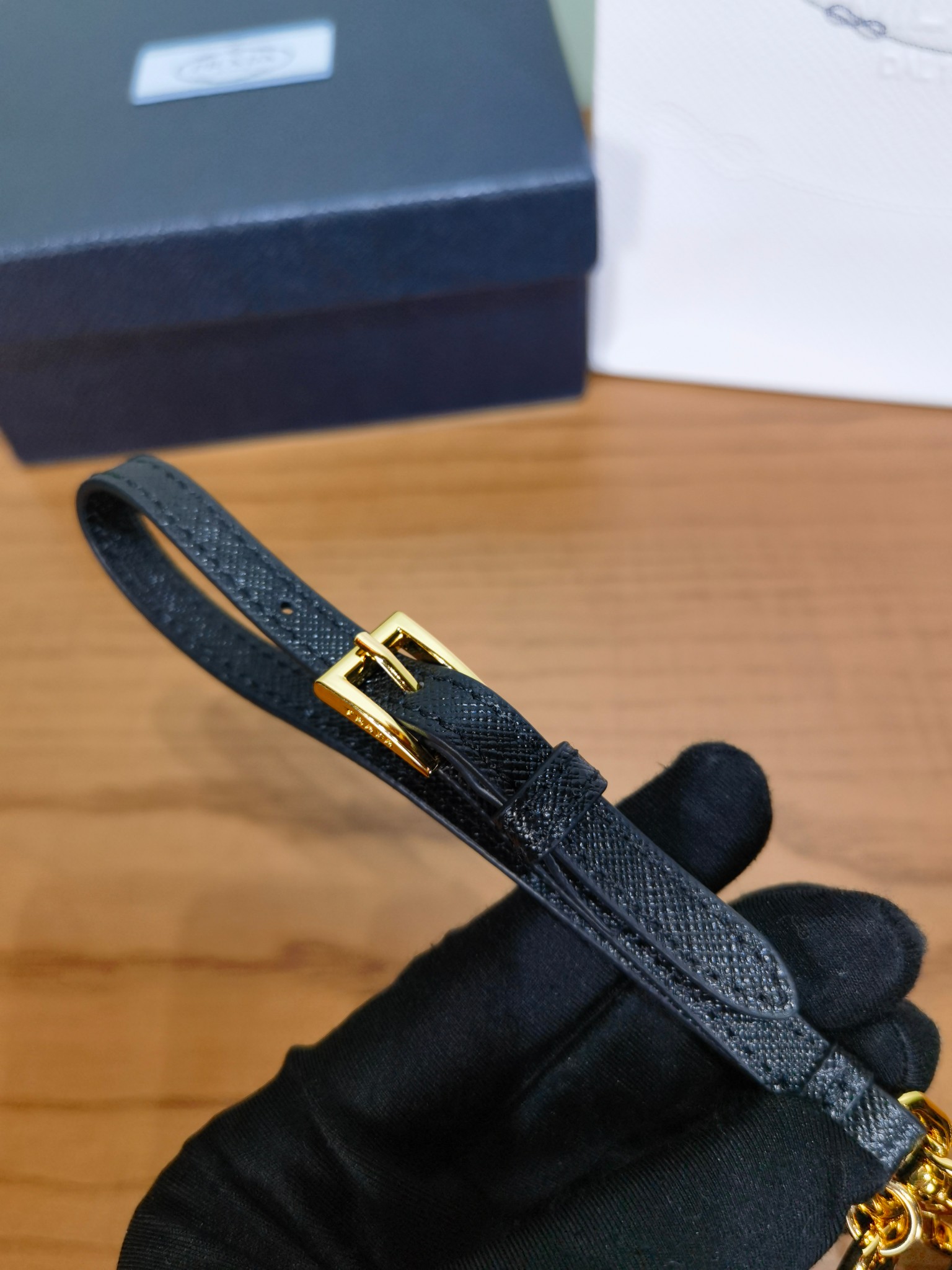 正面點綴琺瑯三角金屬徽標,辨識度高,同時也讓整體更顯精緻。搭配皮質腕帶與金色五金細節,小小一顆卻有滿滿高級感,無論是日常使用還是搭配包包,都能輕鬆融入各種風格。