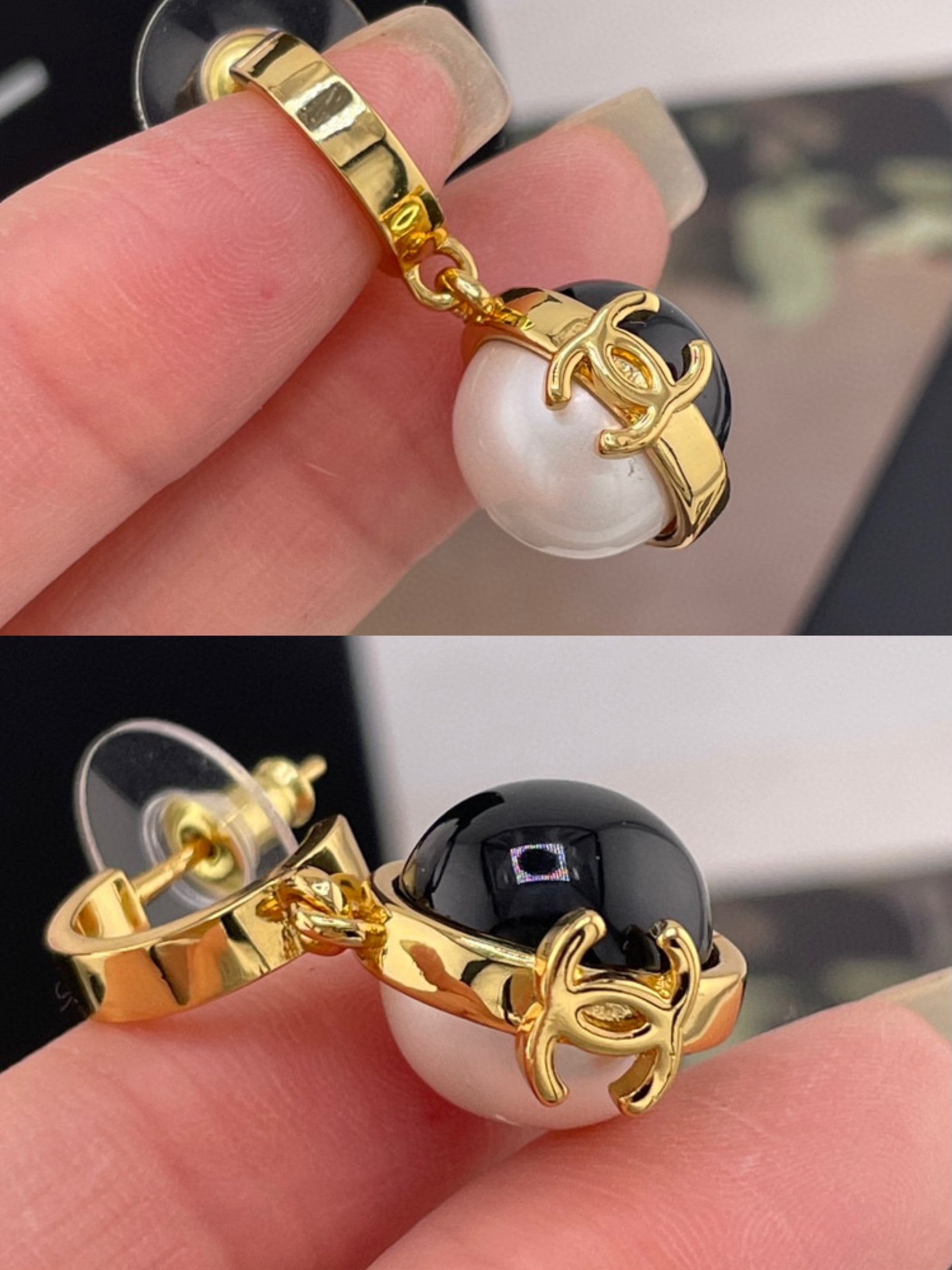 2026早春新品 C家 黑白球金鉤耳環
