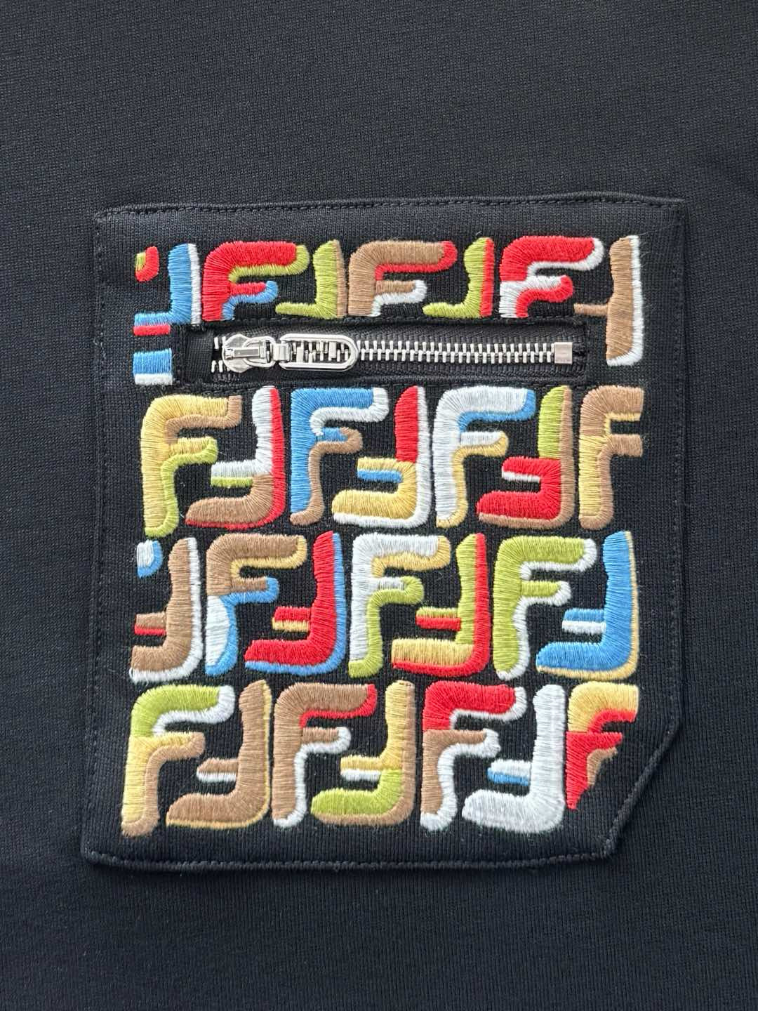 • 前幅FF拼色刺繡搭配拉鍊口袋設計,兼具功能性與時尚感。