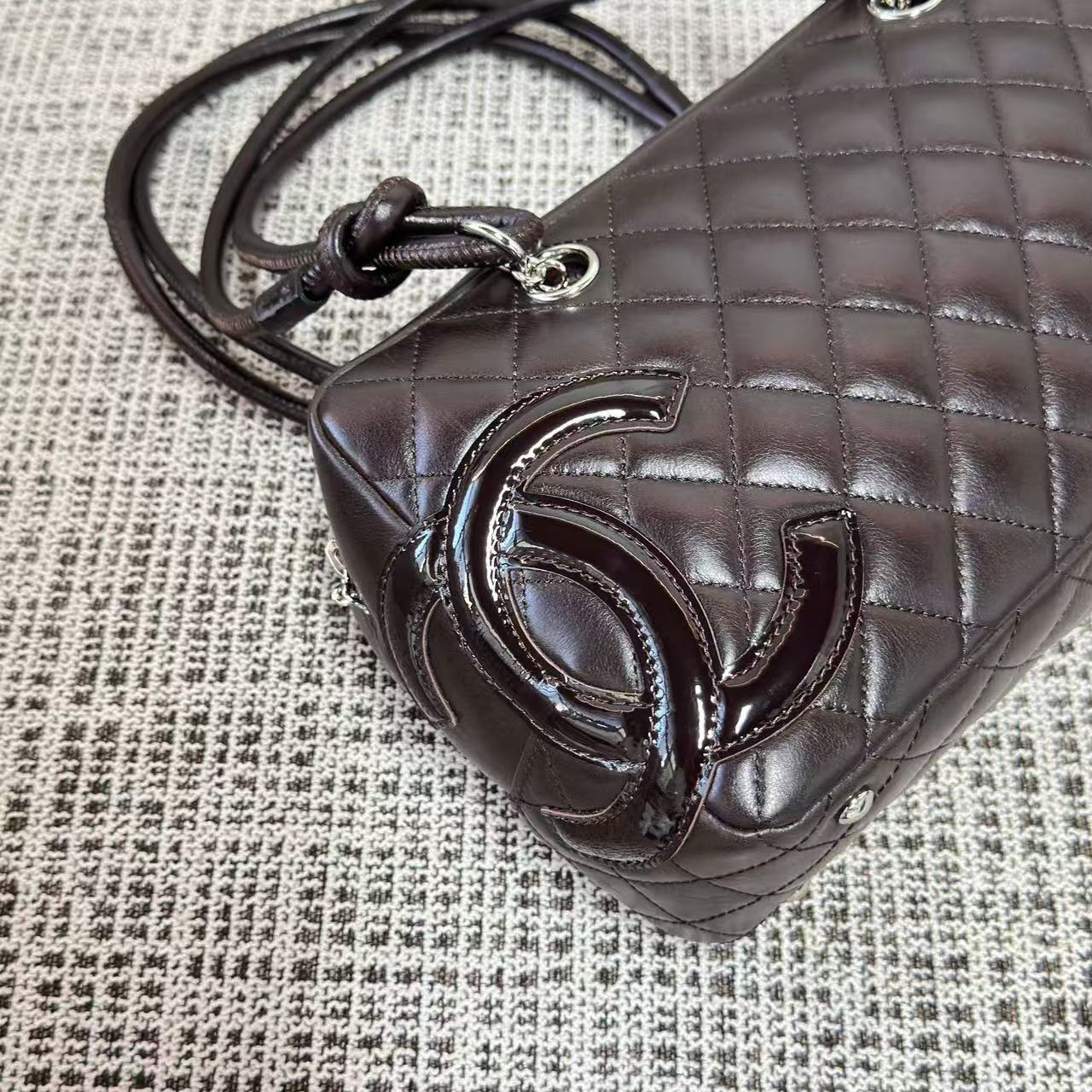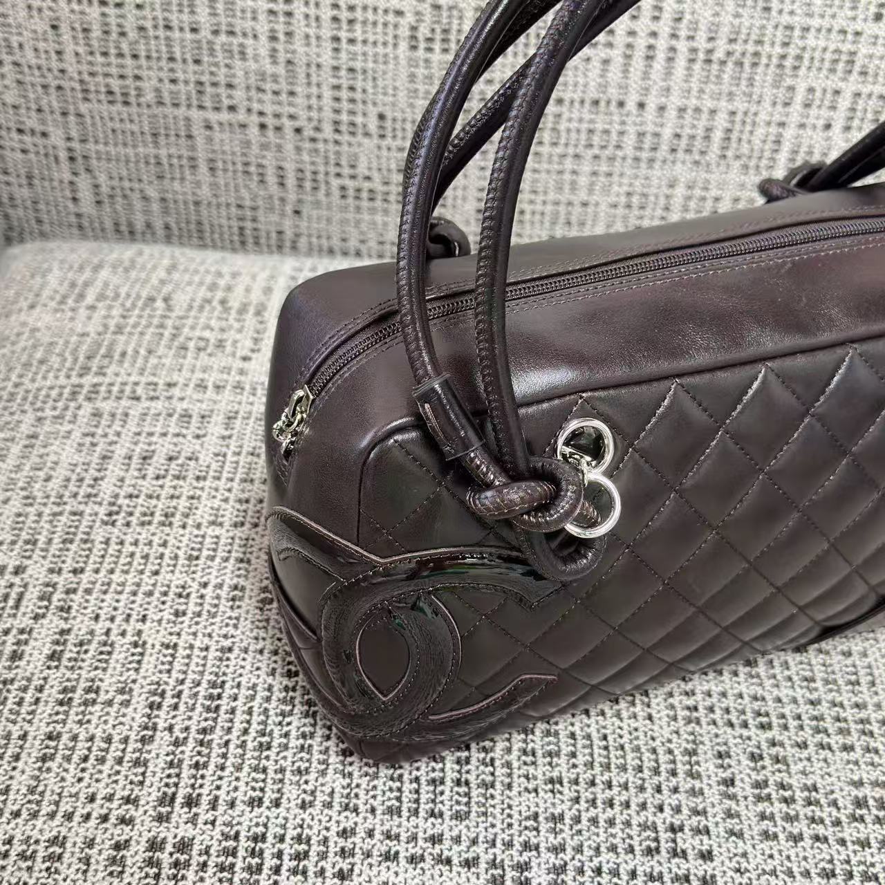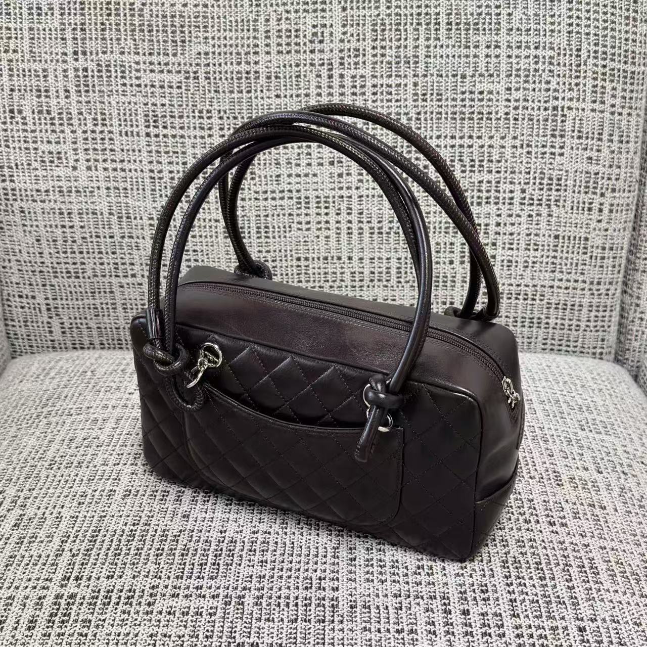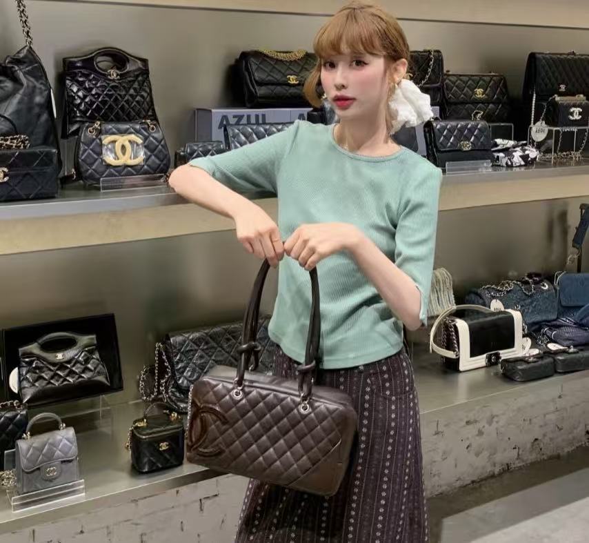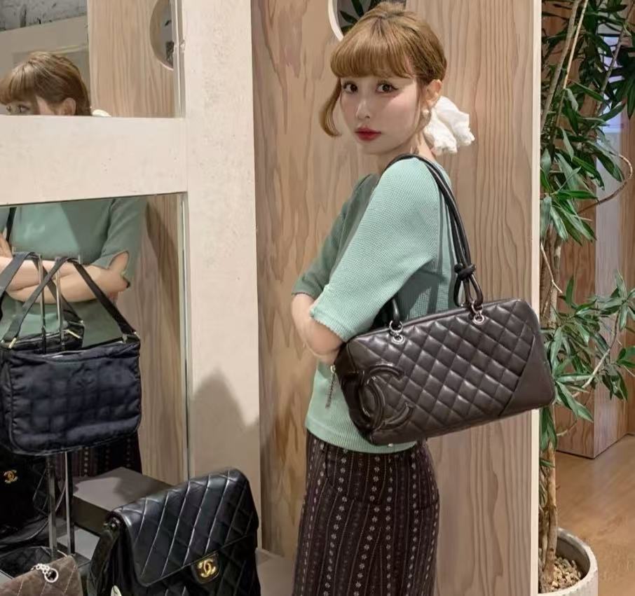 「康朋系列(Cambon Line)」絕對是 2000 年代初期最令人難忘的高光符號。這次分享的 Vintage 康朋保齡球枕頭包,將品牌指標性的斜紋絎縫與側面誇張的雙 C 標誌完美融合。