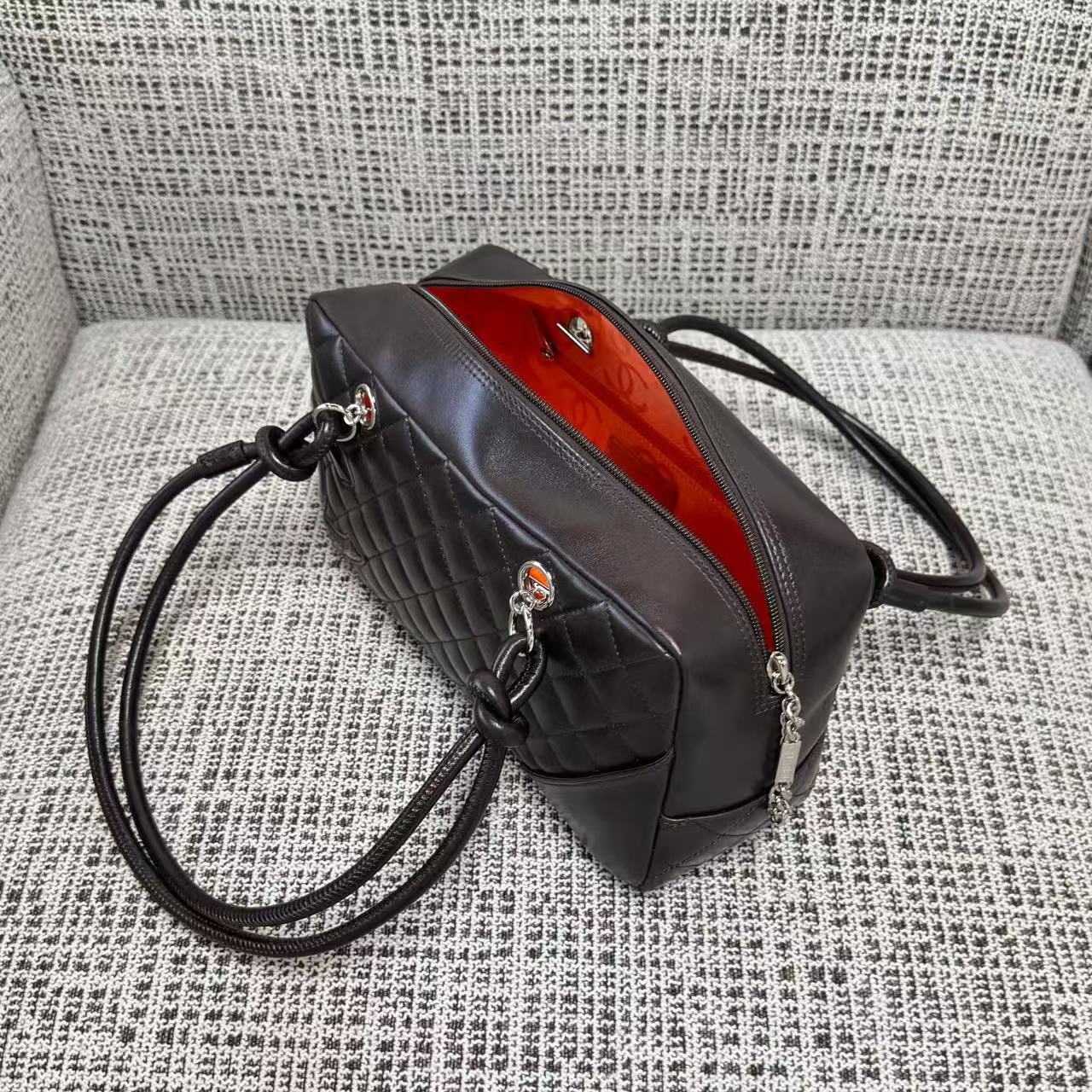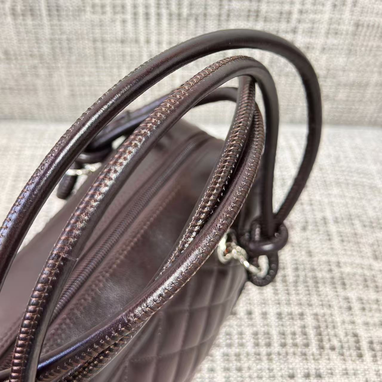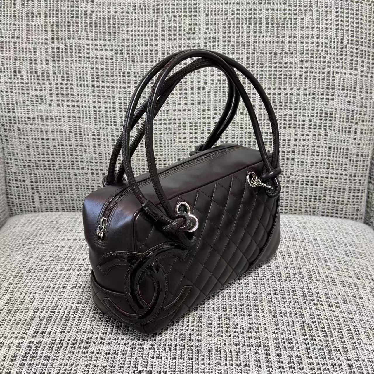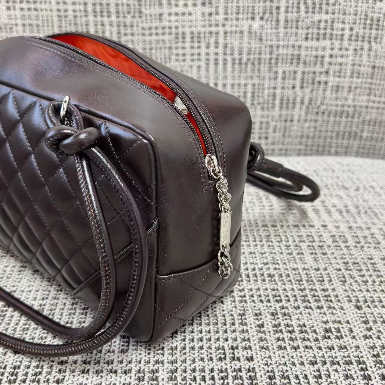 「康朋系列(Cambon Line)」絕對是 2000 年代初期最令人難忘的高光符號。這次分享的 Vintage 康朋保齡球枕頭包,將品牌指標性的斜紋絎縫與側面誇張的雙 C 標誌完美融合。