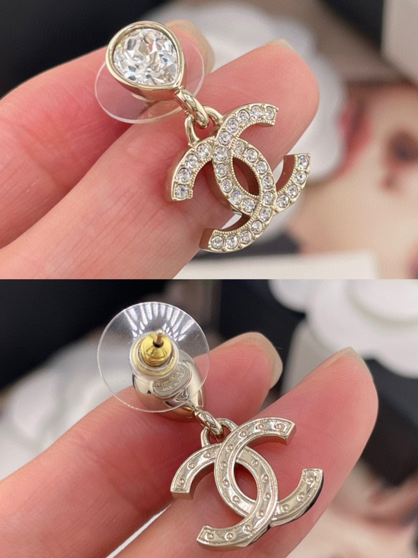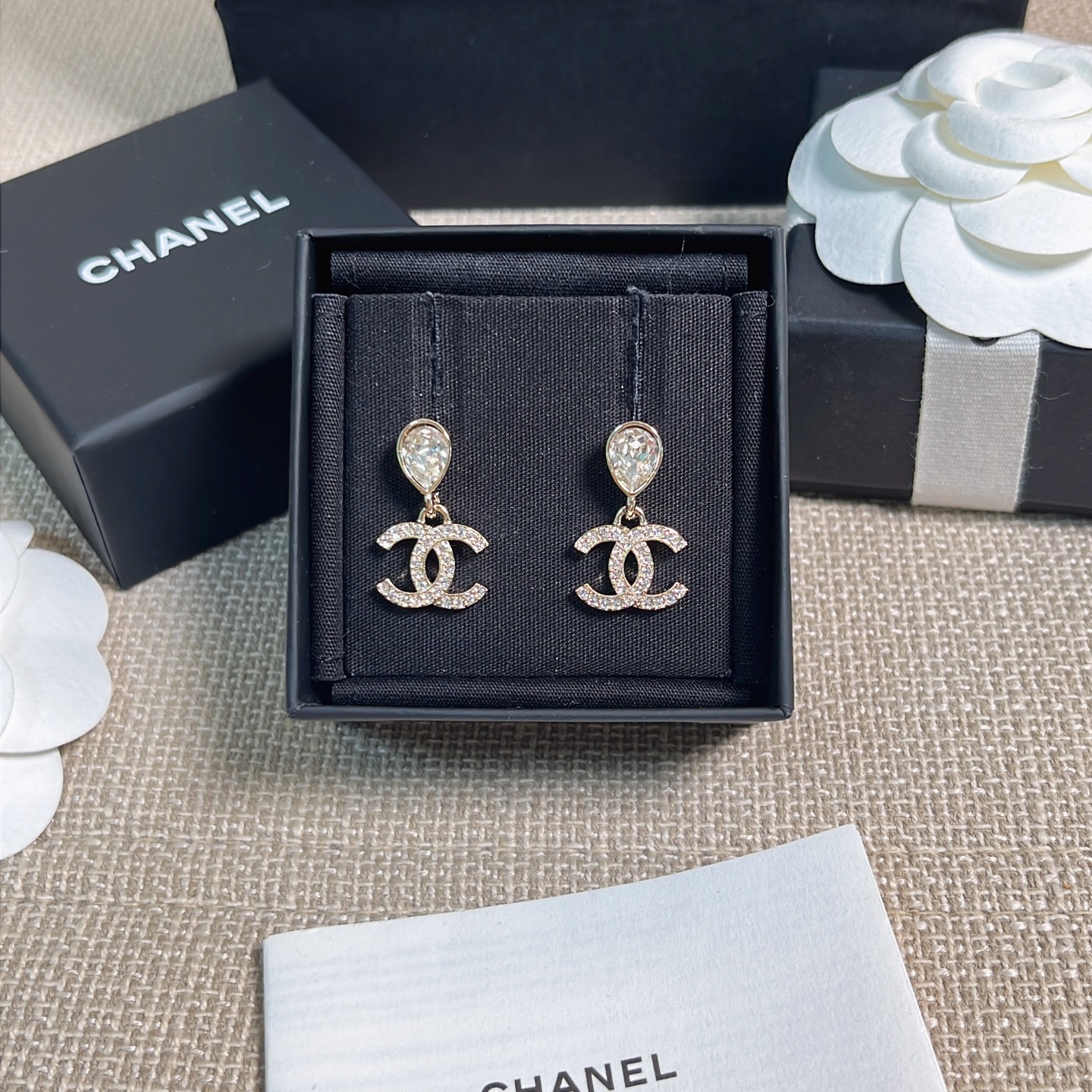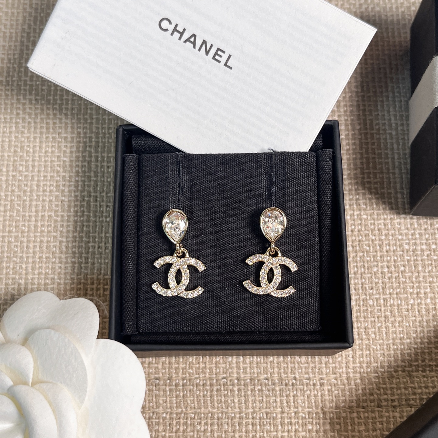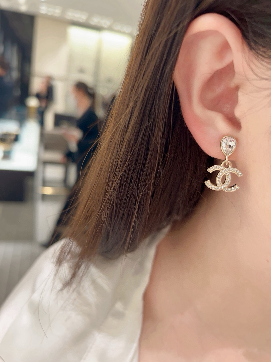 2025秋冬新品 C家 水滴鑽吊飾雙C耳環/耳夾