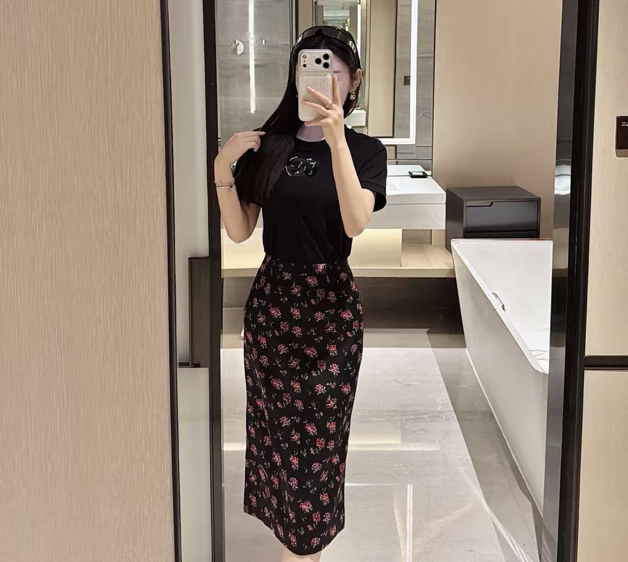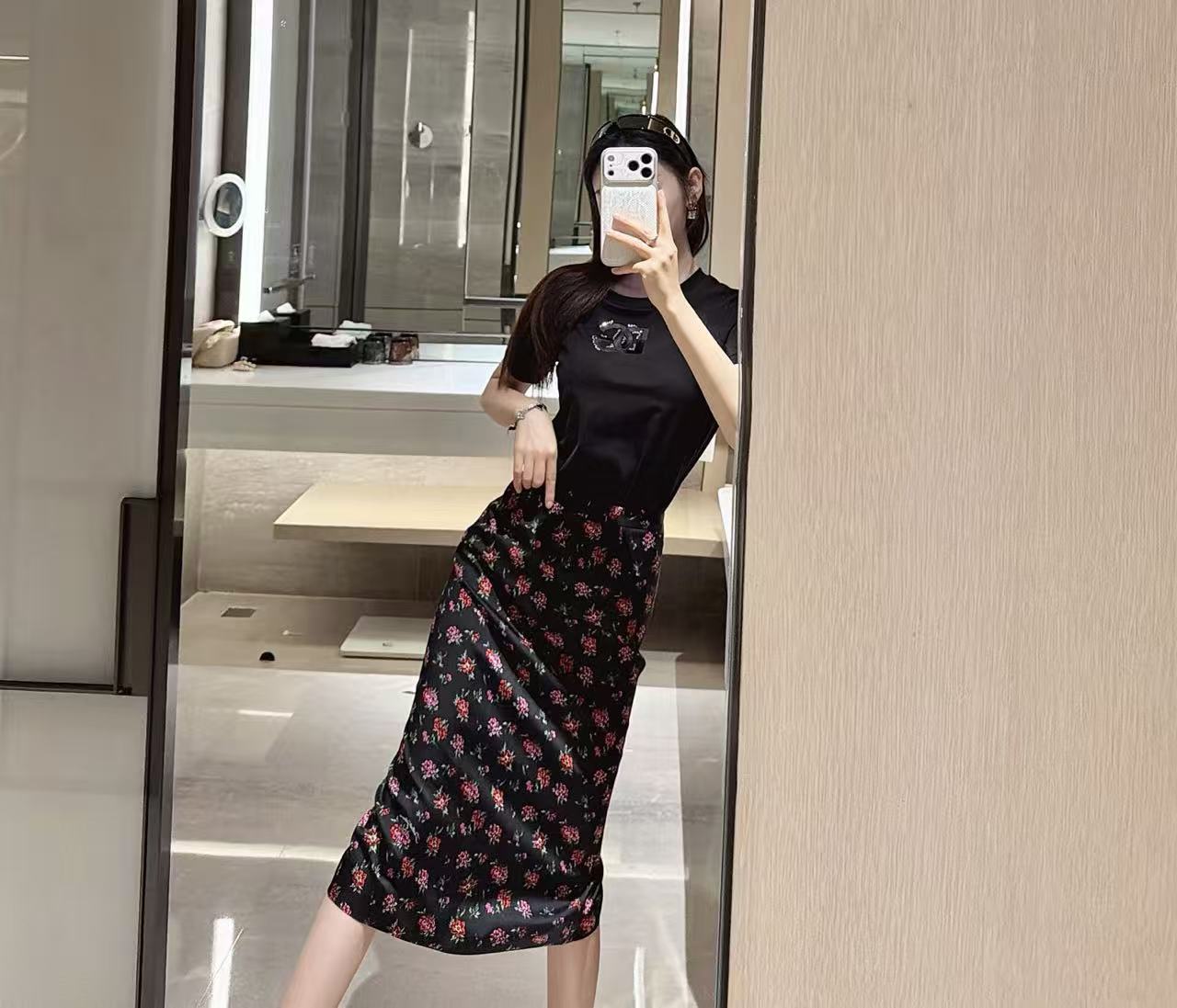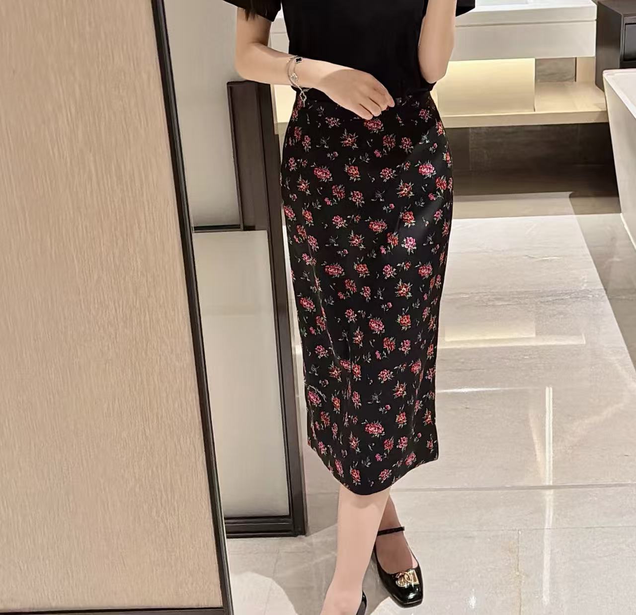 2026早春新品 DG家 真絲緞面花卉半裙
