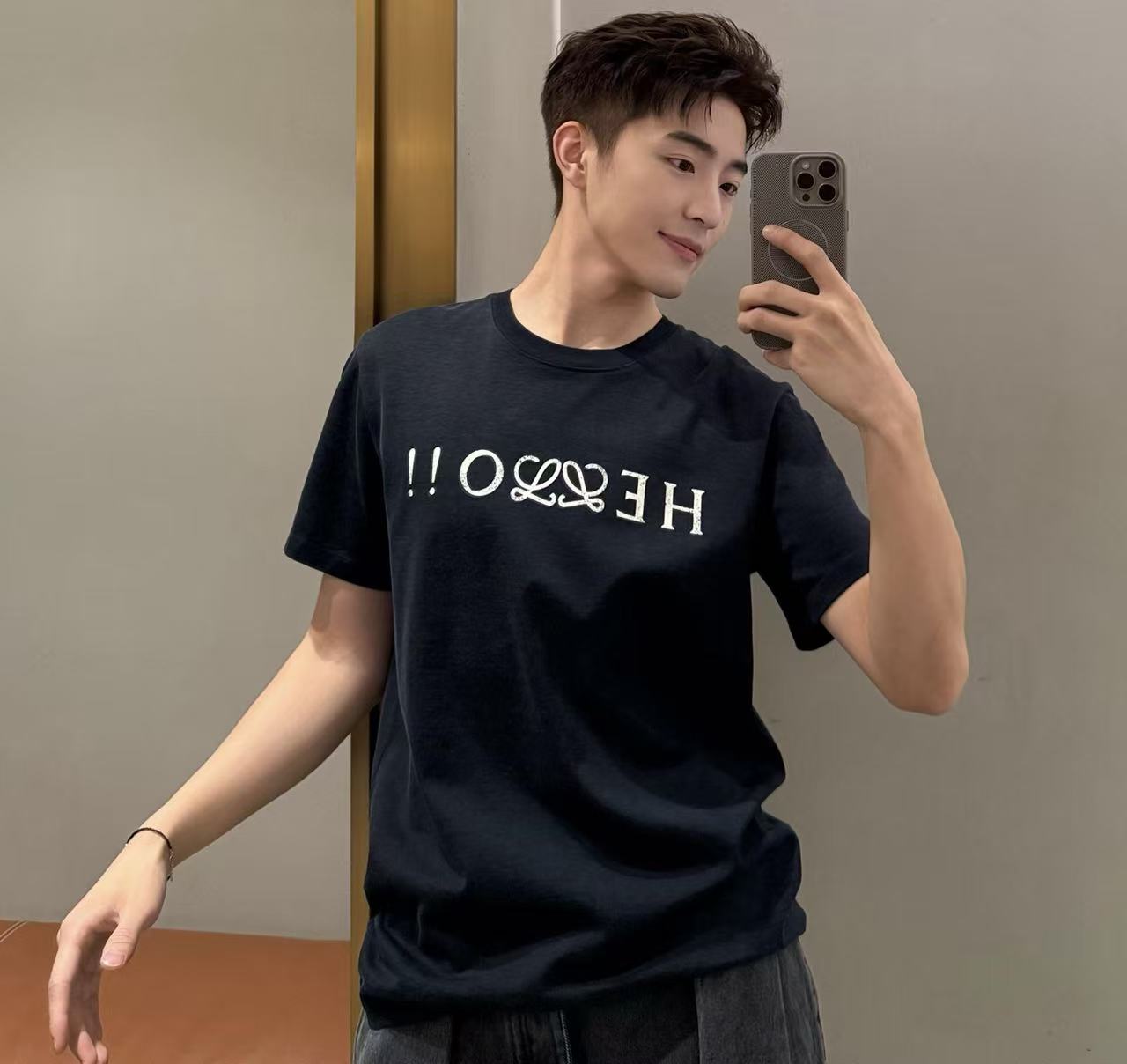 看似簡單的短 T 往往隱藏著極致的面料實驗。這次分享的 Hello 印花圓領短袖,最令人驚艷的在於其「正反雙色」的複合材料工法。