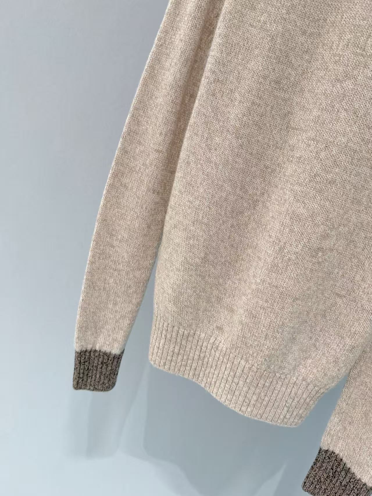 耐穿細節: 袖口和下擺都做了同色系的羅紋收口,不僅讓版型更挺,也更耐穿不易變形,細節處處體現精品價值。