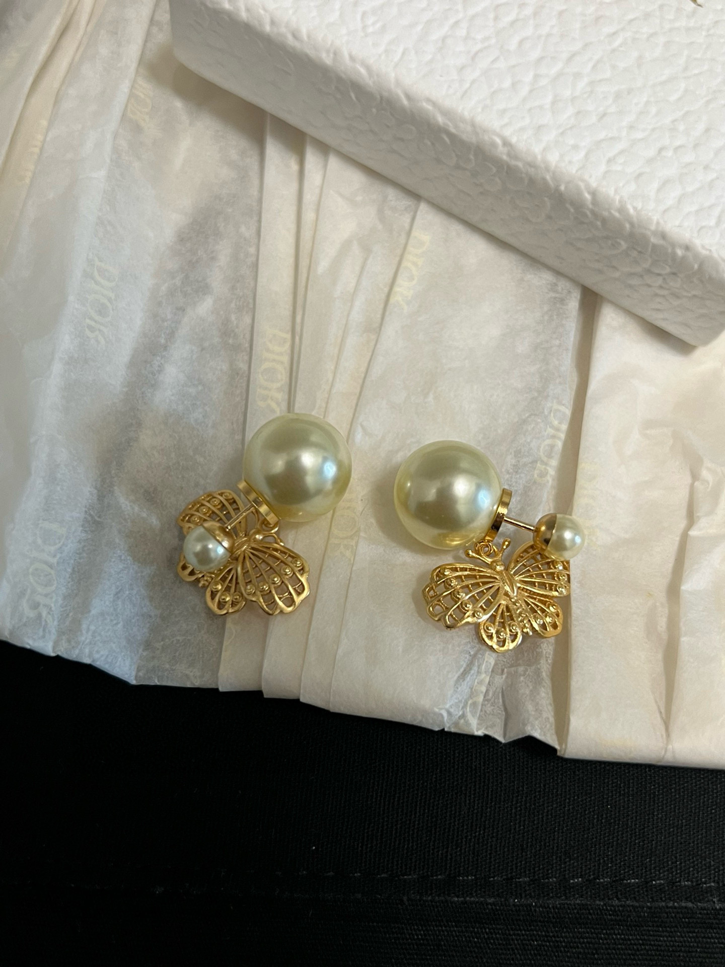 D家金蝶雙珠耳釘